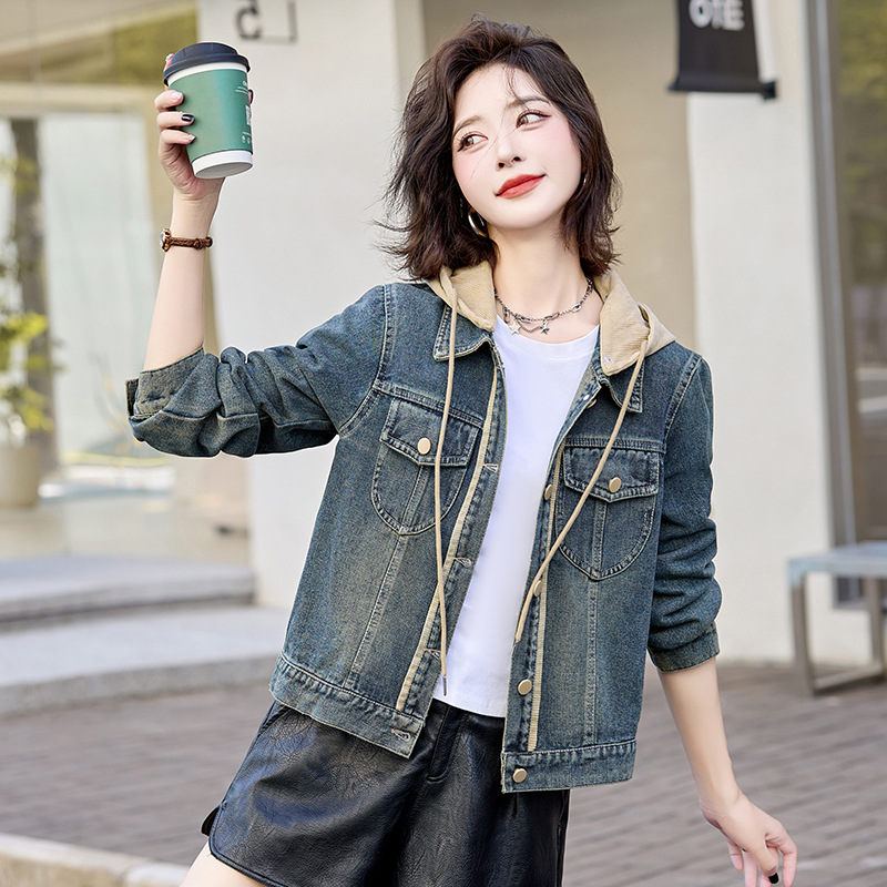 Áo khoác nữ dáng ngắn có mũ, thiết kế ôm vừa vặn ở v tạo nên sự gọn gàng. Chất liệu denim bền chắc mang đến vẻ ngoài trẻ trung, năng động. Kiểu dáng phù hợp cho tiết trời mùa xuân và mùa thu. Bạn có thể mặc cùng quần jeans hoặc chân váy để tạo điểm nhấn. Sản phẩm dễ dàng phối hợp với nhiều trang phục khác nhau trong tủ đồ hàng ngày. | Tên sản phẩm: Áo Khoác Nữ Chất Liệu Jean Bò Mũ Liền Hàng Mùa Xuân Thu Đông Phục Cổ Cổ Điển - Thời Trang Nữ | Mã sản phẩm: L3712 - Giá: 1.730.000đ | Mã nhà sản xuất: WODIG-G05Hình ảnh sản phẩm