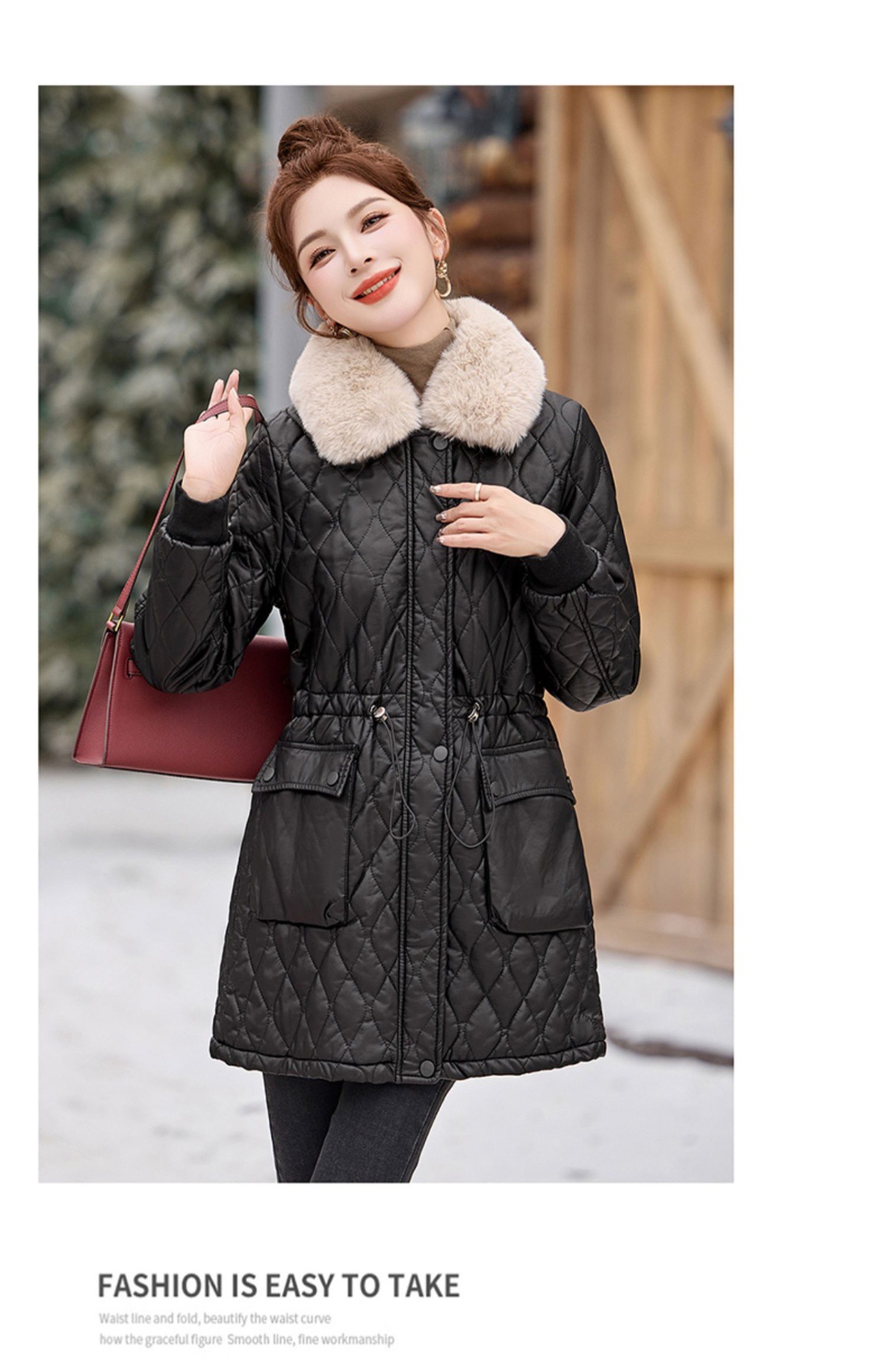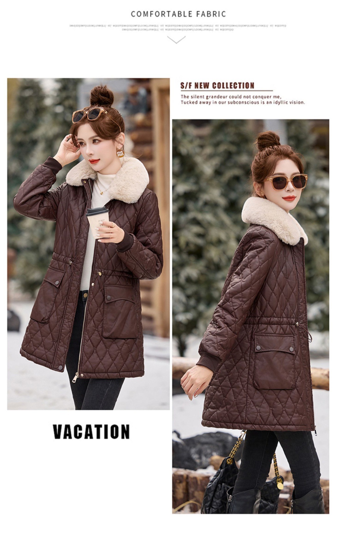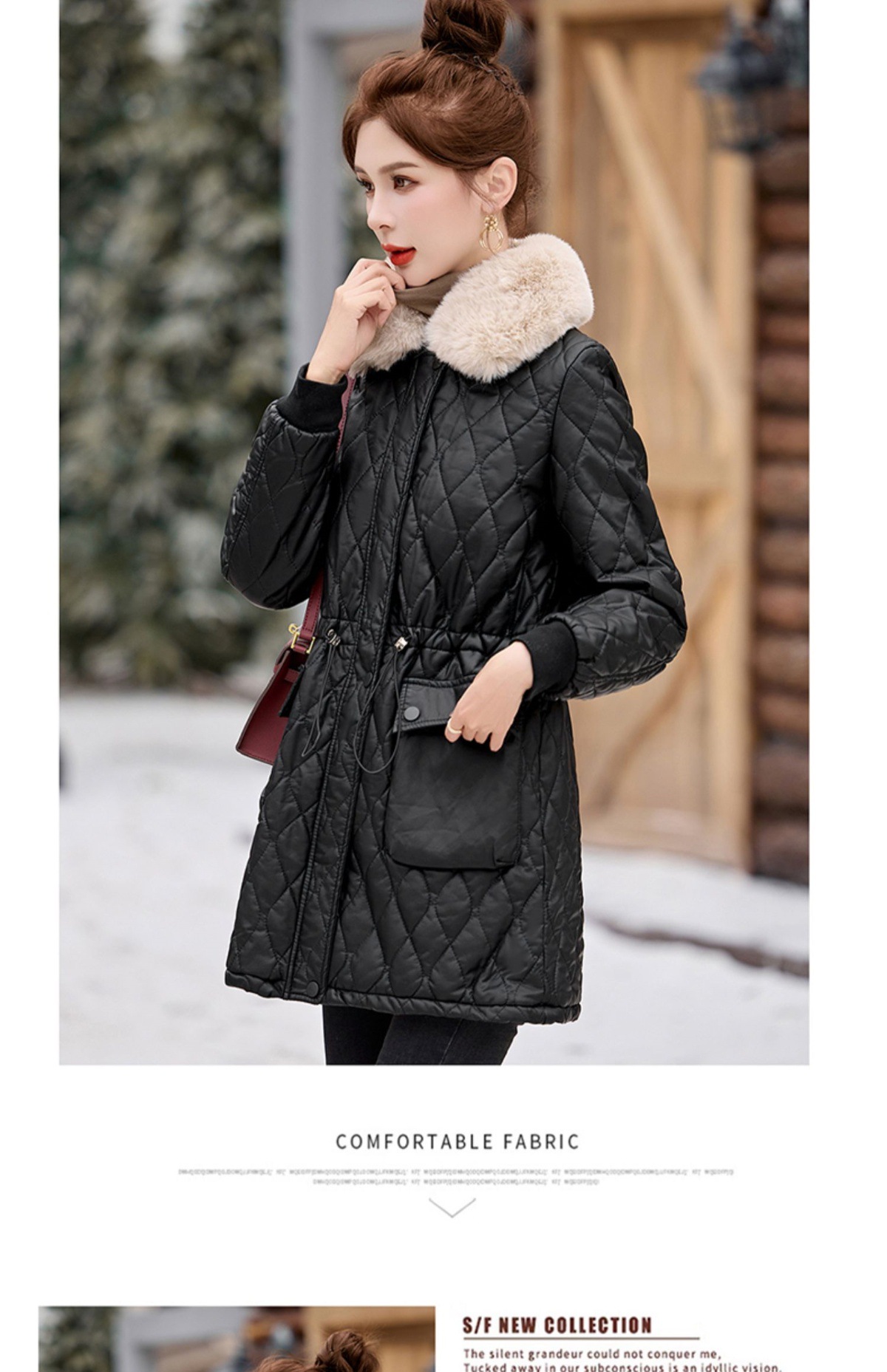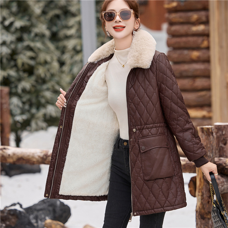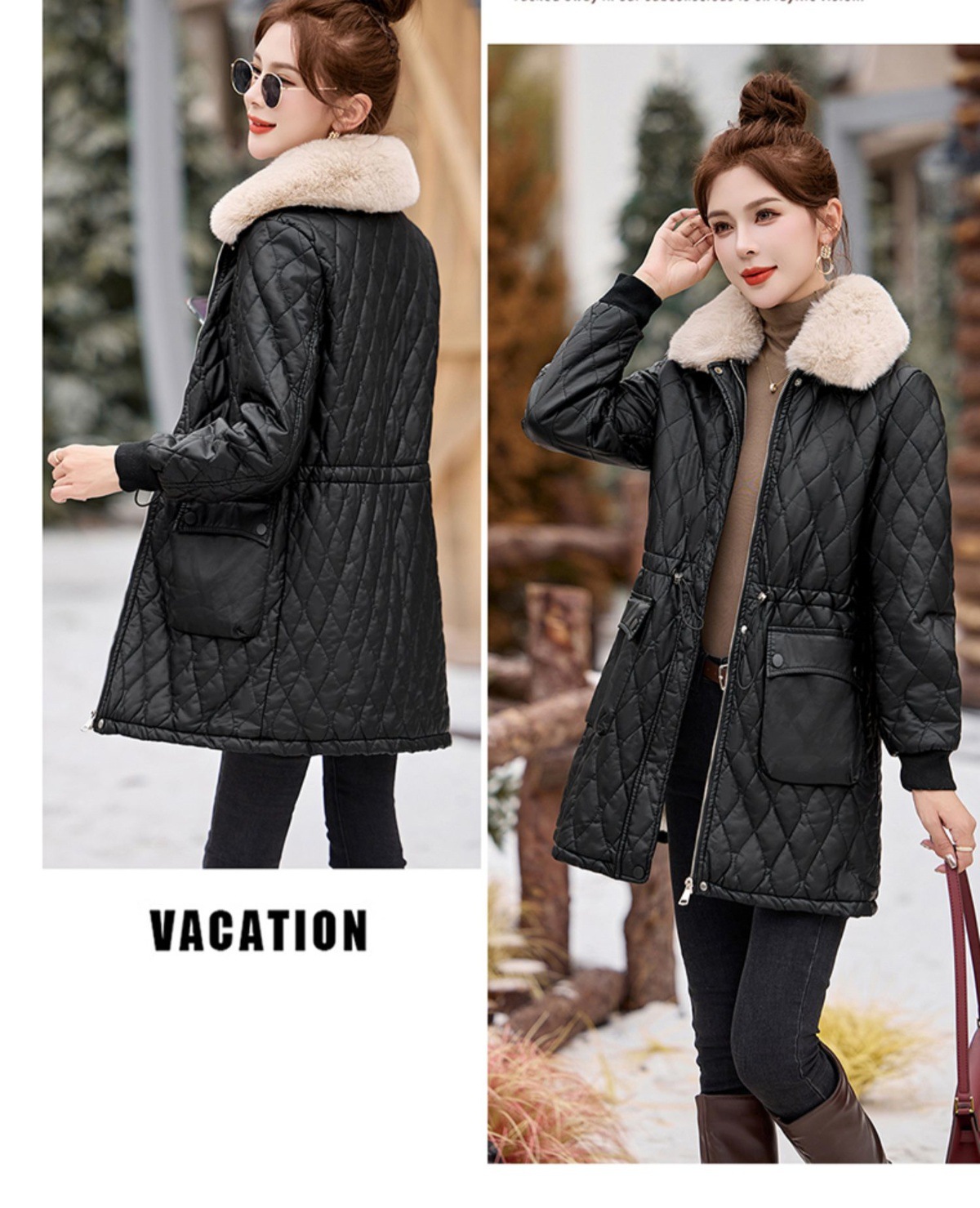 Áo khoác nữ dáng dài, có lớp bông giữ ấm bên trong, phù hợp cho mùa lạnh. Chất liệu vỏ ngoài bằng da tổng hợp mềm mại, giúp chống gió tốt. Thiết kế eo ôm tôn dáng, kèm lớp lót bằng vải mỏng mịn mang lại cảm giác dễ chịu. Có thể mặc trực tiếp hoặc kết hợp cùng áo len bên trong. Dễ dàng vệ sinh bề mặt bằng khăn ẩm khi cần. | Tên sản phẩm: Áo Khoác Nữ Chất Liệu Vải Bông Áo Khoác Bông Dày Ấm Hàng Mùa Xuân Thu Đông - Thời Trang Nữ | Mã sản phẩm: L3362 - Giá: 2.070.000đ | Mã nhà sản xuất: HADA-G05Hình ảnh sản phẩm