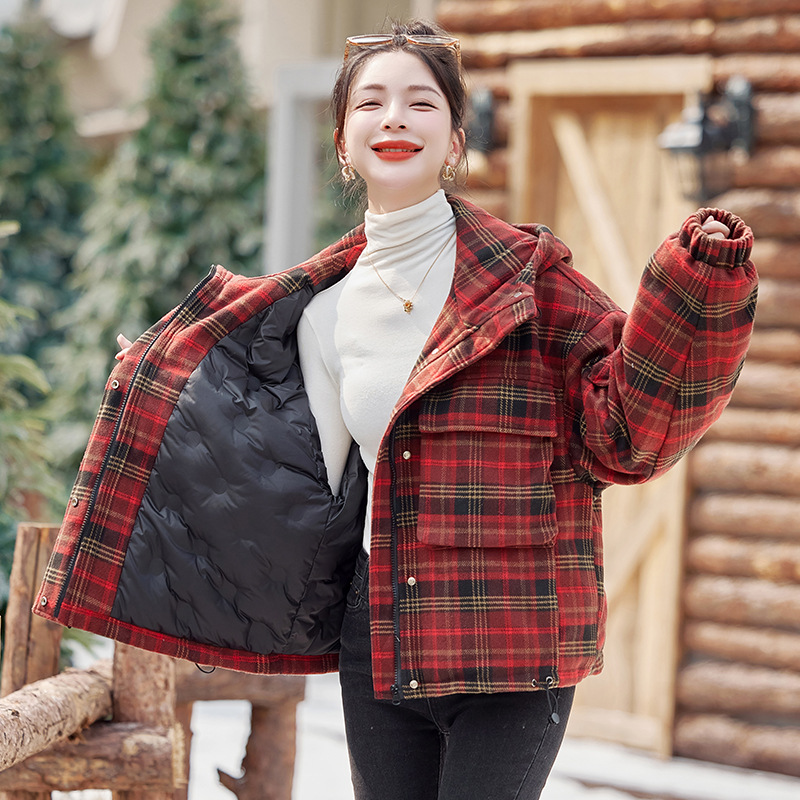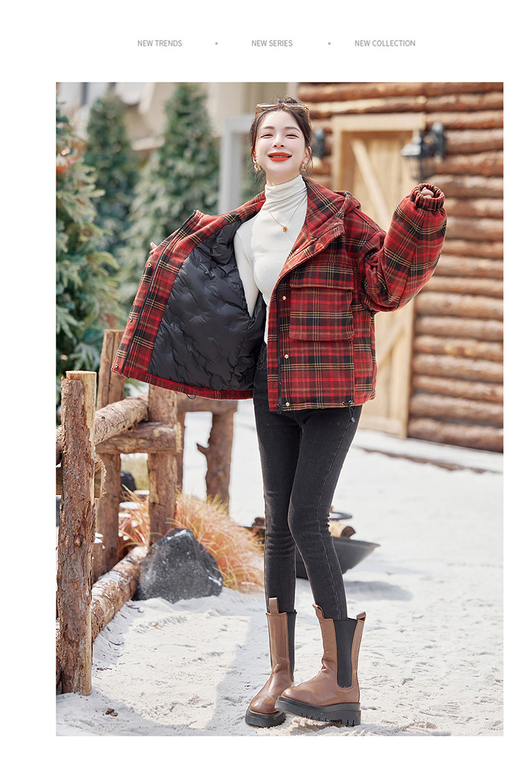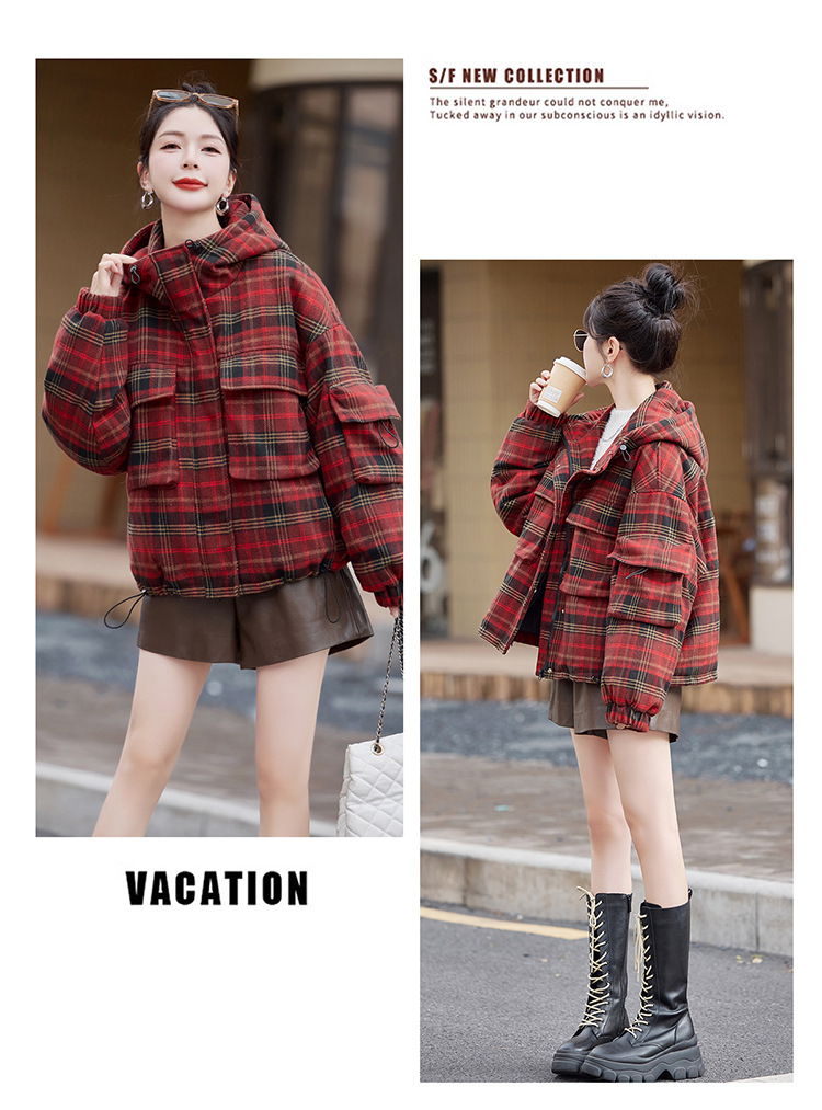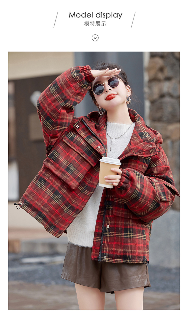Áo khoác nữ dáng ngắn có lớp lông vũ và bông giữ ấm, kiểu dáng kẻ ô vuông thích hợp cho tiết trời thu đông. Thiết kế dáng ngắn trẻ trung, phù hợp cho các hoạt động hằng ngày. Chất liệu dày dặn giúp giữ nhiệt tốt, mang lại sự ấm áp và thoải mái khi mặc. Có thể kết hợp cùng quần jeans và áo len để tạo nên những bộ trang phục đẹp. Dễ dàng vệ sinh và bảo quản theo hướng dẫn trên nhãn mác. | Tên sản phẩm: Áo Khoác Nữ Chất Liệu Vải Bông Kẻ Caro Kẻ Caro Dày Ấm Hàng Mùa Xuân Thu Đông - Thời Trang Nữ | Mã sản phẩm: K1274 - Giá: 2.360.000đ | Mã nhà sản xuất: WODTH-G05Hình ảnh sản phẩm