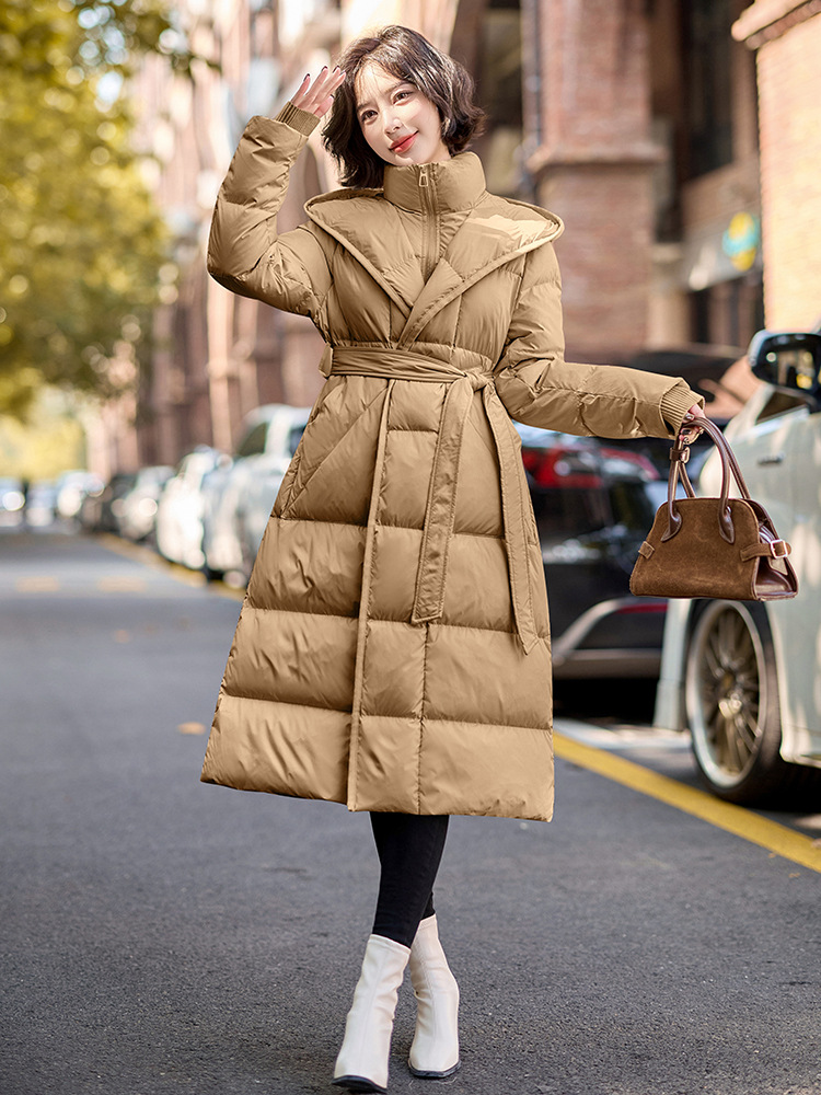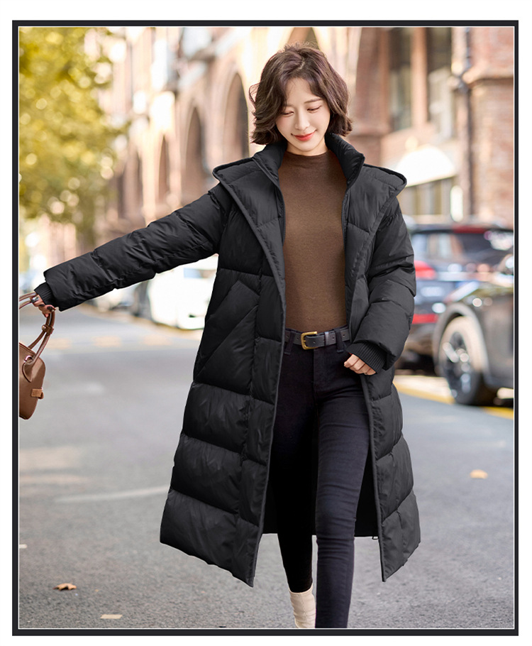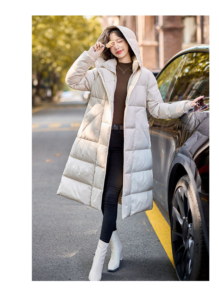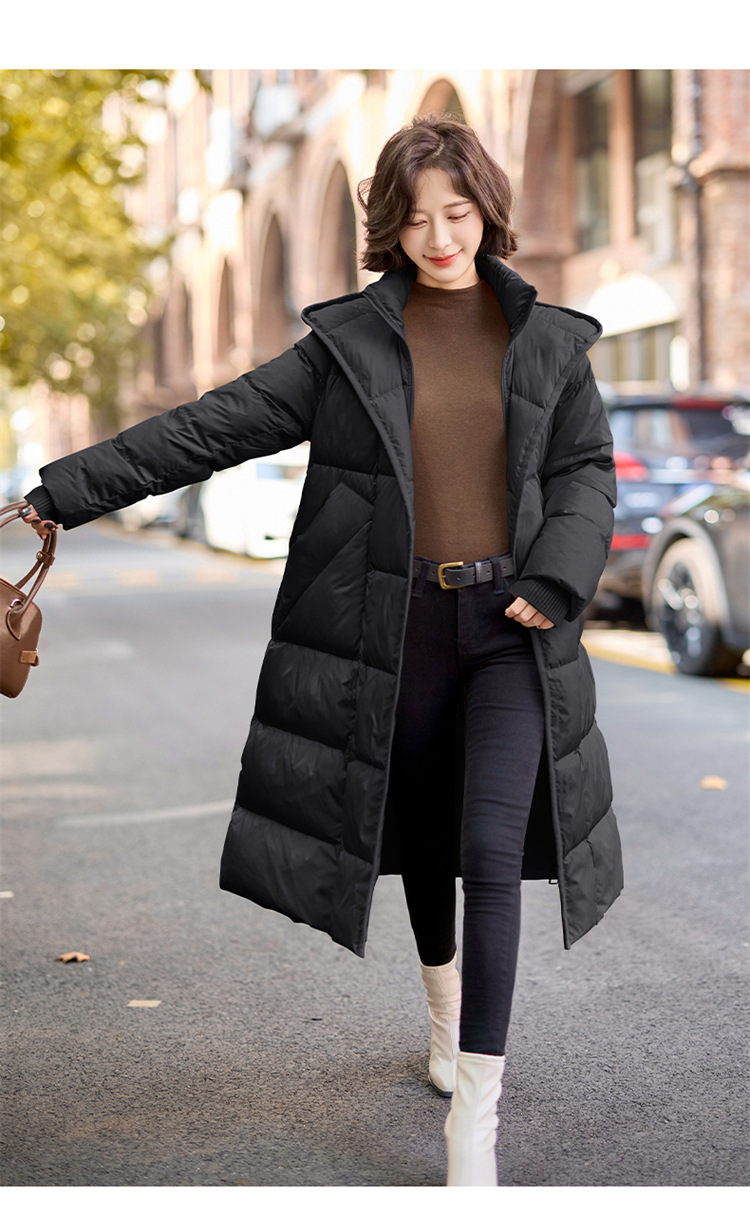 Áo khoác dáng dài qua gối, có mũ và phần eo ôm tôn dáng. Sản phẩm sử dụng lớp lông vũ mềm mại và ấm áp bên trong. Kiểu dáng thời trang, phù hợp mặc trong những ngày trời lạnh. Cách dùng đơn giản, chỉ cần mặc trực tiếp và kéo khóa khóa kéo lại là có thể giữ ấm toàn thân, tiện lợi cho các hoạt động hàng ngày. | Tên sản phẩm: Áo Khoác Nữ Dài Quá Gối Mũ Liền Dày Ấm - Thời Trang Nữ | Mã sản phẩm: B7213 - Giá: 3.690.000đ | Mã nhà sản xuất: HADG-G06Hình ảnh sản phẩm