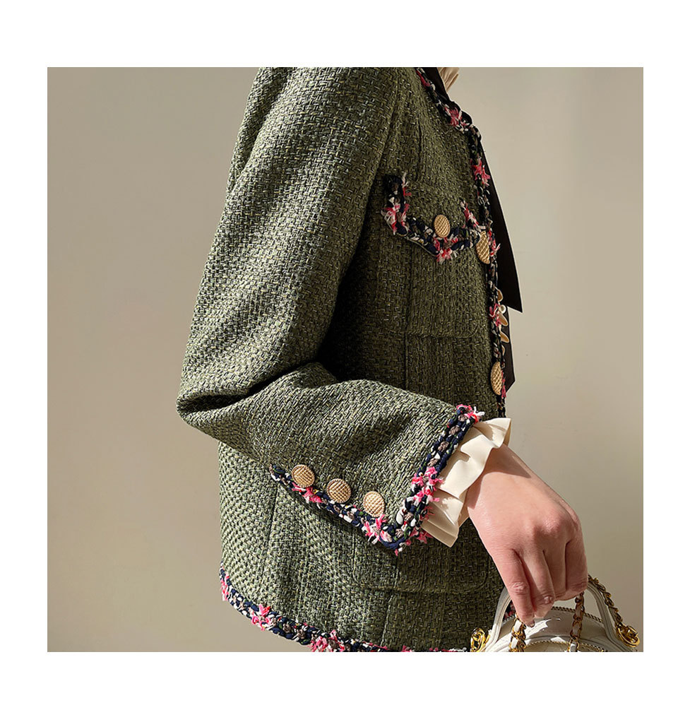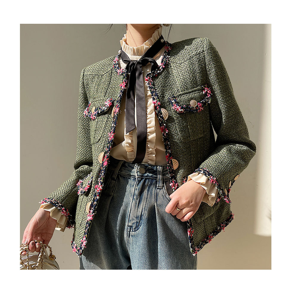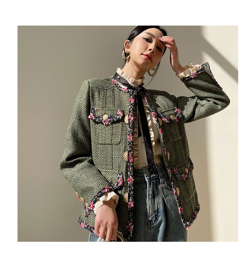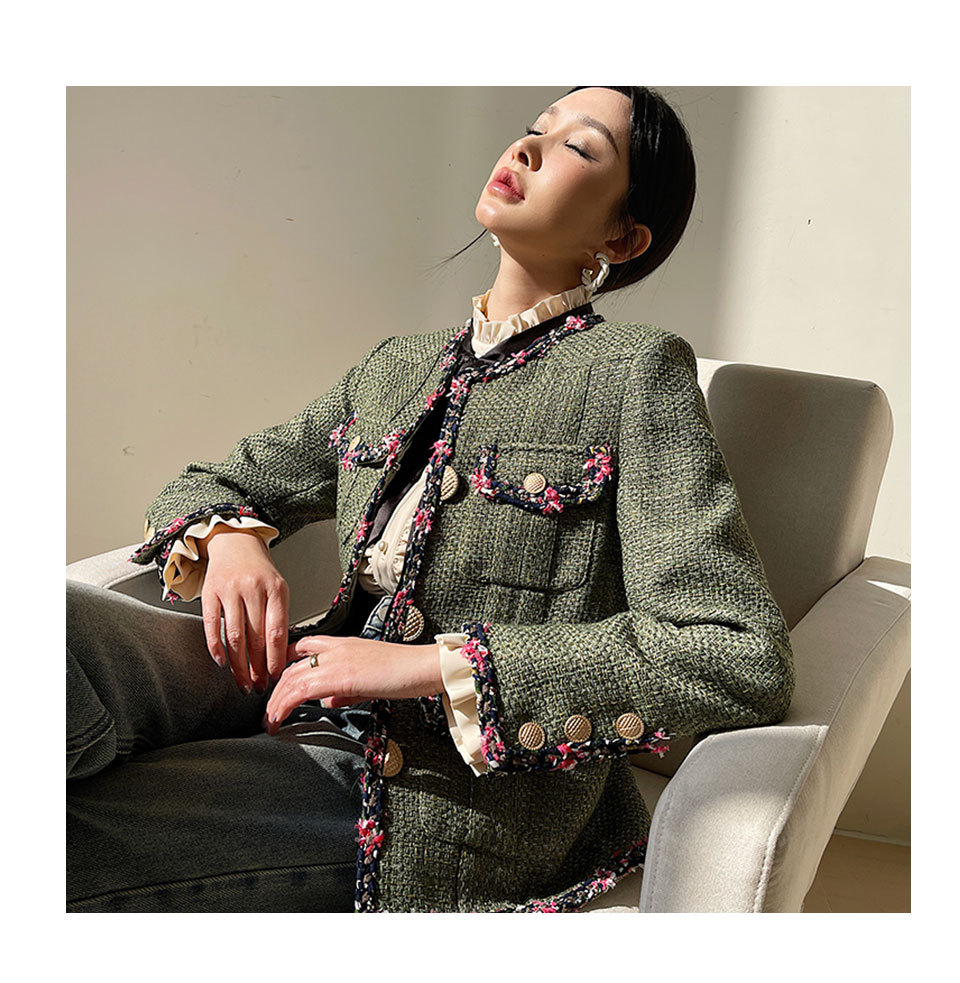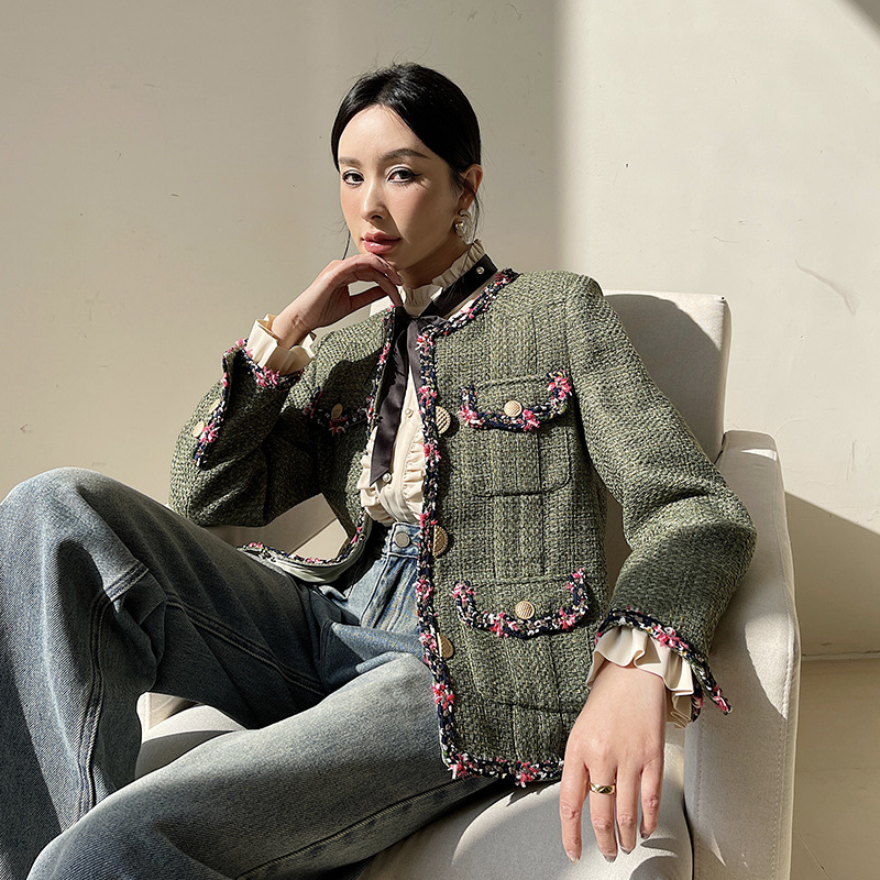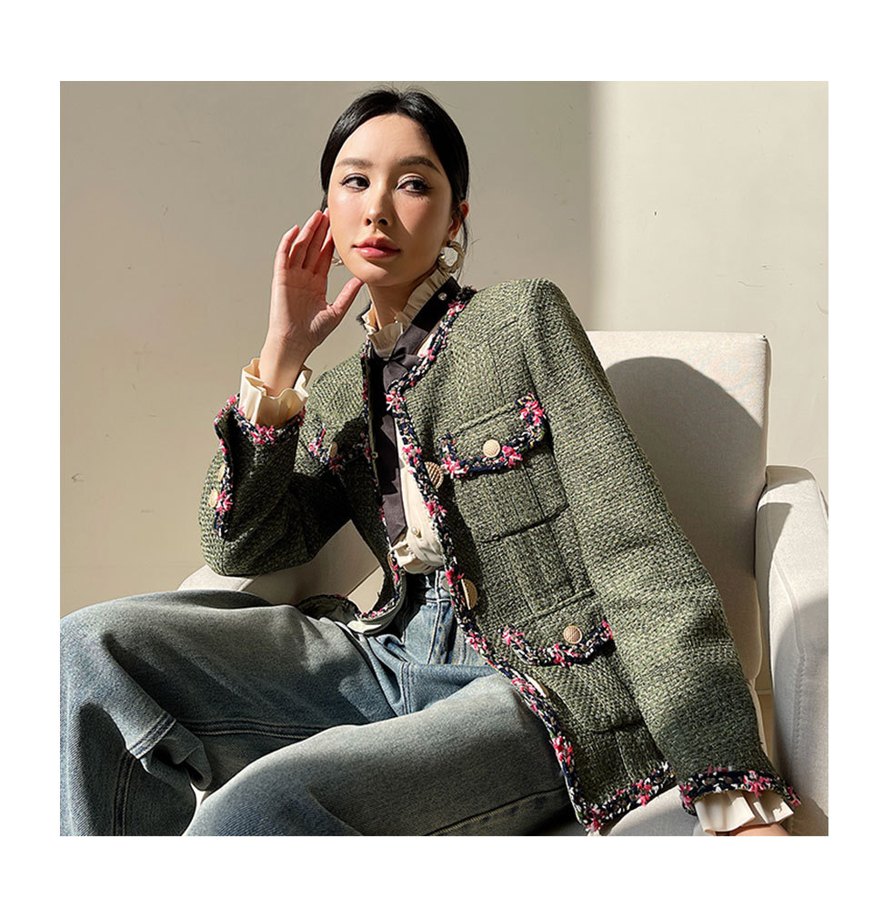 Áo khoác mỏng dáng cửa hàng nhỏ, lấy cảm hứng từ vẻ đẹp dịu dàng. Kiểu dáng ôm vừa phải, tôn lên dáng người một cách tự nhiên. Họa tiết trên vải gợi liên tưởng đến những cánh hoa rải rác nơi đồng nội, tạo điểm nhấn nhẹ nhàng. Chất vải mềm mại, thoáng mát, phù hợp mặc trong tiết trời se lạnh của mùa xuân hoặc đầu thu. Có thể mặc như áo ngoài cùng đầm, áo thun và quần jeans để tạo phong cách hàng ngày. | Tên sản phẩm: Áo Khoác Nữ Dáng Dộng Họa Tiết Hoa Hàng Mùa Xuân Thu Đông - Thời Trang Nữ | Mã sản phẩm: T1805 - Giá: 3.330.000đ | Mã nhà sản xuất: SUDA-G06Hình ảnh sản phẩm