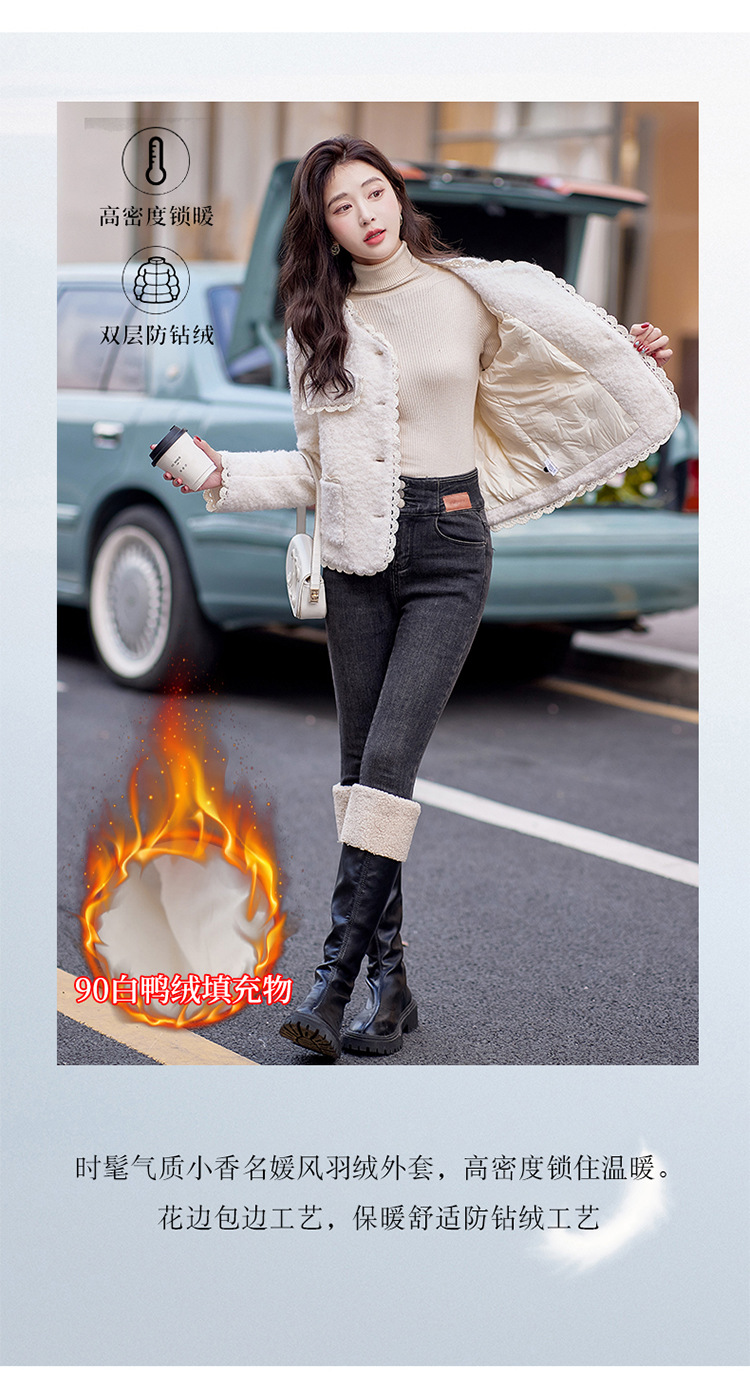 Áo khoác dáng ngắn dành cho các bạn nữ, thiết kế ôm vừa vặn tôn dáng. Sản phẩm kết hợp chất liệu dệt kim mỏng nhẹ bên ngoài với lớp lông vũ tơm trắng bên trong, giữ ấm tốt mà không hề tạo cảm giác nặng nề. Kiểu dáng mang phong cách thanh lịch, dễ dàng phối cùng nhiều trang phục khác nhau. Bạn có thể mặc trực tiếp, dùng làm áo khoác ngoài trong những ngày tiết trời se lạnh. | Tên sản phẩm: Áo Khoác Nữ Dáng Ôm Hàng Mùa Xuân Thu Đông - Thời Trang Nữ | Mã sản phẩm: L2916 - Giá: 3.030.000đ | Mã nhà sản xuất: HADA-G06Hình ảnh sản phẩm