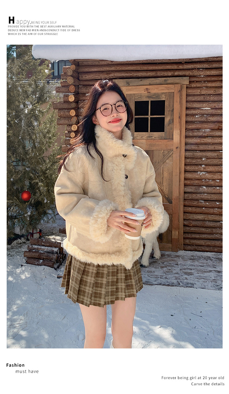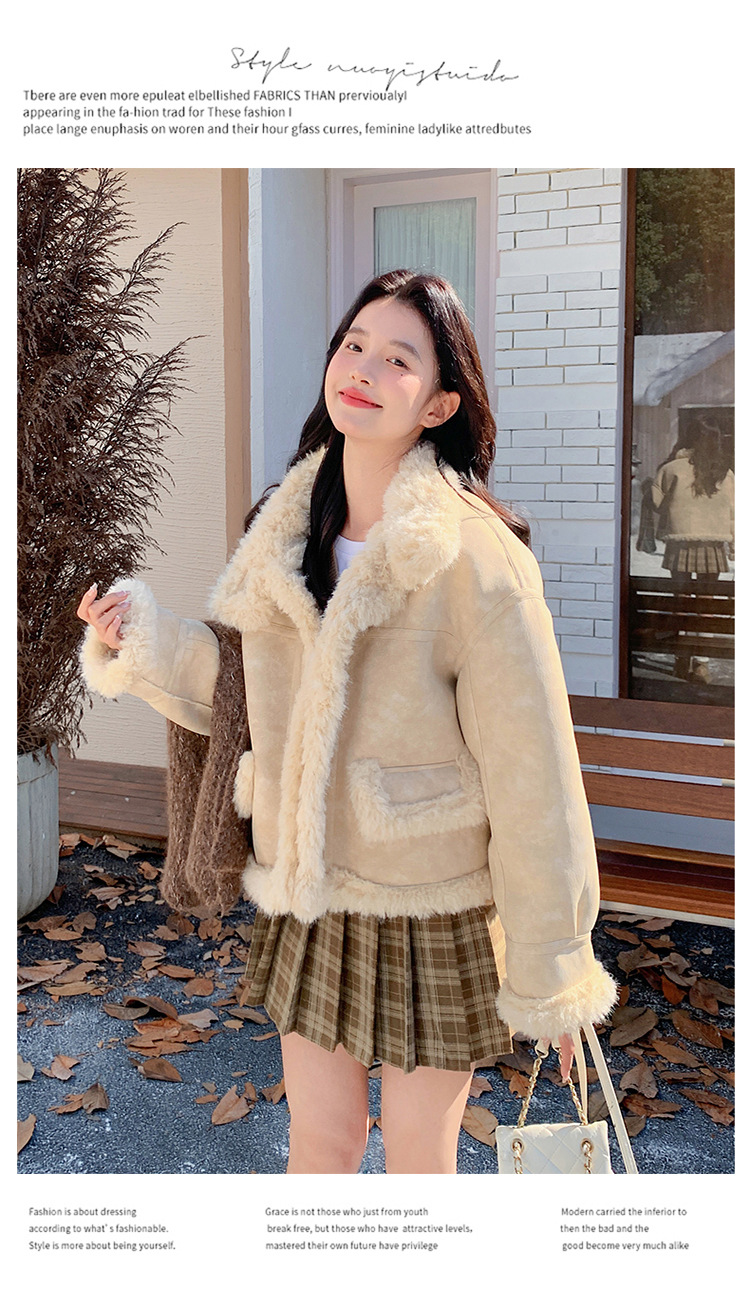 Áo khoác kiểu dáng ngắn, phối hợp chất liệu lông cừu non ấm áp bên trong và lớp ngoài mềm mại giống da n. Thiết kế theo phong cách trẻ trung, năng động. Áo có khóa kéo phía trước, túi tiện dụng và cổ bẻ. Mặc kèm áo thun, quần jeans để tạo vẻ ngoài cá tính. Phù hợp giữ ấm trong những ngày thời tiết se lạnh. | Tên sản phẩm: Áo Khoác Nữ Hàng Mùa Xuân Thu Đông - Thời Trang Nữ | Mã sản phẩm: L2365 - Giá: 2.550.000đ | Mã nhà sản xuất: HADA-G06Hình ảnh sản phẩm