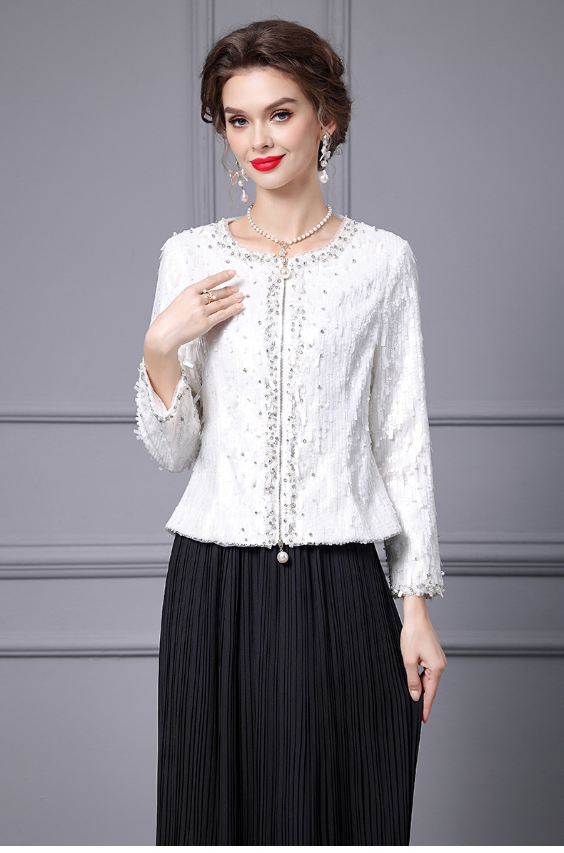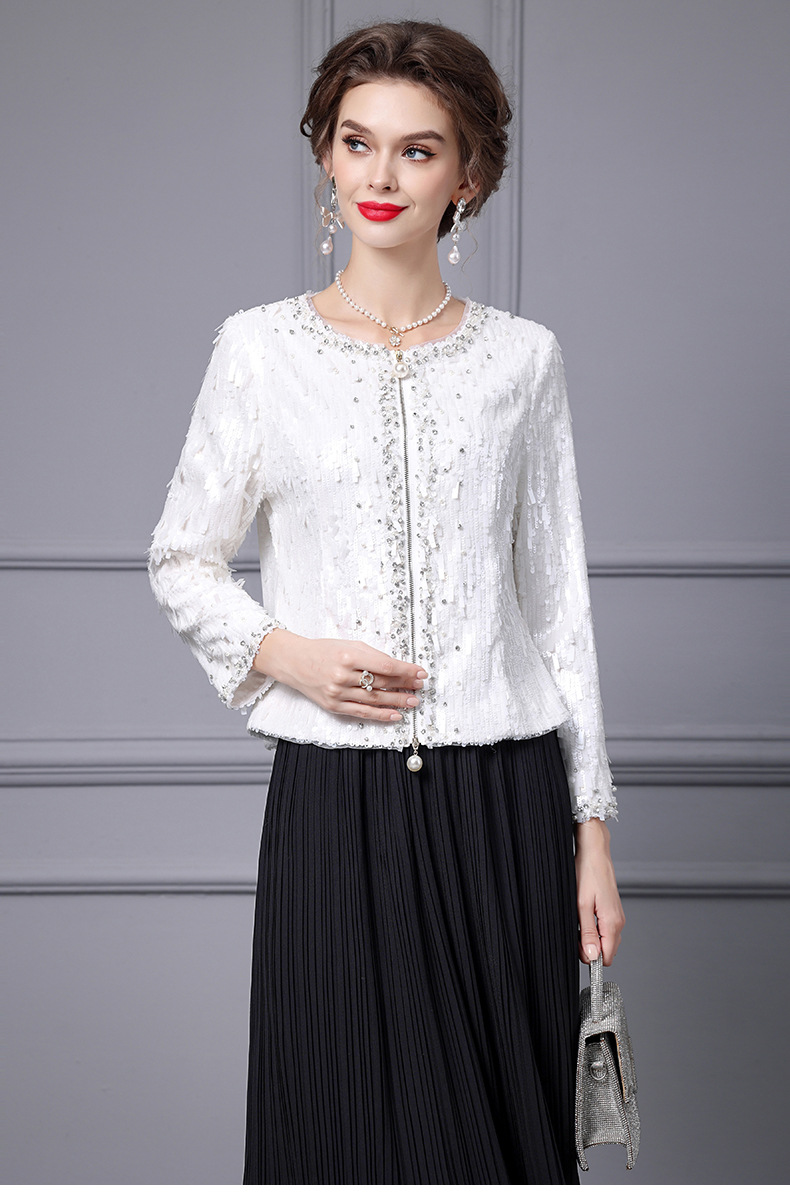 Áo khoác ngắn dành cho nữ, kiểu dáng thanh lịch, phù hợp mặc trong tiết trời thu. Điểm nhấn nổi bật là phần trang trí được gắn thủ công bằng các hạt đá và miếng kim loại nhỏ lấp lánh. Sản phẩm dễ dàng phối cùng nhiều loại chân váy khác nhau để tạo nên những bộ trang phục hài hòa. Bạn có thể mặc áo khi đi làm, dự tiệc hoặc trong các dịp gặp mặt thông thường. | Tên sản phẩm: Áo Khoác Nữ Hàng Mùa Xuân Thu Đông - Thời Trang Nữ | Mã sản phẩm: B1148 - Giá: 3.170.000đ | Mã nhà sản xuất: SHDAP-G06Hình ảnh sản phẩm