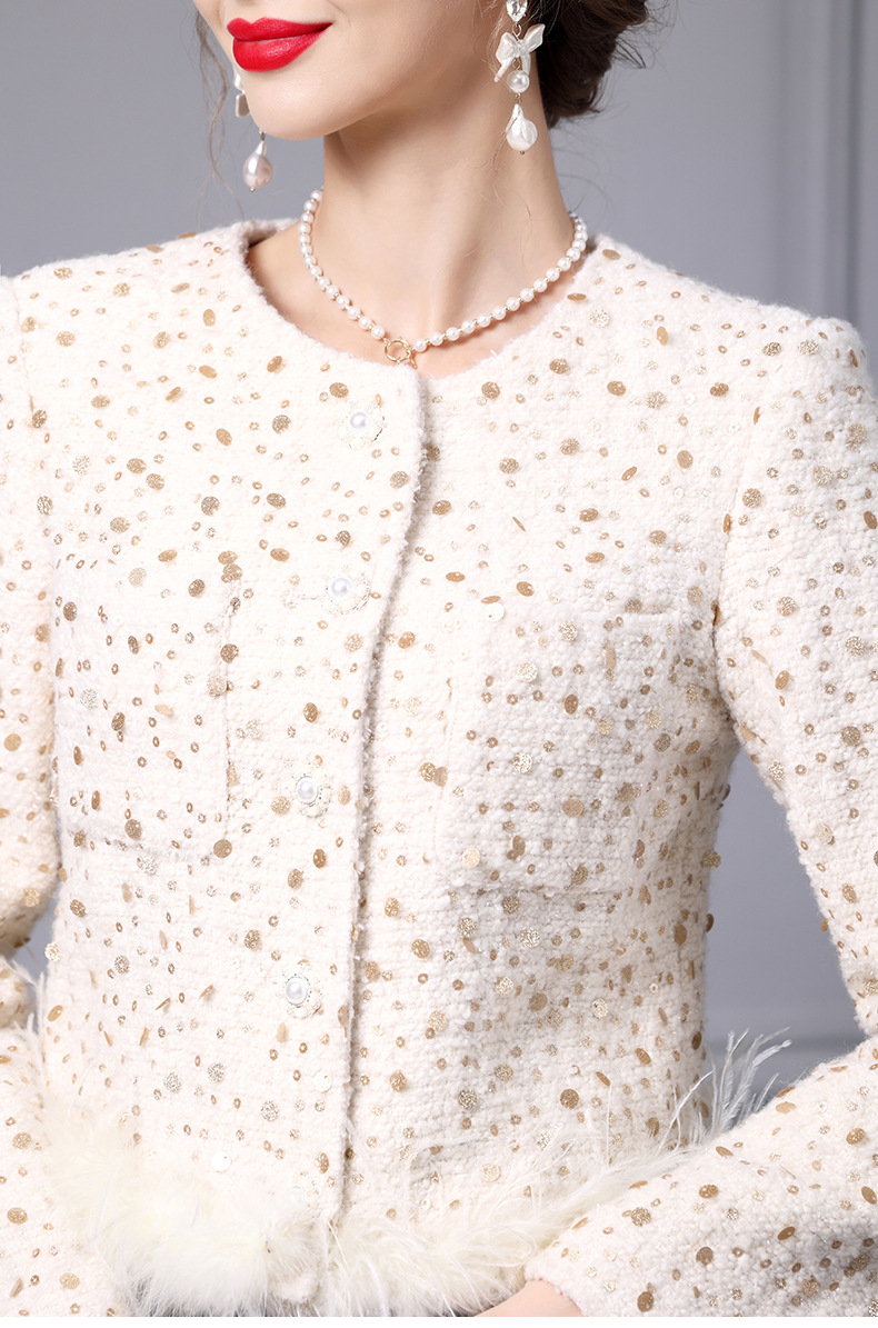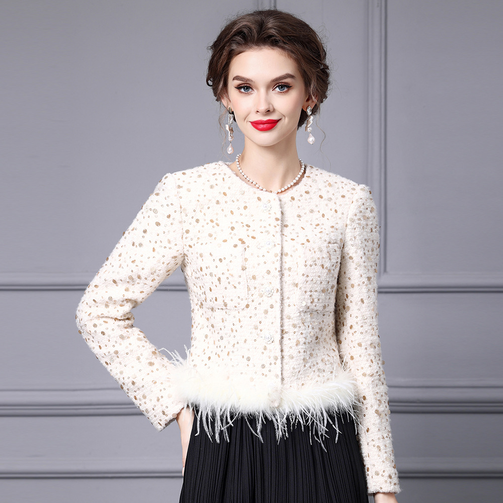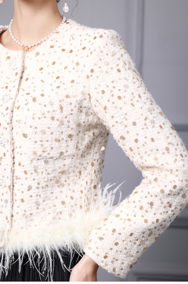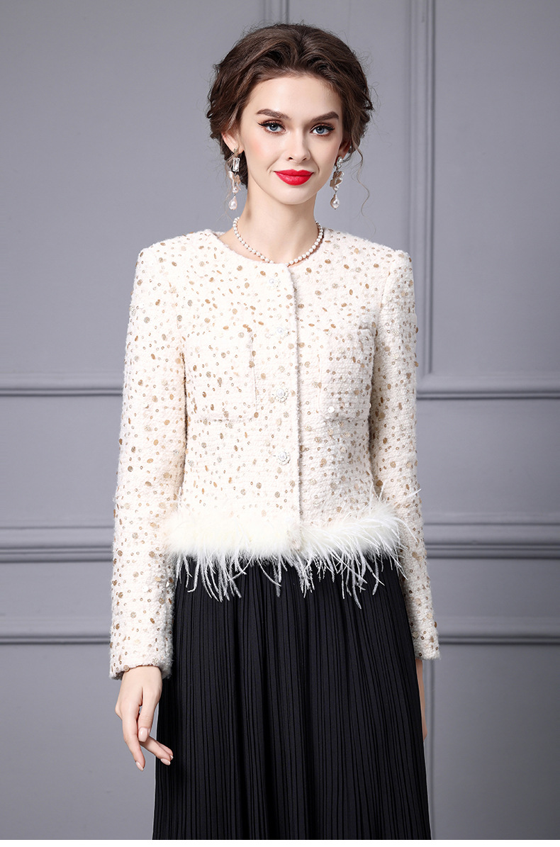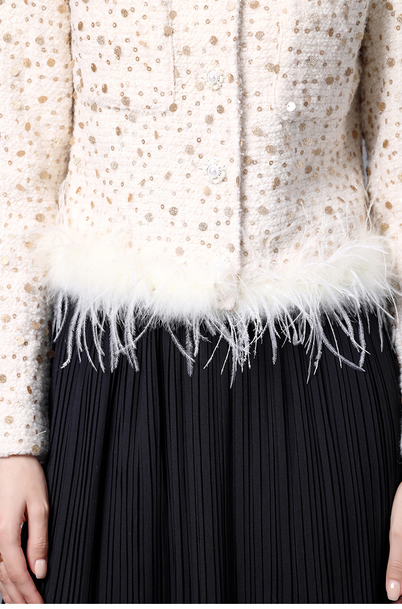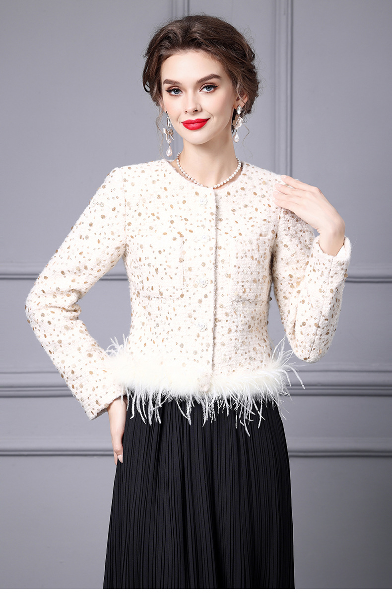 Áo khoác ngắn kiểu dáng nhỏ gọn, phù hợp cho những người có vóc dáng khiêm tốn. Chất vải dệt thô mang đến cảm giác mềm mại và ấm áp. Thiết kế cổ điển, dễ dàng phối cùng nhiều loại trang phục như quần âu hoặc váy liền. Sản phẩm có màu trắng tinh tế, thích hợp mặc trong tiết trời thu. Cách sử dụng đơn giản, bạn chỉ cần mặc như những chiếc áo khoác thông thường khác. | Tên sản phẩm: Áo Khoác Nữ Họa Tiết Hoa Hàng Mùa Xuân Thu Đông - Thời Trang Nữ | Mã sản phẩm: A9623 - Giá: 3.450.000đ | Mã nhà sản xuất: SHDAP-G06Hình ảnh sản phẩm
