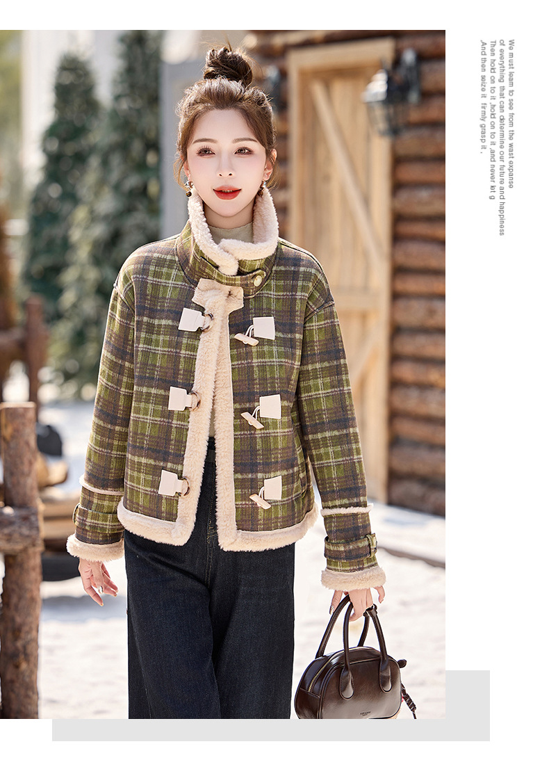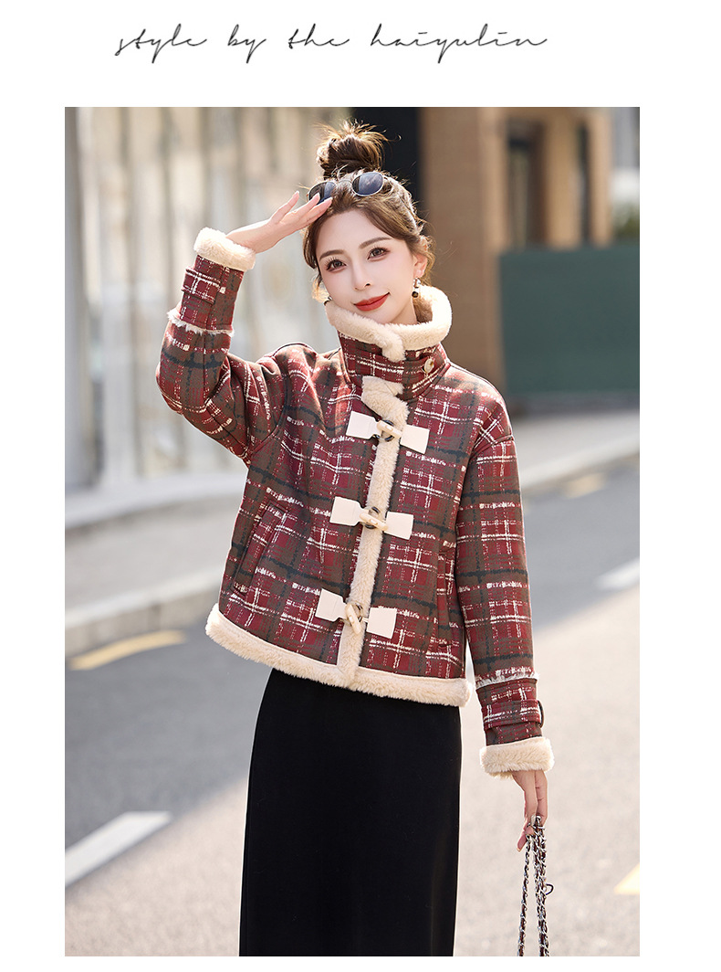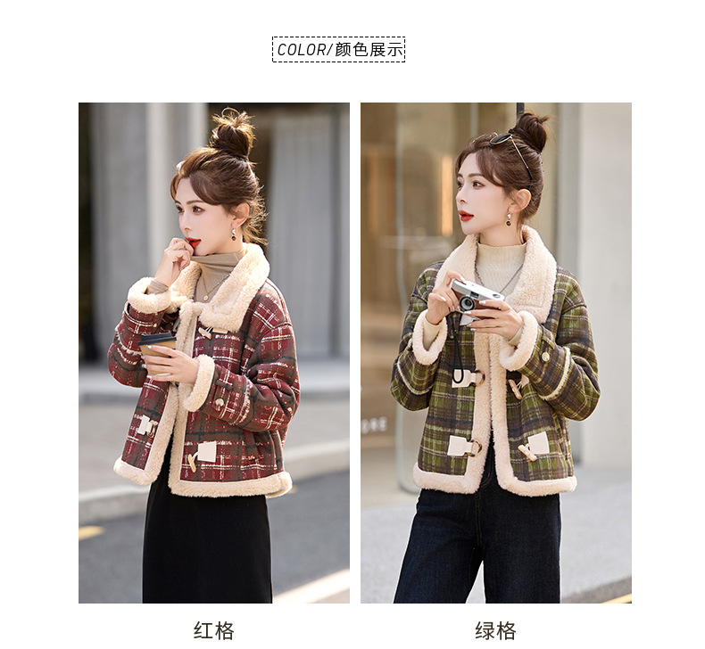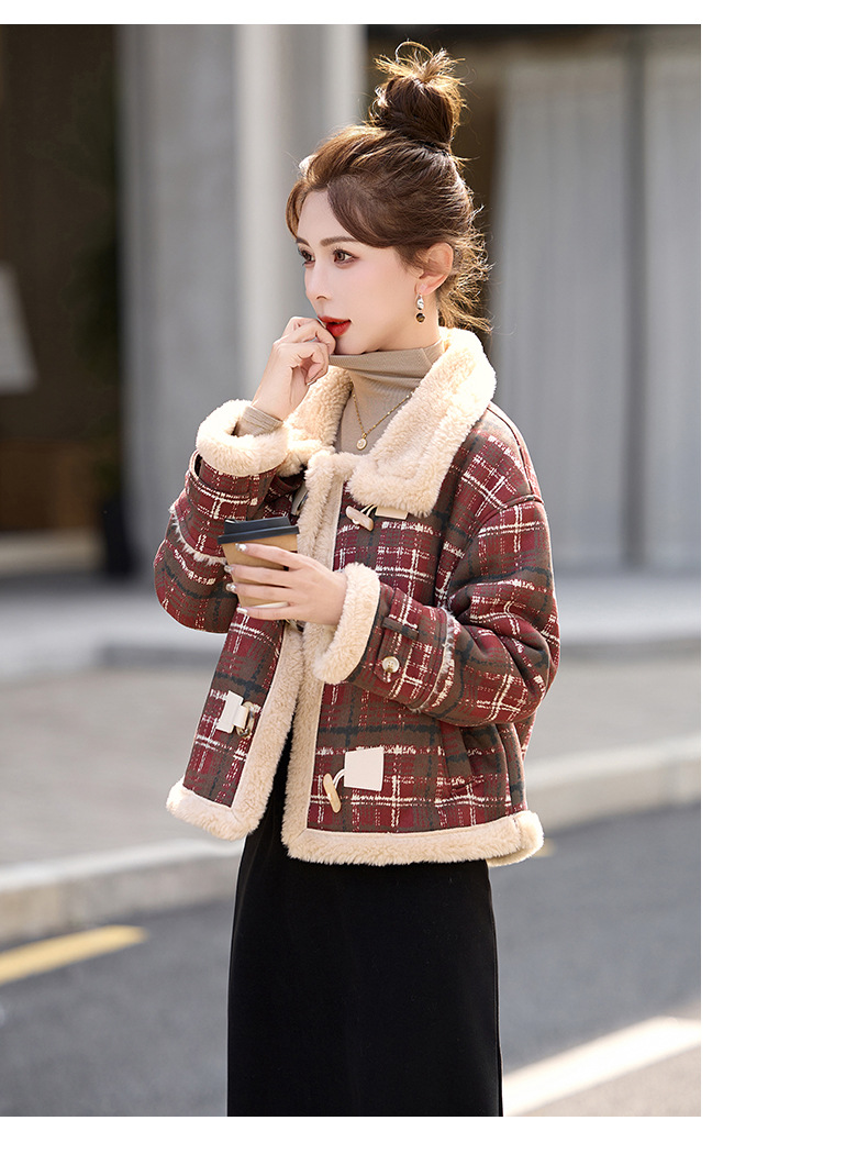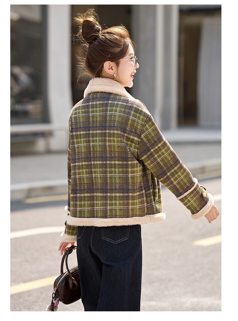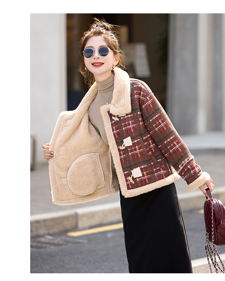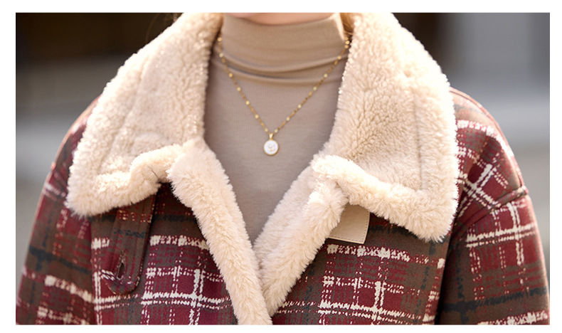Áo khoác nữ dáng rộng có lớp lót len cừu ấm áp, kiểu dáng ôm vừa vặn. Chất liệu kết hợp giữa phần lông mềm mại bên trong và lớp ngoài chắc chắn, tạo nên điểm nhấn bằng các đường kẻ ô vuông tinh tế. Sản phẩm được thiết kế dày dặn hơn để giữ nhiệt tốt trong tiết trời lạnh. Khi sử dụng, bạn có thể kết hợp cùng quần jeans và boots để tạo phong cách trẻ trung, thoải mái cho những hoạt động thường ngày. | Tên sản phẩm: Áo Khoác Nữ Kẻ Caro Kẻ Caro Dày Ấm Hàng Mùa Xuân Thu Đông - Thời Trang Nữ | Mã sản phẩm: B8992 - Giá: 2.290.000đ | Mã nhà sản xuất: HADG-G05Hình ảnh sản phẩm