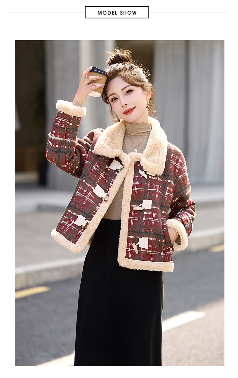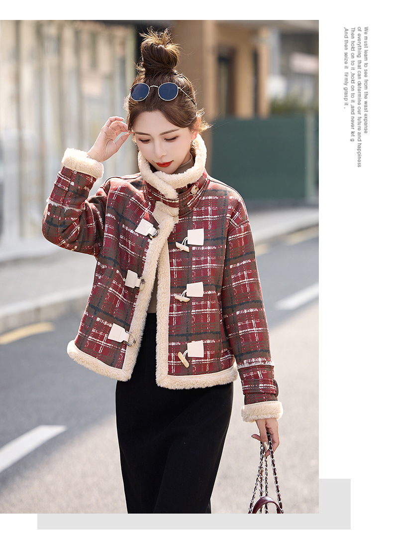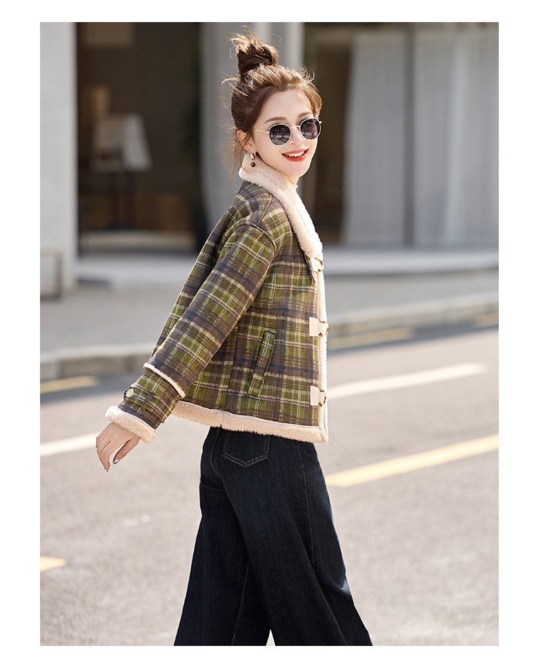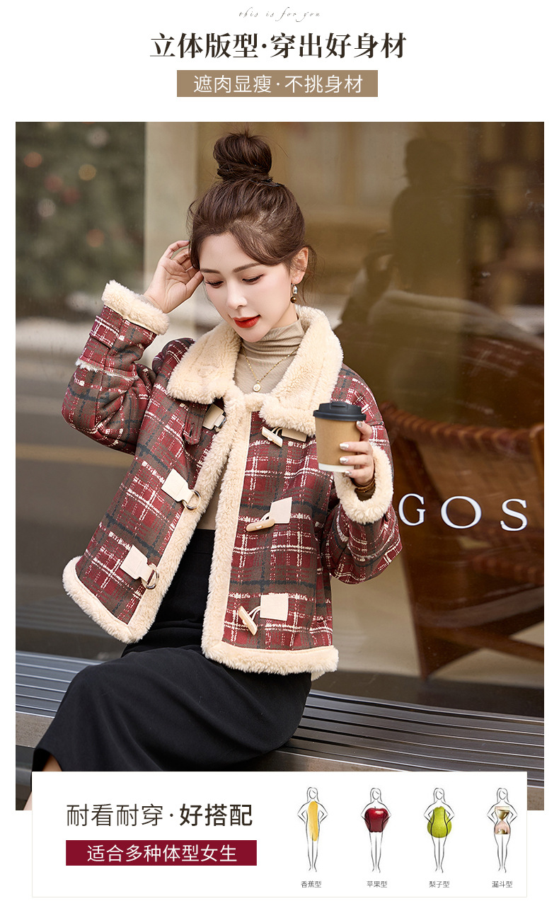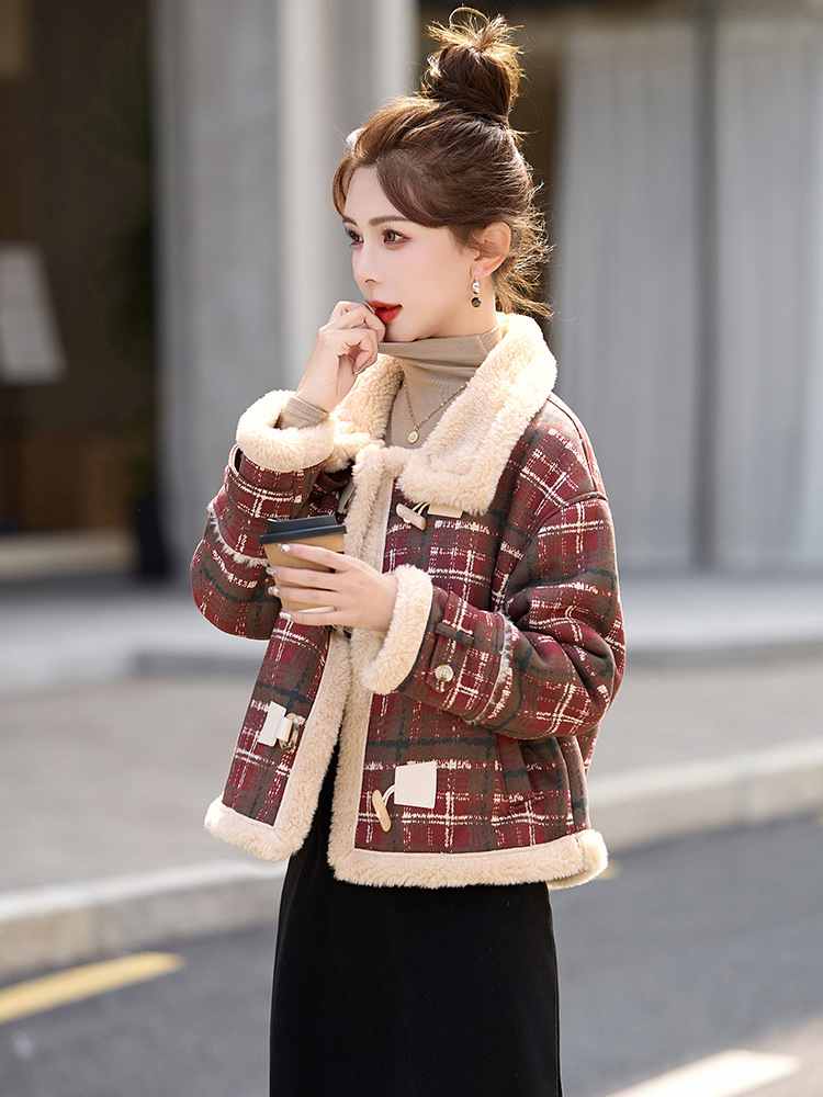 Áo khoác nữ dáng rộng có lớp lót len cừu ấm áp, kiểu dáng ôm vừa vặn. Chất liệu kết hợp giữa phần lông mềm mại bên trong và lớp ngoài chắc chắn, tạo nên điểm nhấn bằng các đường kẻ ô vuông tinh tế. Sản phẩm được thiết kế dày dặn hơn để giữ nhiệt tốt trong tiết trời lạnh. Khi sử dụng, bạn có thể kết hợp cùng quần jeans và boots để tạo phong cách trẻ trung, thoải mái cho những hoạt động thường ngày. | Tên sản phẩm: Áo Khoác Nữ Kẻ Caro Kẻ Caro Dày Ấm Hàng Mùa Xuân Thu Đông - Thời Trang Nữ | Mã sản phẩm: B8992 - Giá: 2.290.000đ | Mã nhà sản xuất: HADG-G05Hình ảnh sản phẩm