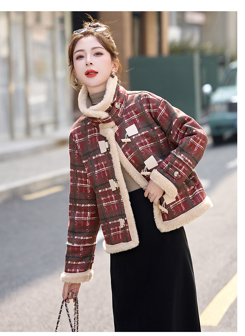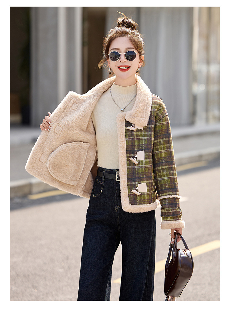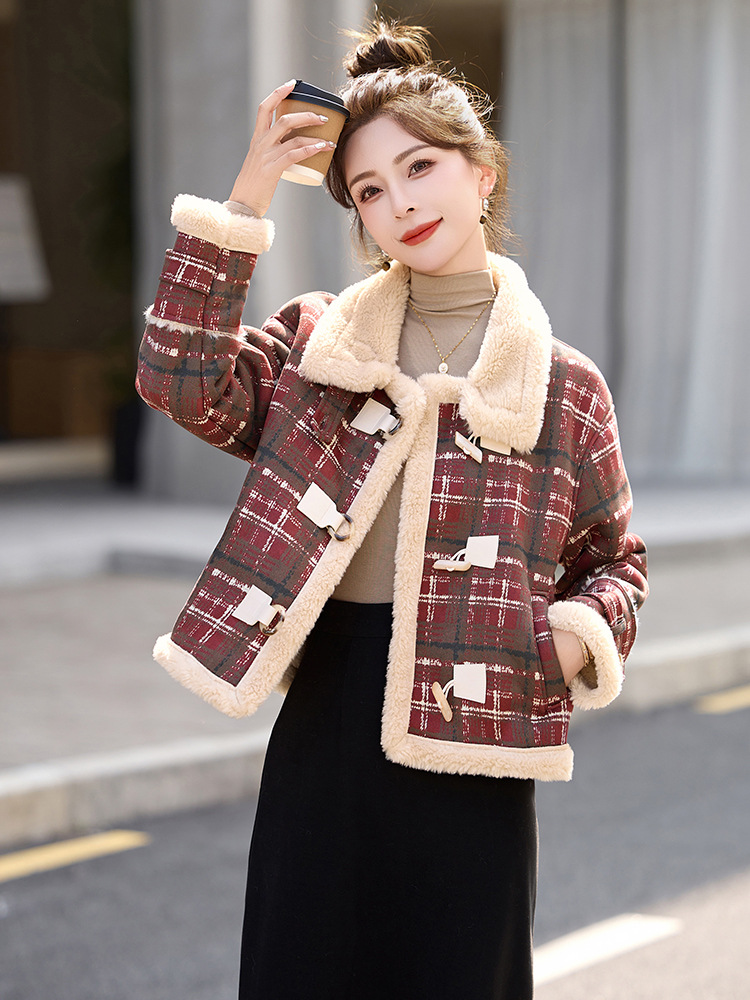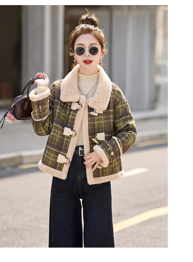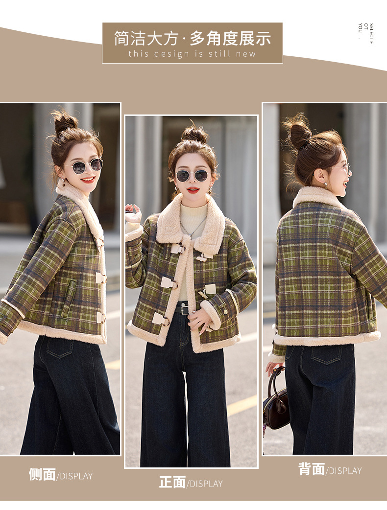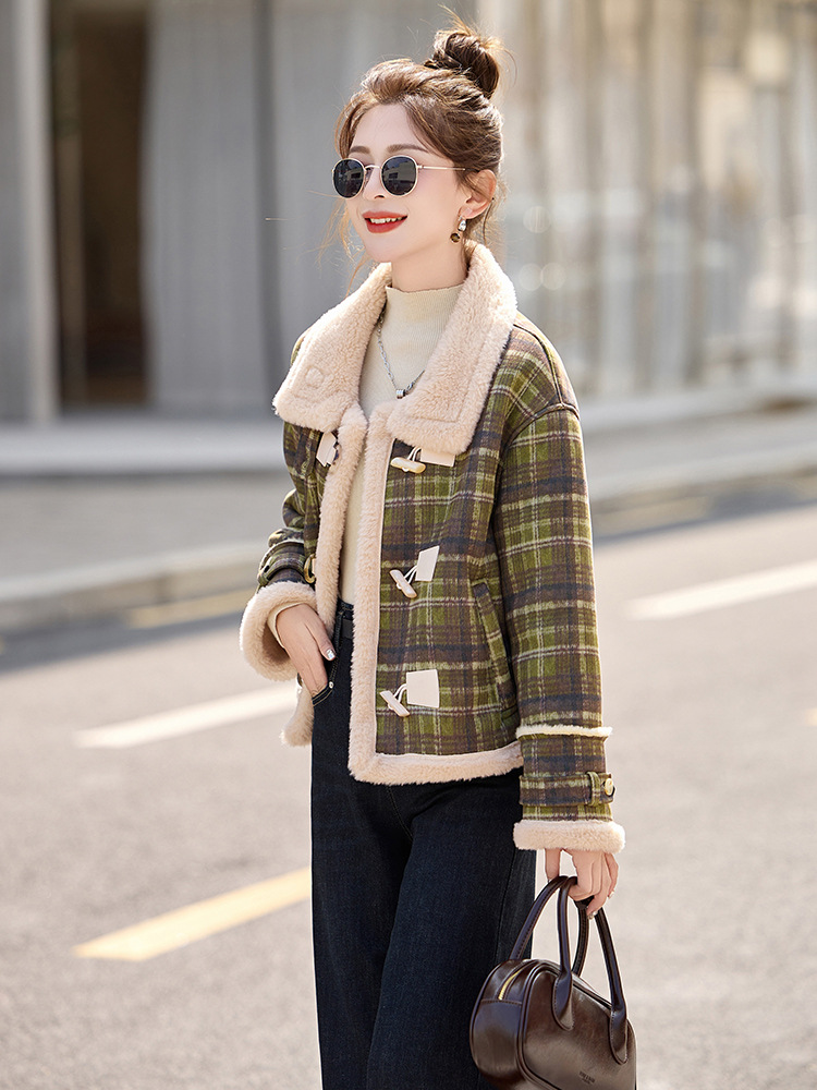 Áo khoác nữ dáng rộng có lớp lót len cừu ấm áp, kiểu dáng ôm vừa vặn. Chất liệu kết hợp giữa phần lông mềm mại bên trong và lớp ngoài chắc chắn, tạo nên điểm nhấn bằng các đường kẻ ô vuông tinh tế. Sản phẩm được thiết kế dày dặn hơn để giữ nhiệt tốt trong tiết trời lạnh. Khi sử dụng, bạn có thể kết hợp cùng quần jeans và boots để tạo phong cách trẻ trung, thoải mái cho những hoạt động thường ngày. | Tên sản phẩm: Áo Khoác Nữ Kẻ Caro Kẻ Caro Dày Ấm Hàng Mùa Xuân Thu Đông - Thời Trang Nữ | Mã sản phẩm: B8992 - Giá: 2.290.000đ | Mã nhà sản xuất: HADG-G05Hình ảnh sản phẩm