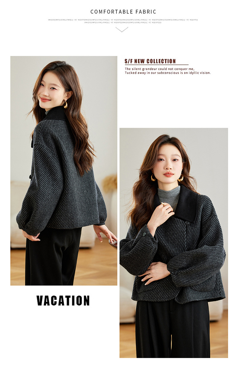 Áo khoác nữ dáng thanh lịch, thiết kế cổ bẻ và họa tiết sọc trang nhã. Chất liệu dệt hai mặt ấm áp, phù hợp mặc trong tiết trời thu đông. Bạn có thể kết hợp cùng quần tây hoặc váy để tạo vẻ ngoài chỉn chu khi đi làm, hoặc mặc với quần jean cho những dịp gặp gỡ bạn bè thêm thoải mái. Sản phẩm giữ ấm tốt nhưng vẫn đảm bảo sự nhẹ nhàng, dễ dàng phối cùng nhiều trang phục khác trong tủ đồ. | Tên sản phẩm: Áo Khoác Nữ Kín Cổ Hàng Mùa Xuân Thu Đông - Thời Trang Nữ | Mã sản phẩm: B7275 - Giá: 2.250.000đ | Mã nhà sản xuất: HADG-G05Hình ảnh sản phẩm