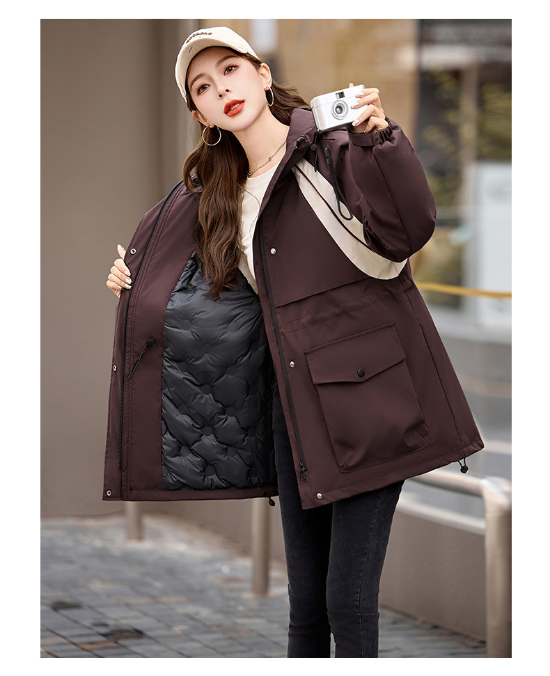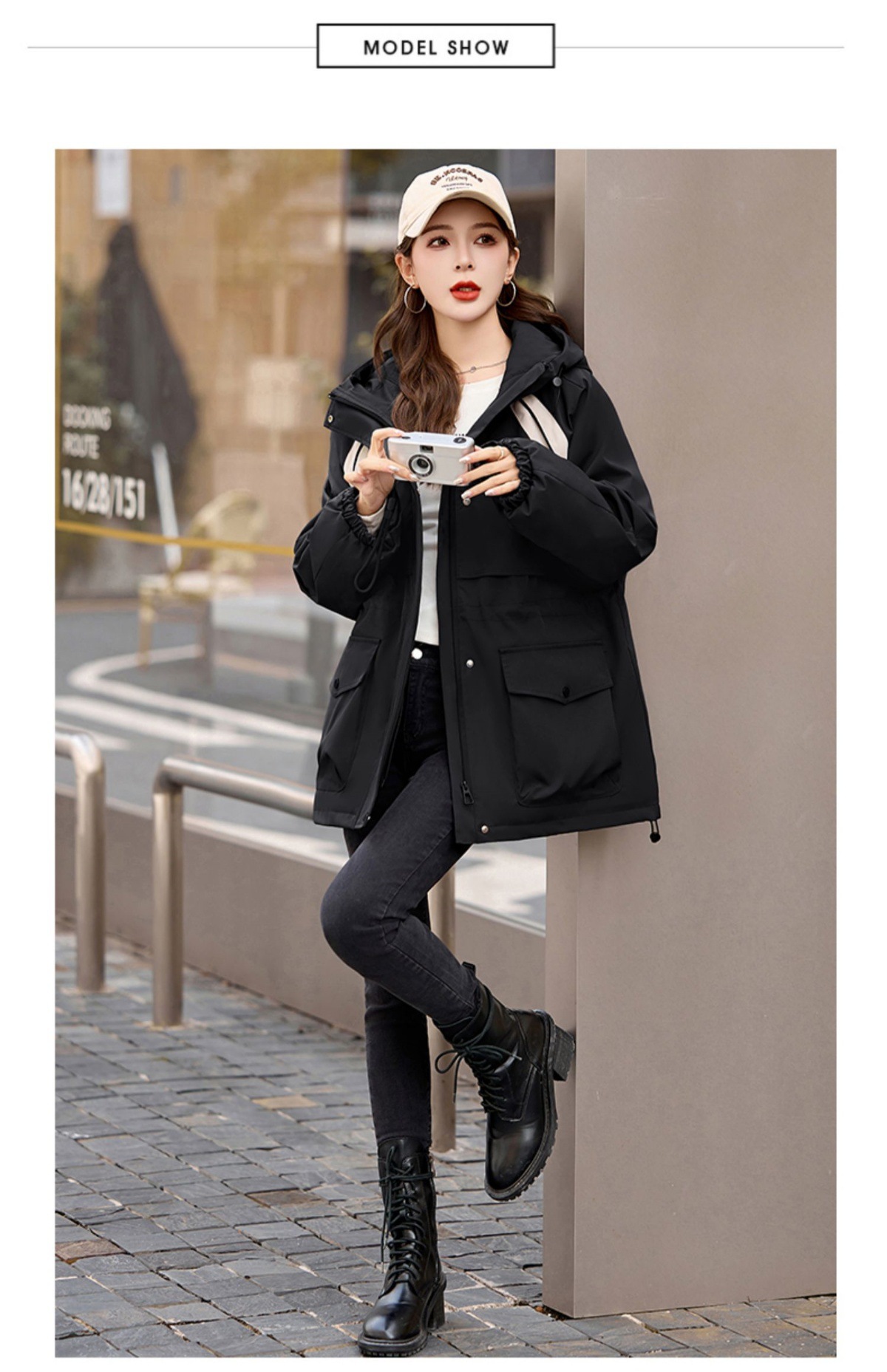 Áo khoác nữ dáng dài phong cách thoải mái, có mũ trùm và form rộng, phù hợp cho mùa đông. Sản phẩm được lót bằng lớp lông vũ mềm mại, giữ ấm tốt. Áo có thiết kế cổ điển với mũ có thể điều chỉnh và túi rộng hai bên. Bạn có thể mặc hằng ngày, kết hợp với quần jeans hoặc váy để tạo vẻ ngoài ấm áp và năng động. | Tên sản phẩm: Áo Khoác Nữ Mũ Liền Dày Ấm Hàng Mùa Xuân Thu Đông Phong Cách Hàn Quốc - Thời Trang Nữ | Mã sản phẩm: L1447 - Giá: 3.280.000đ | Mã nhà sản xuất: HADA-G06Hình ảnh sản phẩm