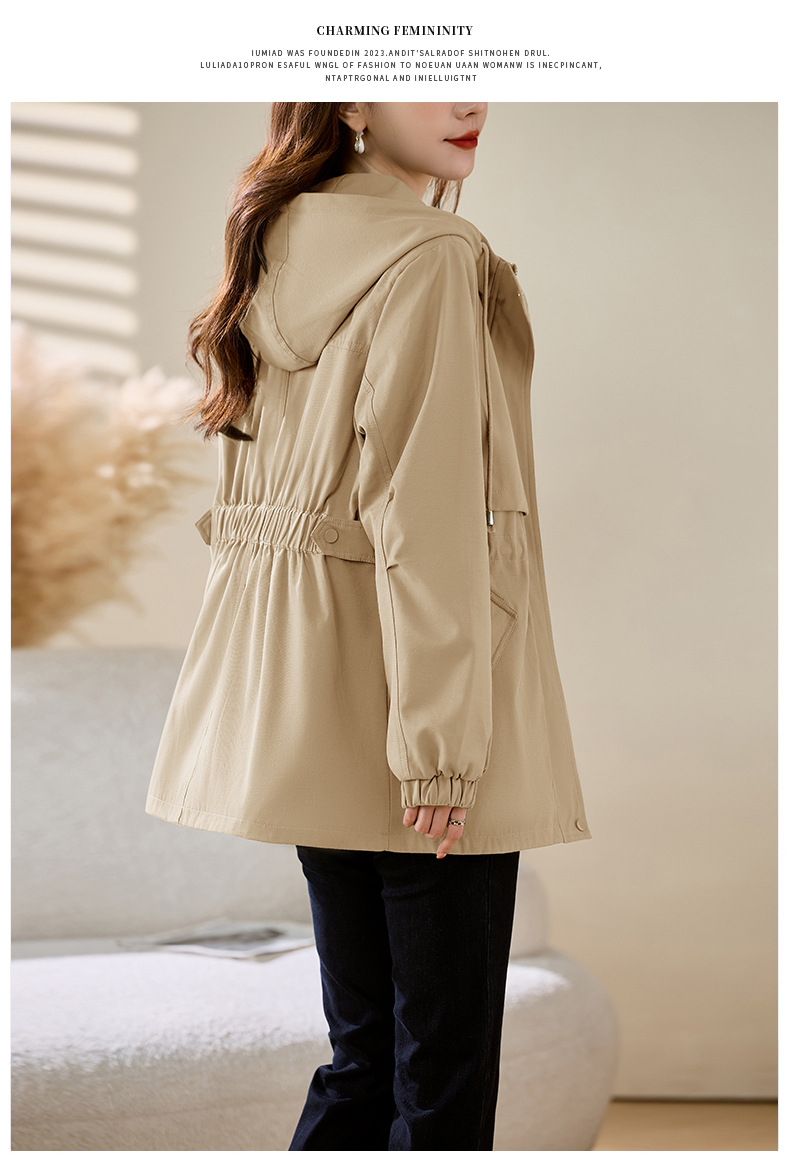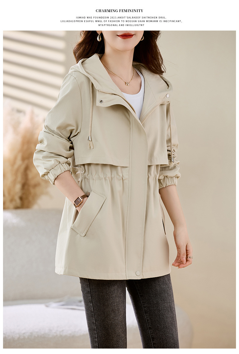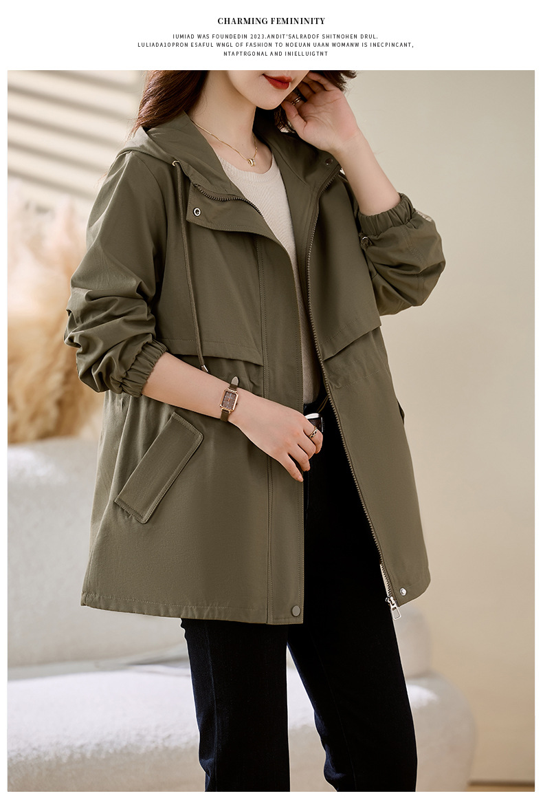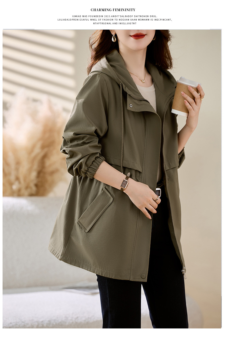 Áo khoác dành cho nữ, thiết kế dáng dài vừa phải phù hợp cho các bạn có chiều cao khiêm tốn. Kiểu áo rộng nhẹ nhưng có phần thắt eo tạo dáng thanh thoát. Sản phẩm có mũ trùm và nhiều túi tiện dụng, phong cách lao động nhẹ nhàng. Dễ dàng phối với nhiều loại trang phục khác nhau. Mặc trong tiết trời mát mẻ của mùa xuân hoặc mùa thu đều rất phù hợp. | Tên sản phẩm: Áo Khoác Nữ Mũ Liền Hàng Mùa Xuân Thu Đông - Thời Trang Nữ | Mã sản phẩm: L3697 - Giá: 1.680.000đ | Mã nhà sản xuất: WODIG-G05Hình ảnh sản phẩm
