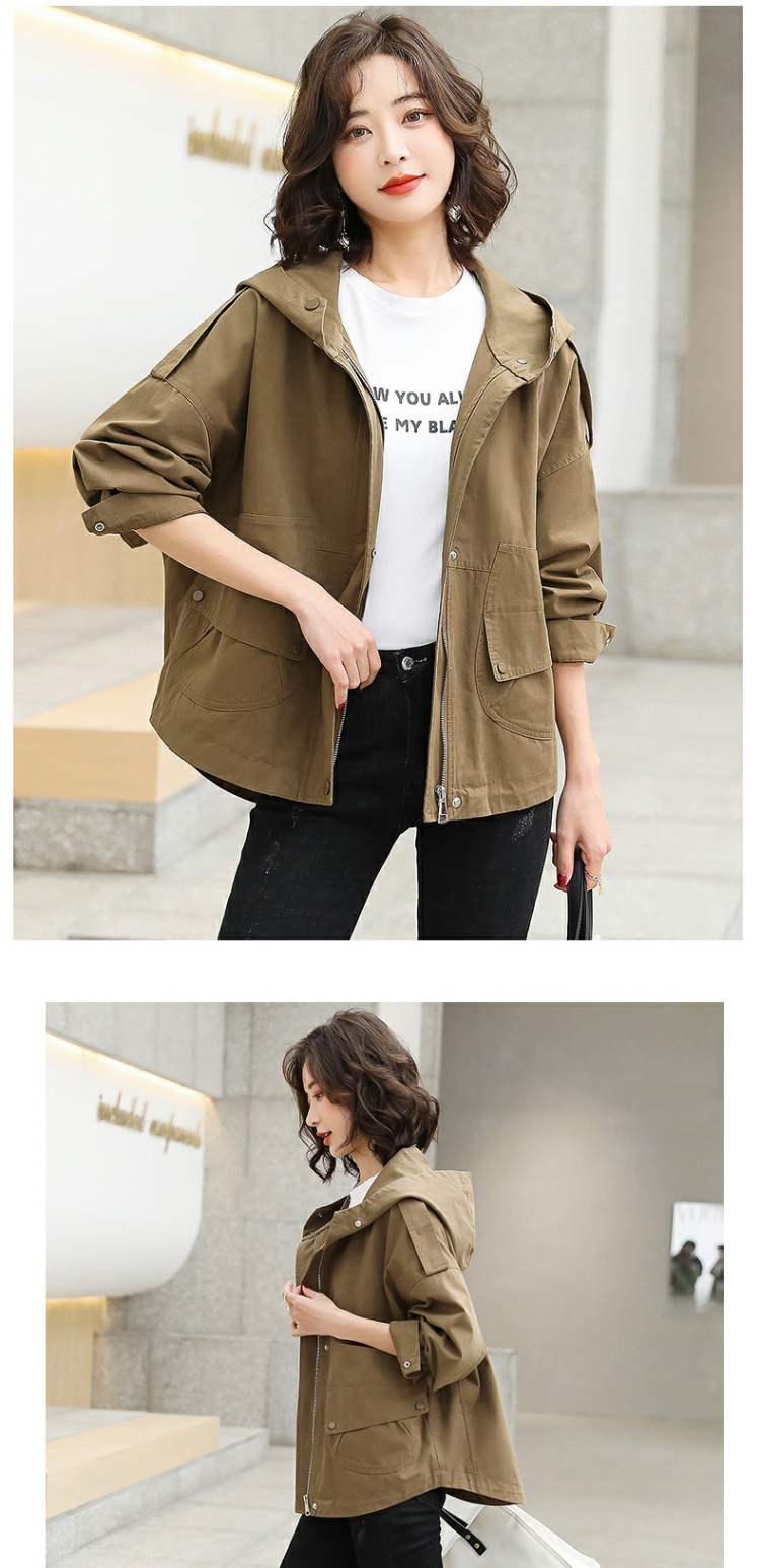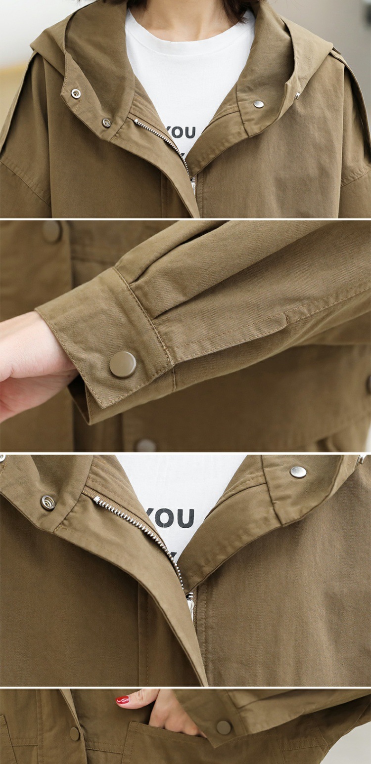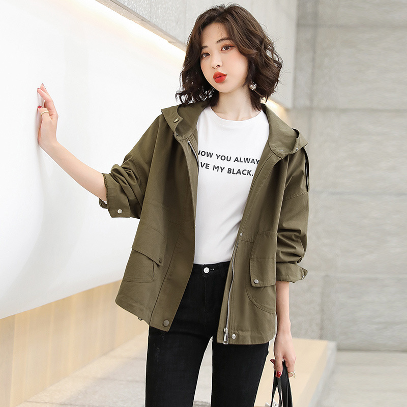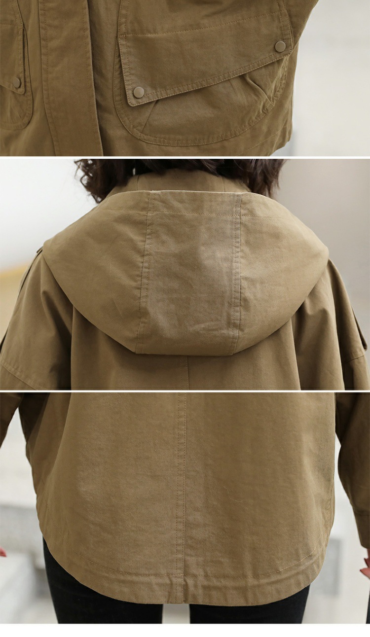 Áo khoác mỏng mùa xuân thu dành cho nữ, thiết kế ngắn vừa vặn, có mũ liền tiện lợi. Kiểu dáng rộng rãi thoải mái, tạo cảm giác dễ chịu khi mặc. Chất vải nhẹ nhàng, phù hợp cho những ngày tiết trời mát mẻ. Dễ dàng phối cùng nhiều loại trang phục khác nhau như quần jeans hay váy liền. Sản phẩm thích hợp cho các bạn nữ có chiều cao khiêm tốn, giúp tôn dáng một cách tự nhiên. Có thể mặc làm áo đi chơi, dạo phố hoặc đến nơi làm việc. | Tên sản phẩm: Áo Khoác Nữ Mũ Liền Hàng Mùa Xuân Thu Đông - Thời Trang Nữ | Mã sản phẩm: G2007 - Giá: 1.590.000đ | Mã nhà sản xuất: HADA-G04Hình ảnh sản phẩm