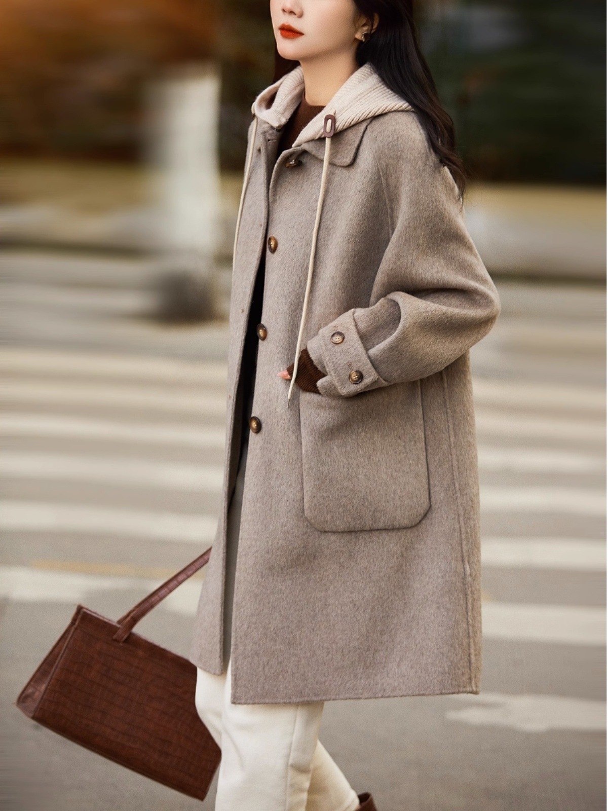 Áo khoác dáng dài cho nữ, kiểu mẫu mới cho thời tiết se lạnh. Chất liệu dệt từ sợi len ấm áp, mềm mại và giữ nhiệt tốt. Thiết kế có mũ trùm và dáng rộng tạo cảm giác thoải mái, phóng khoáng. Kiểu áo này dễ phối đồ, có thể mặc cùng quần jeans và áo thun hay váy liền. Phù hợp cho những ngày thu đông, giúp bạn giữ ấm mà vẫn thanh lịch và trẻ trung. | Tên sản phẩm: Áo Khoác Nữ Mũ Liền Trông Trẻ Hơn Tuổi Hàng Mùa Xuân Thu Đông - Thời Trang Nữ | Mã sản phẩm: K2455 - Giá: 1.020.000đ | Mã nhà sản xuất: SHREIA-G03Hình ảnh sản phẩm