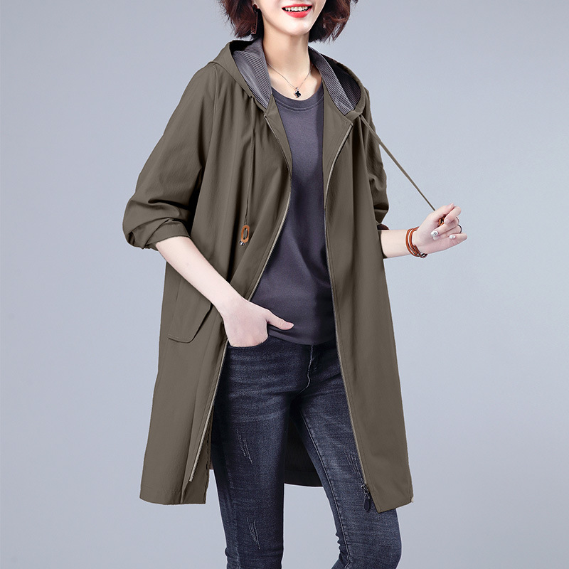 Áo khoác dáng dài phù hợp cho các cô nàng có chiều cao nhỏ nhắn trong tiết trời đầu thu. Chất vải mỏng nhẹ tạo cảm giác thoải mái, dễ chịu khi mặc. Kiểu áo mang phong cách trẻ trung, giúp tôn lên vẻ năng động, thanh lịch. Có thể phối cùng quần jeans và áo thun để tạo set đồ đi chơi, hoặc mặc với váy để đi làm. Dễ dàng giặt máy và bảo quản như các loại áo thông thường. | Tên sản phẩm: Áo Khoác Nữ Trông Trẻ Hơn Tuổi Hàng Mùa Xuân Thu Đông - Thời Trang Nữ | Mã sản phẩm: B9338 - Giá: 1.400.000đ | Mã nhà sản xuất: WODIG-G04Hình ảnh sản phẩm