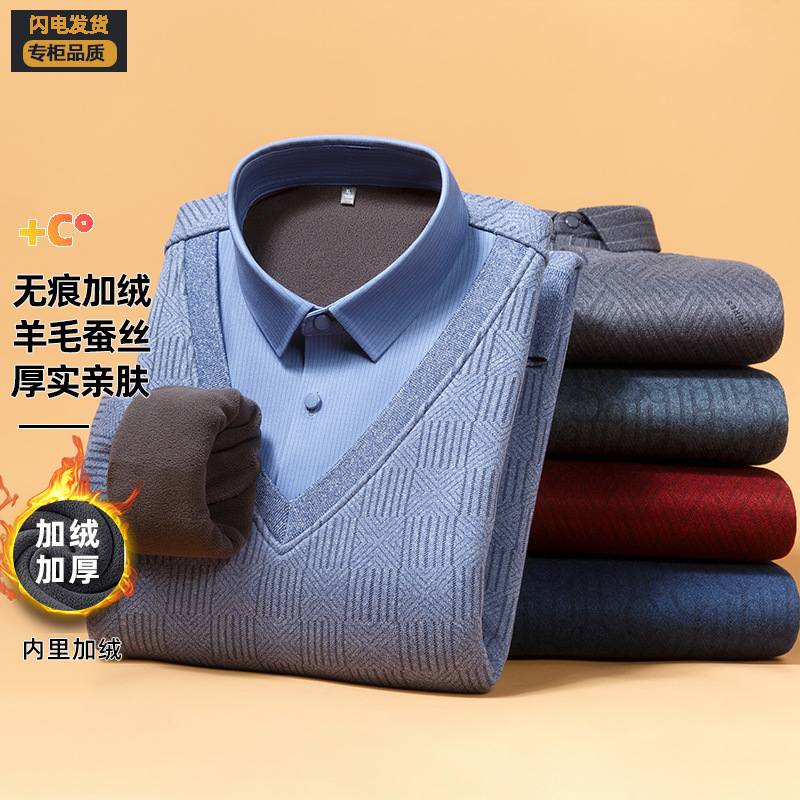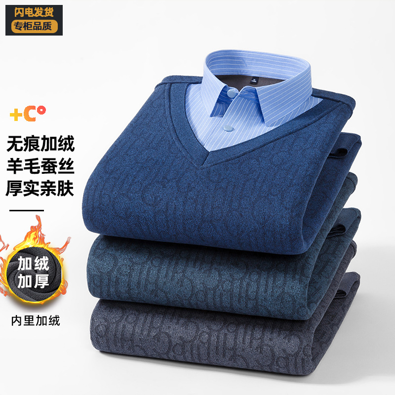 Áo len nam dáng dài tay cổ sơ mi, kiểu dáng như hai lớp nhưng mặc một chiếc rất tiện. Sản phẩm được làm từ hỗn hợp len và tơ tằm, bên trong có thêm một lớp lót mềm mại giúp giữ ấm tốt. Chất vải có khả năng kháng khuẩn nhẹ, phù hợp cho những ngày trời se lạnh. Cách mặc đơn giản, có thể dùng làm áo khoác nhẹ bên ngoài hoặc mặc trực tiếp như áo thun cổ điển. | Tên sản phẩm: Áo Len Nam Áo Len Dài Tay Cả Bộ 2 Món Dày Ấm - Thời Trang Nam | Mã sản phẩm: A8092 - Giá: 830.000đ | Mã nhà sản xuất: WATYM-G03Hình ảnh sản phẩm