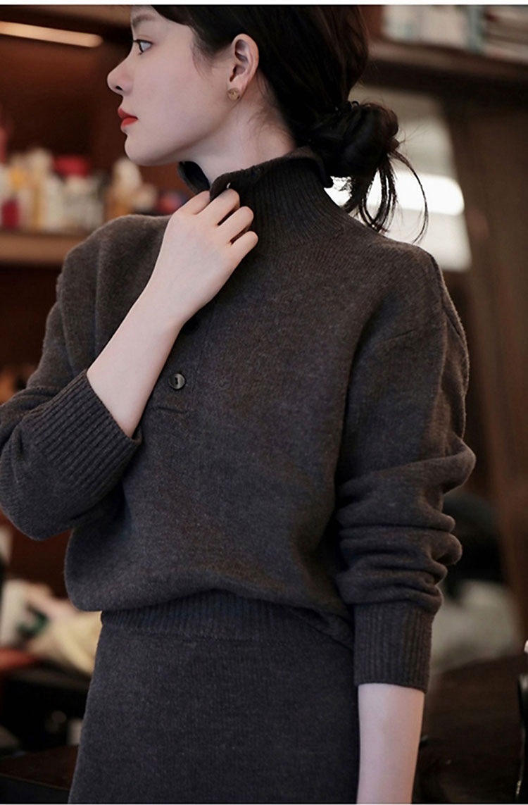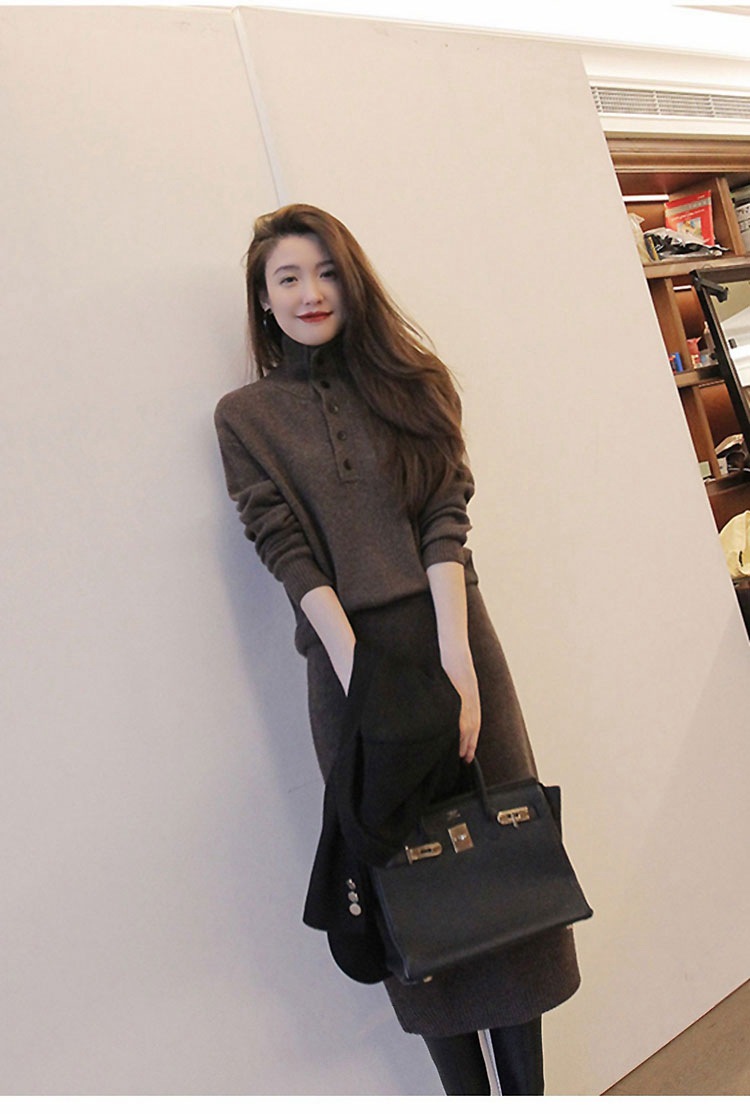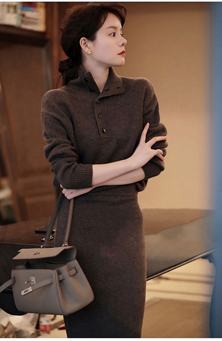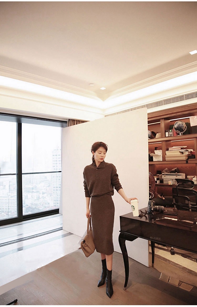 Bộ trang phục hai mảnh này gồm áo len đan mềm mại và chân váy dáng dài, mang đến vẻ ngoại hình thanh lịch và hiện đại. Chất vải co giãn nhẹ nhàng, tạo cảm giác dễ chịu khi mặc. Bạn có thể phối bộ này đi làm, đi chơi hoặc dự tiệc nhẹ. Mặc áo len bên trong với chân váy, thêm đôi giày tây hoặc giày búp bê là đã có vẻ ngoài chỉn chu và nổi bật. | Tên sản phẩm: Áo Len Nữ Áo Len Cả Bộ 2 Món Hàng Mùa Xuân Thu Đông - Thời Trang Nữ | Mã sản phẩm: B3439 - Giá: 1.090.000đ | Mã nhà sản xuất: ZHOUT-G03Hình ảnh sản phẩm