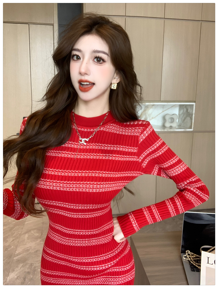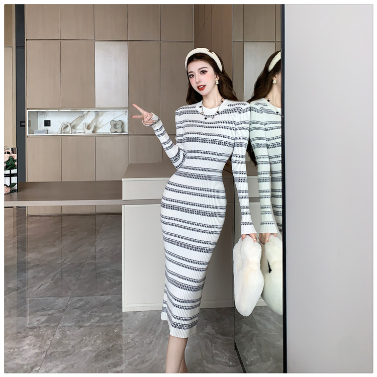 Chiếc đầm dệt kim này có kiểu dáng ôm cơ thể, tôn lên những đường nét cơ bản. Thiết kế kết hợp các sọc ngang cùng sự phối màu tương phản, tạo điểm nhấn nổi bật. Dáng đầm bút chì vừa vặn, phần l ôm nhẹ. Chất liệu dệt kim mềm mại mang lại cảm giác dễ chịu khi mặc. Bạn có thể phối cùng giày cao gót và túi xách nhỏ để hoàn thiện bộ trang phục đi làm hoặc dự tiệc. | Tên sản phẩm: Áo Len Nữ Áo Len Dáng Ôm Hàng Mùa Xuân Thu Đông - Thời Trang Nữ | Mã sản phẩm: B3958 - Giá: 670.000đ | Mã nhà sản xuất: ZHOUT-G02Hình ảnh sản phẩm