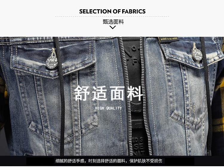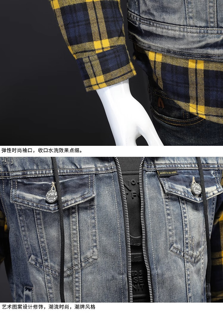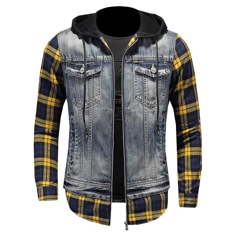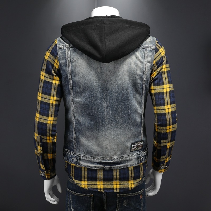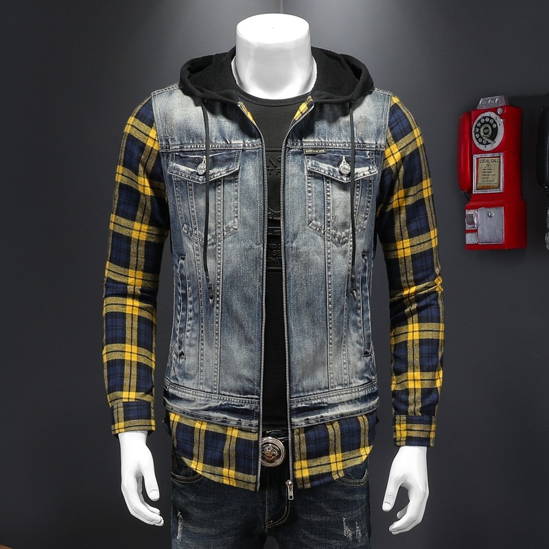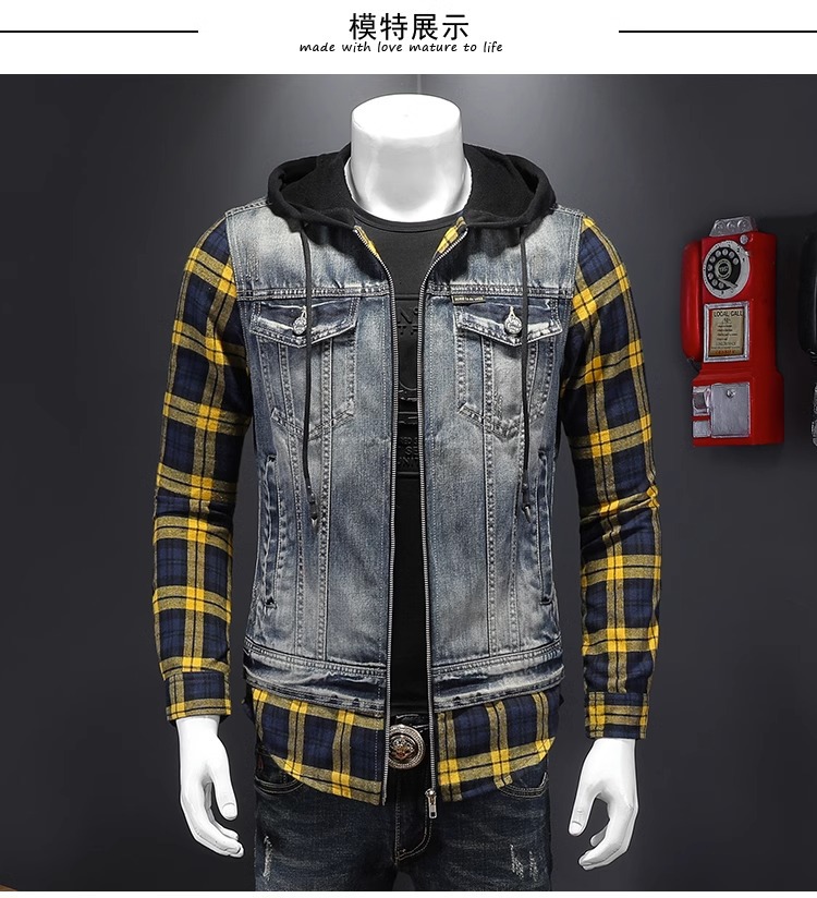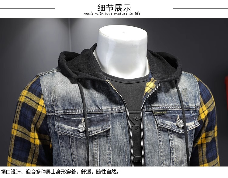 Áo khoác jean có mũ được thiết kế như đang mặc hai lớp, tạo kiểu dáng trẻ trung và năng động. Chất liệu denim bền chắc, điểm nhấn là họa tiết ô vuông tinh tế phía trước. Sản phẩm có dây rút điều chỉnh ở mũ và túi rộng tiện lợi. Phù hợp mặc đi học, dạo phố hay các buổi gặp mặt bạn bè. Có thể phối cùng quần shorts hoặc quần jeans để tạo vẻ ngoài cá tính. | Tên sản phẩm: Áo Sơ Mi Nam Chất Liệu Jean Bò Cả Bộ 2 Món Kẻ Caro - Thời Trang Nam | Mã sản phẩm: B1740 - Giá: 2.210.000đ | Mã nhà sản xuất: QITYGF-G05Hình ảnh sản phẩm