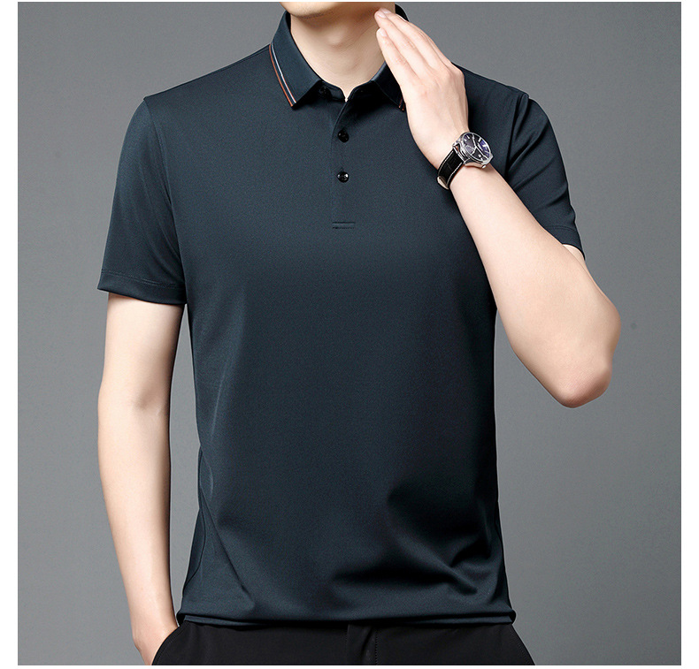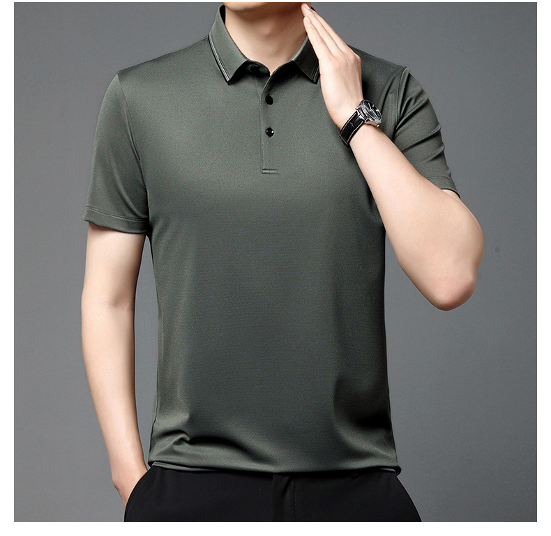 Áo polo nam dành cho mùa hè, kiểu dáng kết hợp đi làm và đi chơi. Chất vải mềm mại, thoáng mát và thấm hút mồ hôi tốt, giúp người mặc luôn cảm thấy dễ chịu. Thiết kế đơn giản, lịch sự phù hợp cho nhiều dịp. Áo ít nhăn nên rất tiện lợi, mặc xong có thể giặt và treo lên là phẳng, không cần ủi nhiều. | Tên sản phẩm: Áo Sơ Mi Nam Chất Liệu Lụa Tơ Tằm Hàng Mùa Hè Trung Niên - Thời Trang Nam | Mã sản phẩm: B9533 - Giá: 2.660.000đ | Mã nhà sản xuất: SHRYCT-G06Hình ảnh sản phẩm