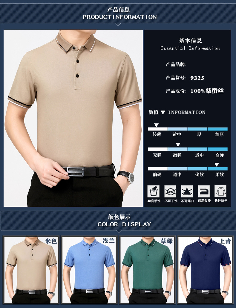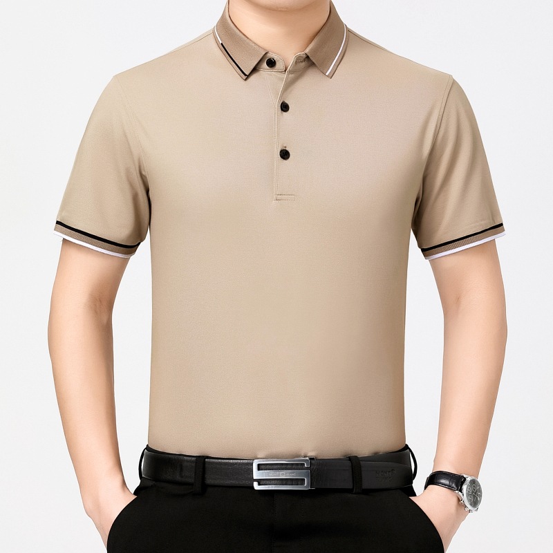 Áo thun cổ bẻ dành cho nam, kiểu dáng thoải mái phù hợp cho những ngày hè oi bức. Sản phẩm được dệt từ sợi tơ tằm tự nhiên, mang lại cảm giác mát mẻ, nhẹ nhàng và thoáng khí khi mặc. Thiết kế cổ điển với cổ bẻ và tay ngắn, dễ dàng phối hợp cùng quần tây hay quần short để tạo nên phong cách thư giãn lịch sự. Chỉ cần giặt nhẹ và phơi khô trong bóng râm để giữ áo bền đẹp. | Tên sản phẩm: Áo Sơ Mi Nam Chất Liệu Lụa Tơ Tằm Ngắn Tay Kín Cổ Hàng Mùa Hè Trung Niên - Thời Trang Nam | Mã sản phẩm: B9484 - Giá: 2.100.000đ | Mã nhà sản xuất: SHRYCT-G05Hình ảnh sản phẩm