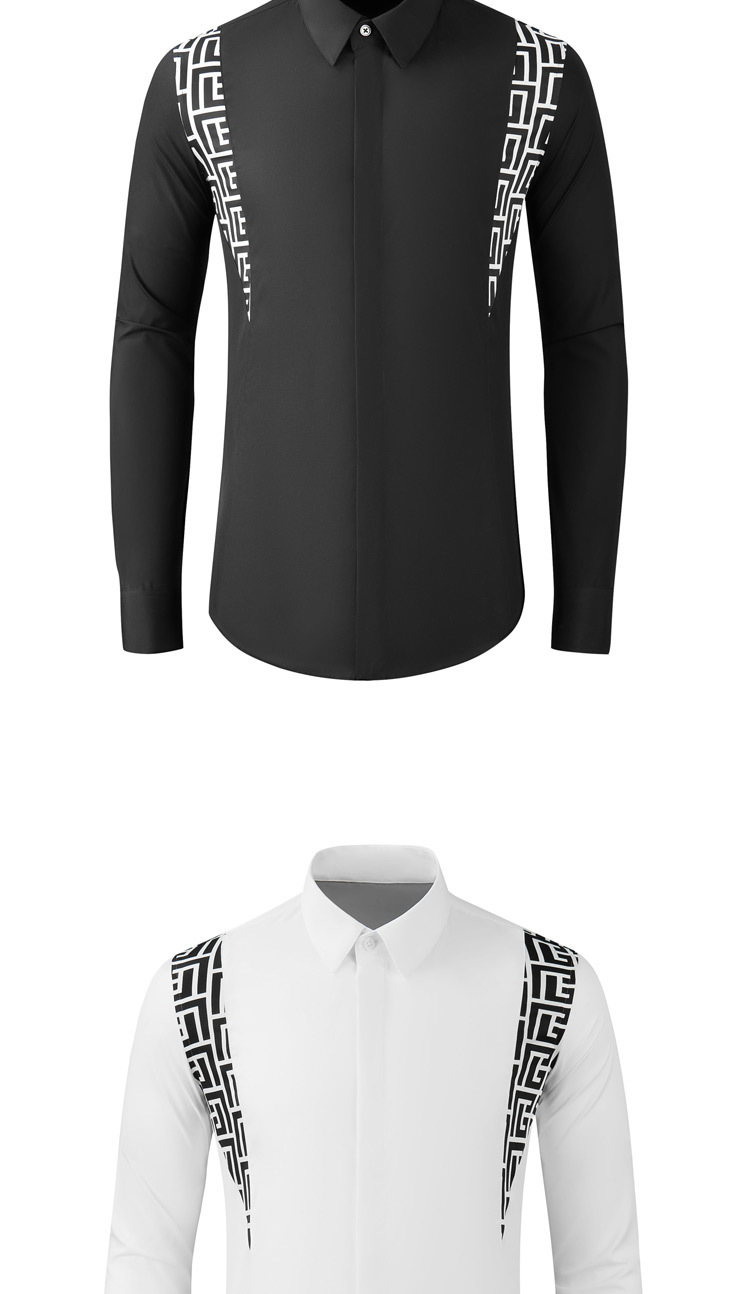 Áo sơ mi nam tay dài này có kiểu dáng vừa vặn, tôn dáng người mặc. Điểm nhấn đặc biệt là phần v in họa tiết hoa văn hình xoáy, kết hợp cùng thiết kế ghép màu tương phản độc đáo tạo nên phong cách cá tính và nổi bật. Sản phẩm phù hợp cho nhiều dịp, từ đi làm thường ngày đến các buổi gặp mặt. Bạn có thể mặc cùng quần âu hoặc quần jeans để hoàn thiện bộ trang phục. | Tên sản phẩm: Áo Sơ Mi Nam Dài Tay Họa Tiết Hoa - Thời Trang Nam | Mã sản phẩm: B7709 - Giá: 2.480.000đ | Mã nhà sản xuất: SHDAP-G05Hình ảnh sản phẩm
