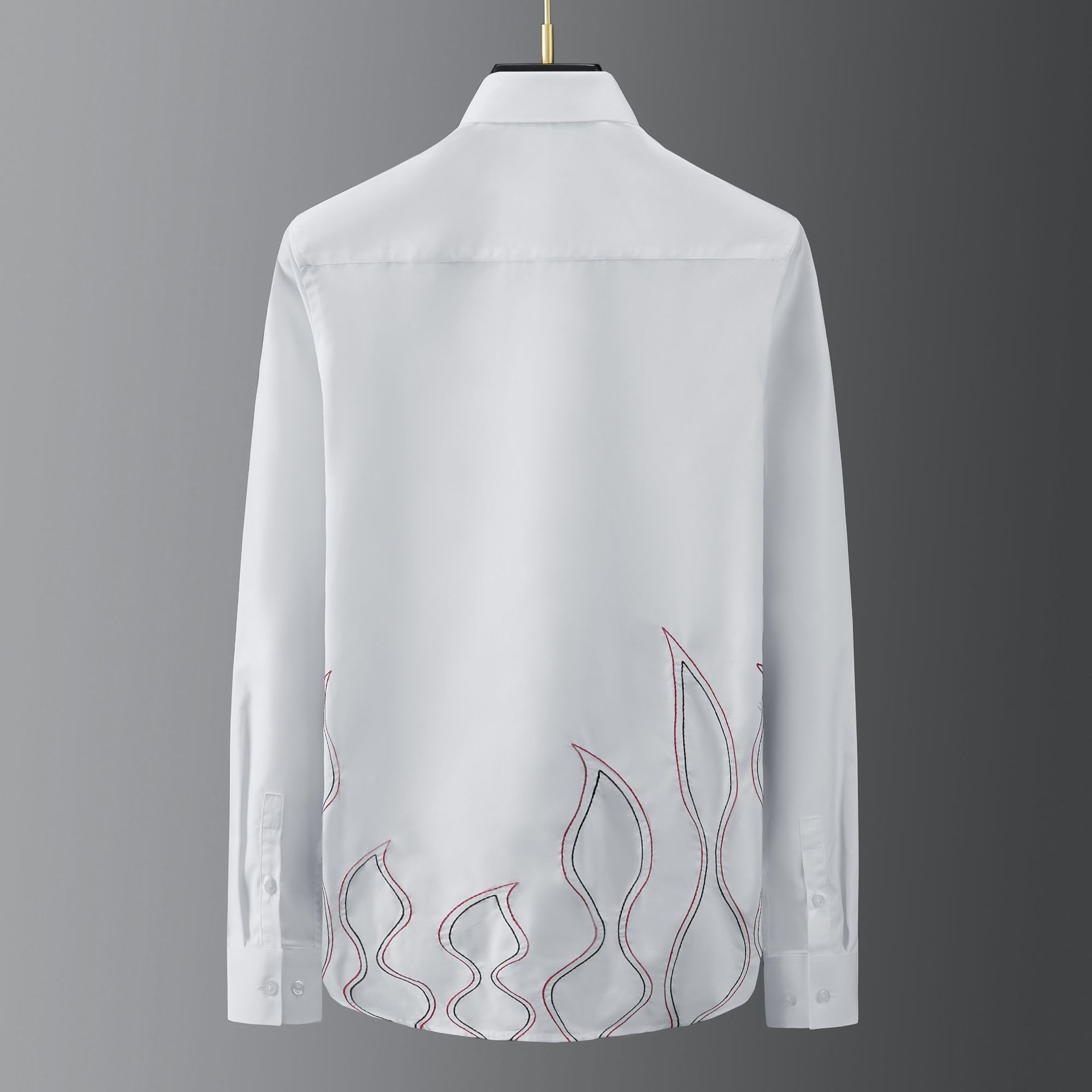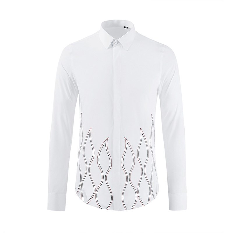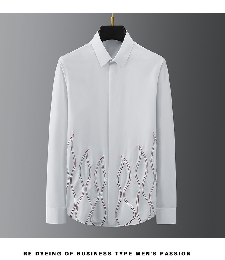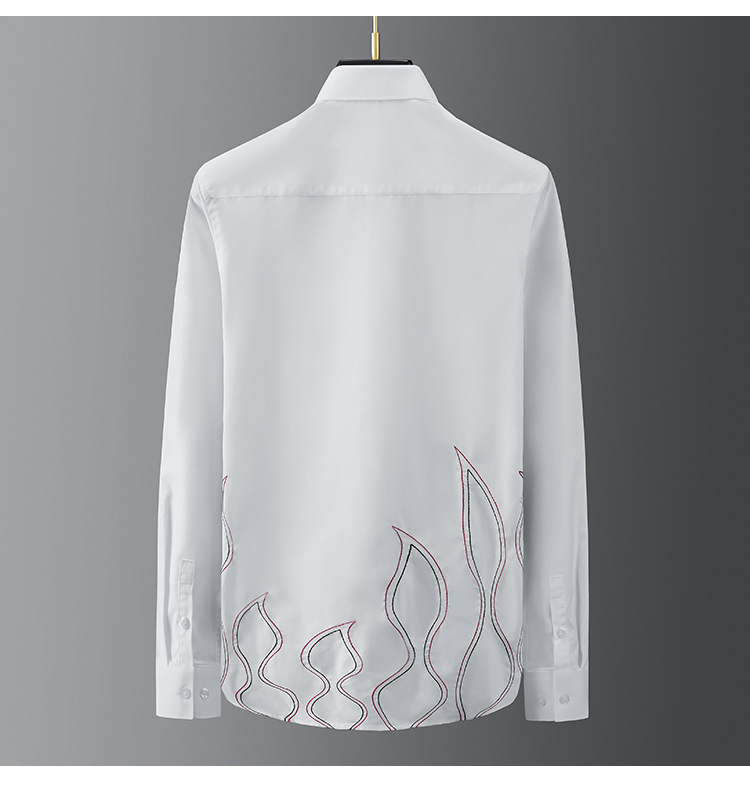 Áo sơ mi dài tay dành cho nam, kiểu dáng mặc thường ngày rất thoải mái. Điểm nổi bật là hình thêu ngọn lửa cách điệu đan chéo nhau ở phần gấu áo, tạo nên phong cách riêng. Chất liệu vải mềm mại, thấm hút mồ hôi tốt, phù hợp mặc đi làm hoặc dạo phố. Có thể mặc kèm với quần jeans hoặc quần âu đều phù hợp. Giặt máy nhẹ nhàng để giữ form áo và hình thêu được bền đẹp. | Tên sản phẩm: Áo Sơ Mi Nam Dài Tay Thêu Họa Tiết Hoa Hàng Mùa Xuân Thu Đông - Thời Trang Nam | Mã sản phẩm: A9503 - Giá: 1.380.000đ | Mã nhà sản xuất: FODAR-G04Hình ảnh sản phẩm