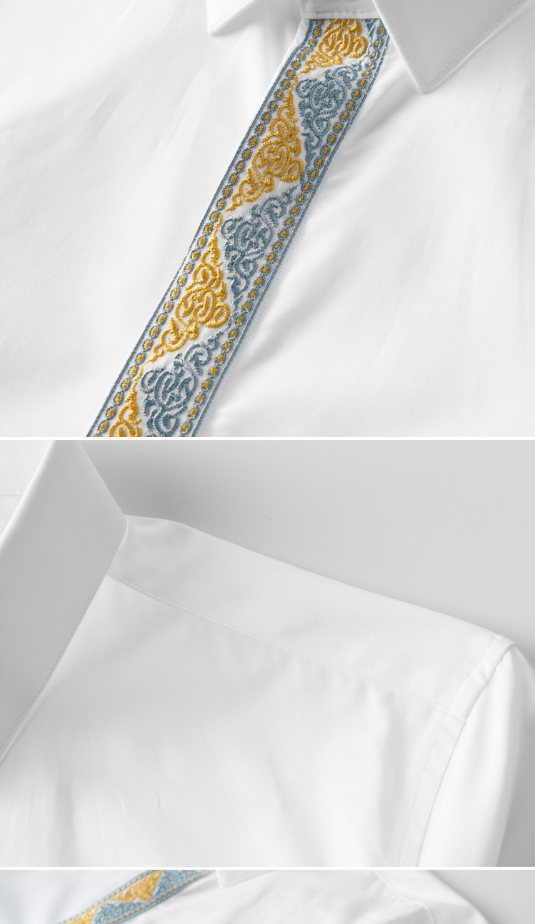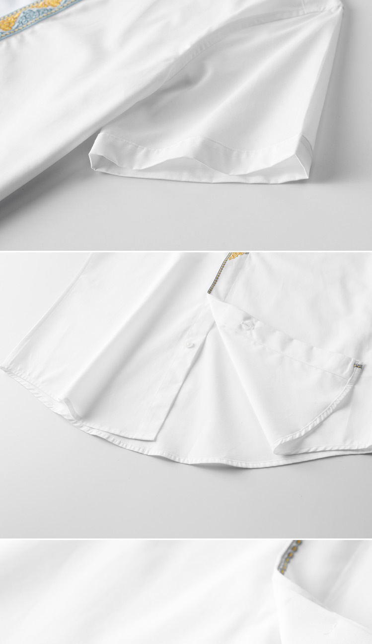 Áo sơ mi nam với điểm nhấn là đường thêu tinh xảo trên ngực áo, tạo nên vẻ đẹp tinh tế mà không quá cầu kỳ. Kiểu dáng ôn vừa vặn giúp tôn lên dáng người mặc. Chất vải mềm mại, thoáng mát, phù hợp cho những dịp gặp gỡ thường ngày. Có thể kết hợp cùng quần tây hoặc quần jean để tạo phong cách lịch sự nhẹ nhàng. Giặt tay hoặc máy với chế độ nhẹ để giữ form áo và đường thêu được bền đẹp. | Tên sản phẩm: Áo Sơ Mi Nam Dáng Ôm Thêu Họa Tiết Hoa - Thời Trang Nam | Mã sản phẩm: B7630 - Giá: 2.100.000đ | Mã nhà sản xuất: SHDAP-G05Hình ảnh sản phẩm