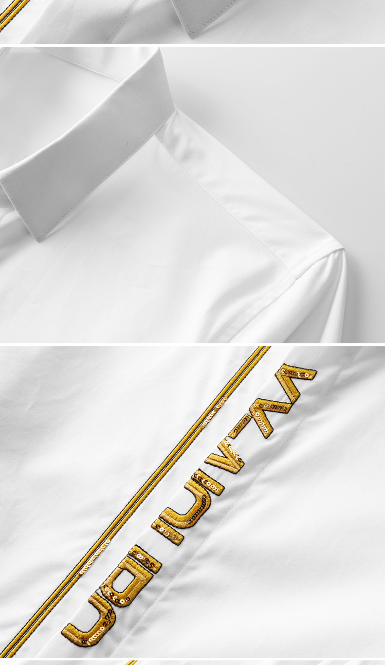 Áo sơ mi nam có kiểu dáng ôm vừa vặn, phù hợp mặc mỗi ngày. Điểm nhấn là đường thêu hình chữ cái được làm từ sợi kim tuyến lấp lánh, tạo nên nét riêng cho chiếc áo. Chất vải mềm mại, thoáng mát giúp người mặc dễ chịu khi vận động. Sản phẩm dễ phối cùng nhiều loại quần khác nhau, có thể giặt máy như hướng dẫn thông thường. | Tên sản phẩm: Áo Sơ Mi Nam Dáng Ôm Thêu Họa Tiết Hoa - Thời Trang Nam | Mã sản phẩm: B7637 - Giá: 2.190.000đ | Mã nhà sản xuất: SHDAP-G05Hình ảnh sản phẩm