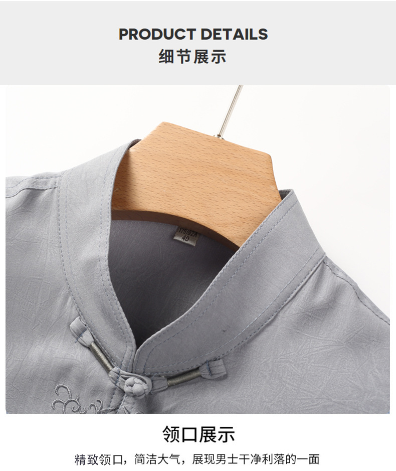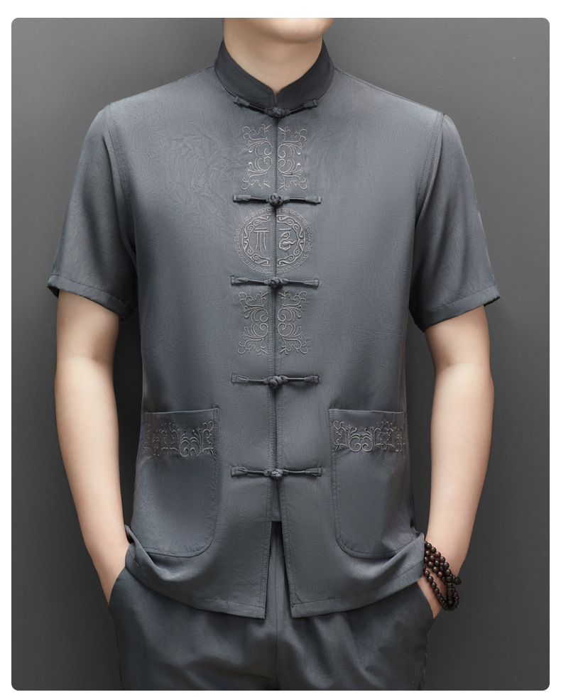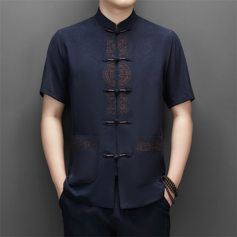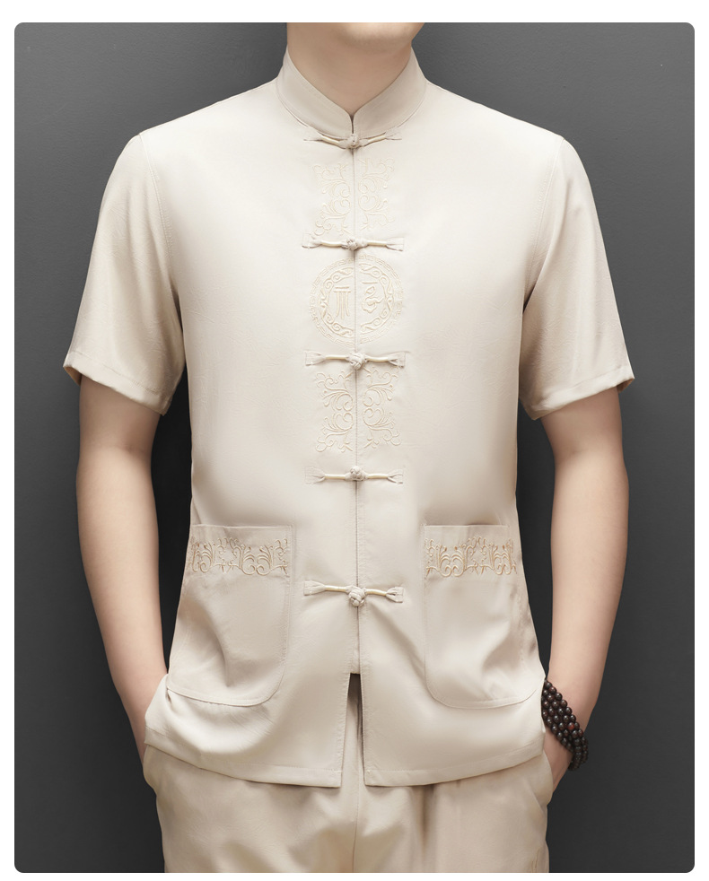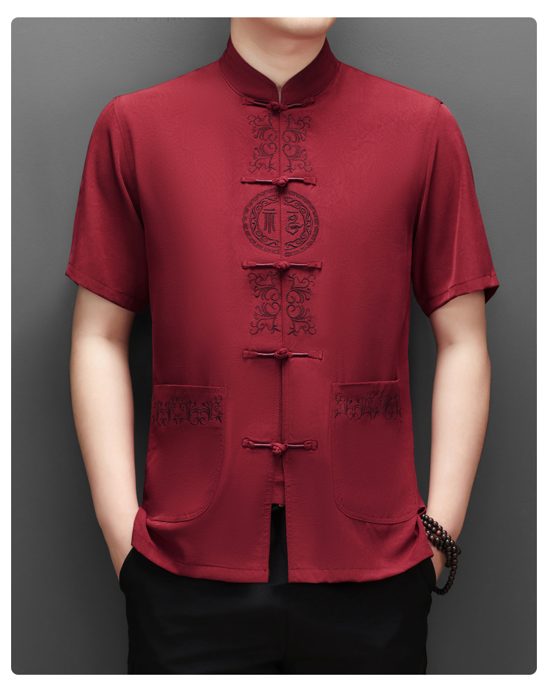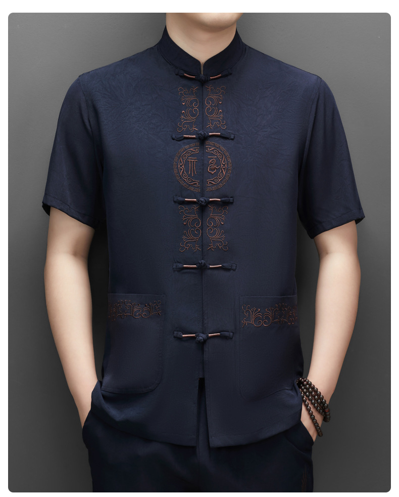 Áo ngắn tay dành cho nam, kiểu dáng cổ điển phù hợp mặc trong mùa hè. Sản phẩm có form rộng rãi thoải mái, phần cổ đứng lịch sự. Điểm nhấn đặc biệt là hàng cúc bấm tinh xảo thay thế cho cúc áo thông thường, tạo nên vẻ đẹp riêng. Chất vải mát nhẹ, dễ chịu khi mặc. Có thể kết hợp cùng quần dài hoặc quần vải để tạo phong cách nhã nhặn, thoải mái trong nhiều dịp sinh hoạt. | Tên sản phẩm: Áo Sơ Mi Nam Ngắn Tay Hàng Mùa Hè Trung Niên Phục Cổ Cổ Điển - Thời Trang Nam | Mã sản phẩm: B6305 - Giá: 780.000đ | Mã nhà sản xuất: JIDG-G02Hình ảnh sản phẩm