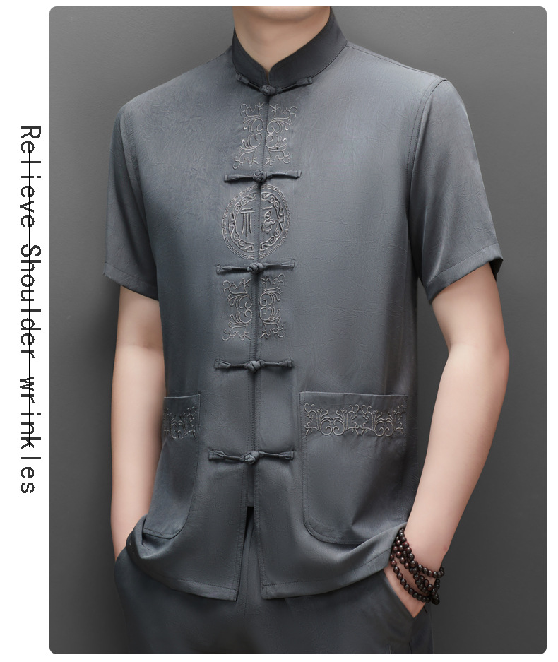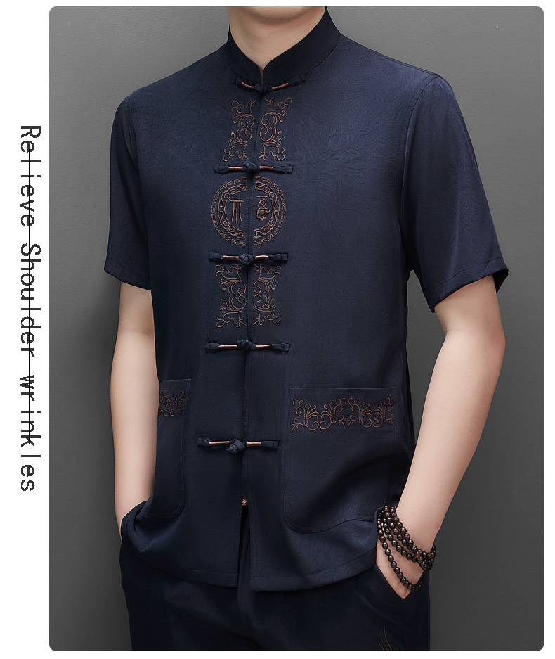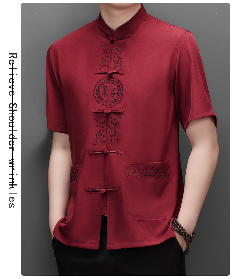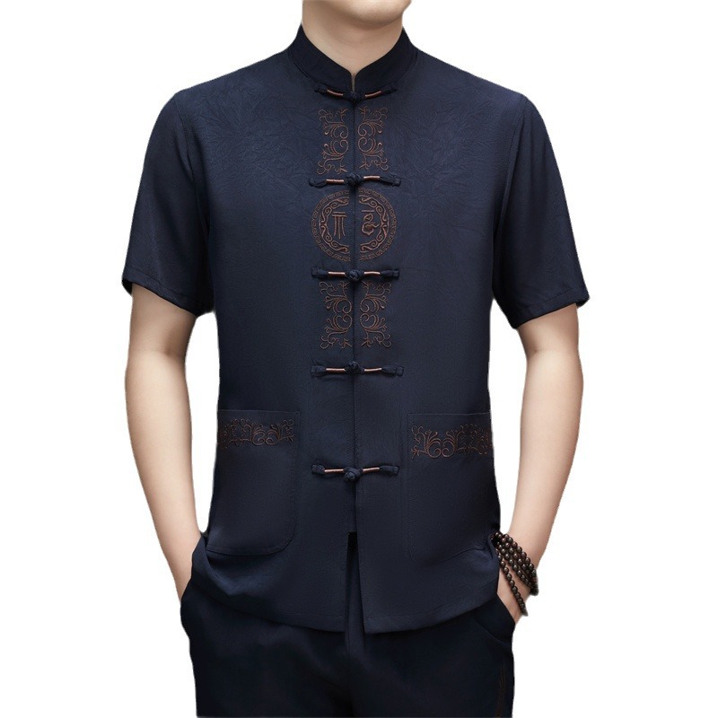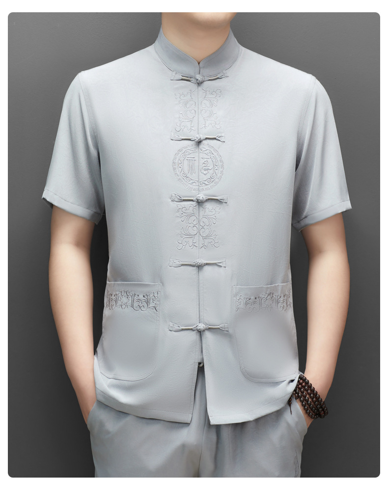 Áo ngắn tay dành cho nam, kiểu dáng cổ điển phù hợp mặc trong mùa hè. Sản phẩm có form rộng rãi thoải mái, phần cổ đứng lịch sự. Điểm nhấn đặc biệt là hàng cúc bấm tinh xảo thay thế cho cúc áo thông thường, tạo nên vẻ đẹp riêng. Chất vải mát nhẹ, dễ chịu khi mặc. Có thể kết hợp cùng quần dài hoặc quần vải để tạo phong cách nhã nhặn, thoải mái trong nhiều dịp sinh hoạt. | Tên sản phẩm: Áo Sơ Mi Nam Ngắn Tay Hàng Mùa Hè Trung Niên Phục Cổ Cổ Điển - Thời Trang Nam | Mã sản phẩm: B6305 - Giá: 780.000đ | Mã nhà sản xuất: JIDG-G02Hình ảnh sản phẩm