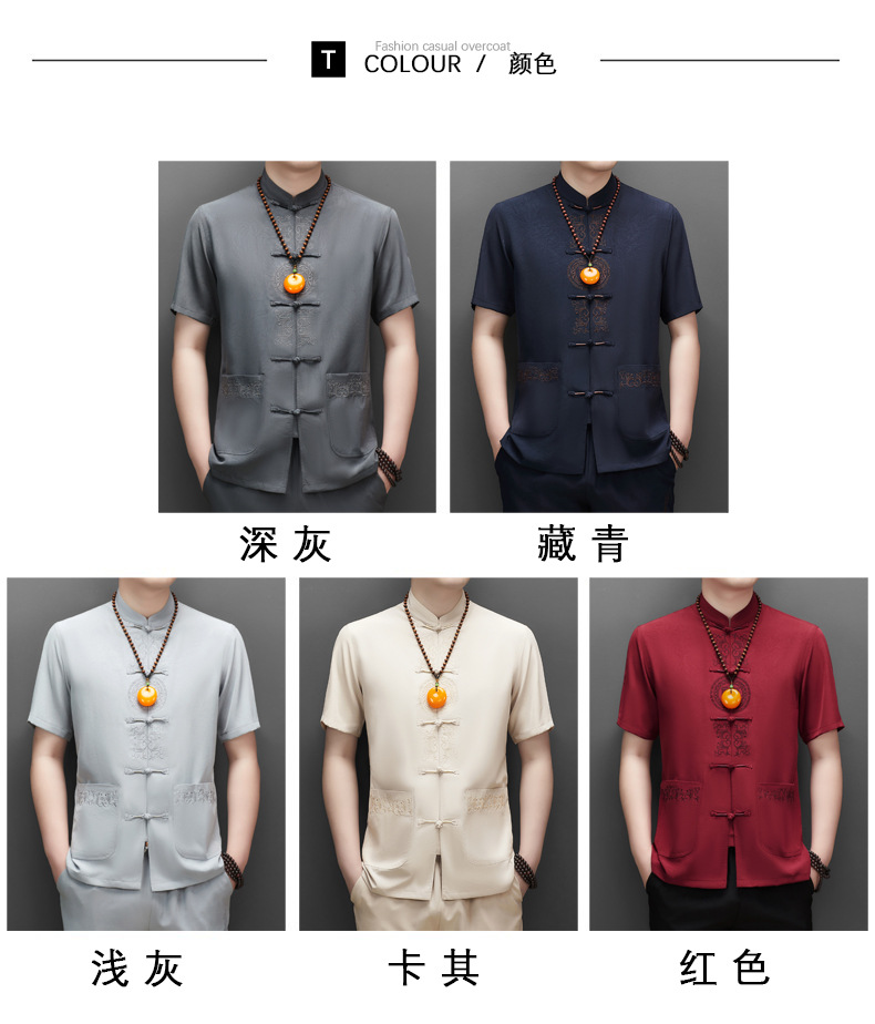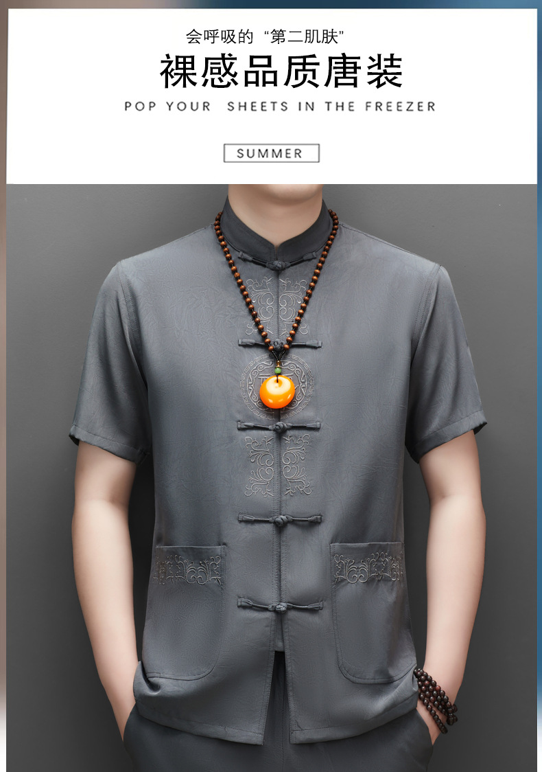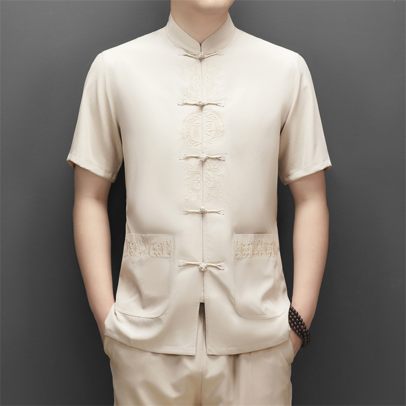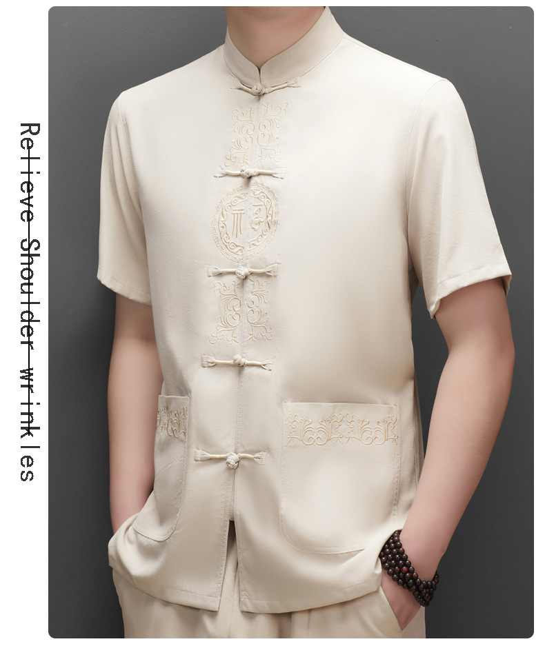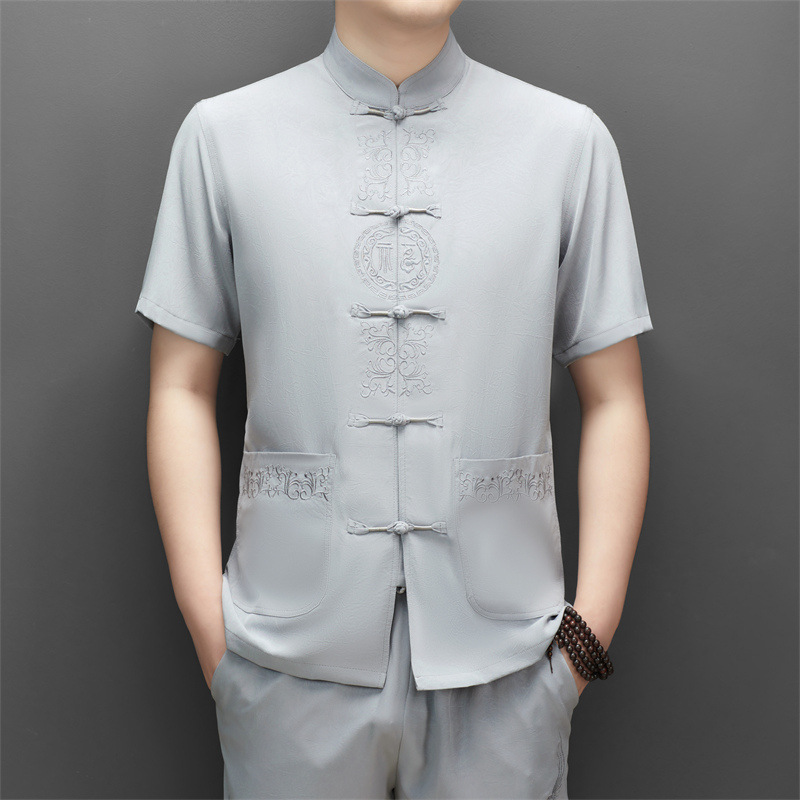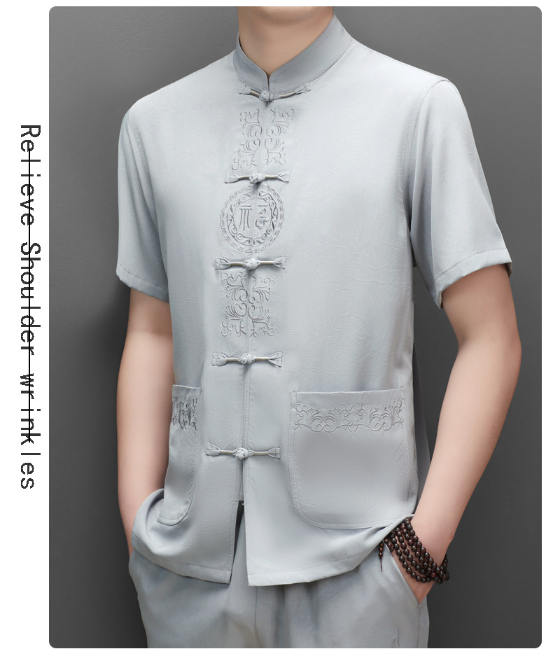 Áo ngắn tay dành cho nam, kiểu dáng cổ điển phù hợp mặc trong mùa hè. Sản phẩm có form rộng rãi thoải mái, phần cổ đứng lịch sự. Điểm nhấn đặc biệt là hàng cúc bấm tinh xảo thay thế cho cúc áo thông thường, tạo nên vẻ đẹp riêng. Chất vải mát nhẹ, dễ chịu khi mặc. Có thể kết hợp cùng quần dài hoặc quần vải để tạo phong cách nhã nhặn, thoải mái trong nhiều dịp sinh hoạt. | Tên sản phẩm: Áo Sơ Mi Nam Ngắn Tay Hàng Mùa Hè Trung Niên Phục Cổ Cổ Điển - Thời Trang Nam | Mã sản phẩm: B6305 - Giá: 780.000đ | Mã nhà sản xuất: JIDG-G02Hình ảnh sản phẩm