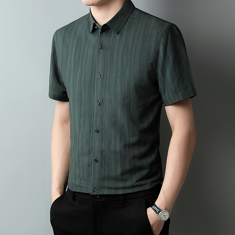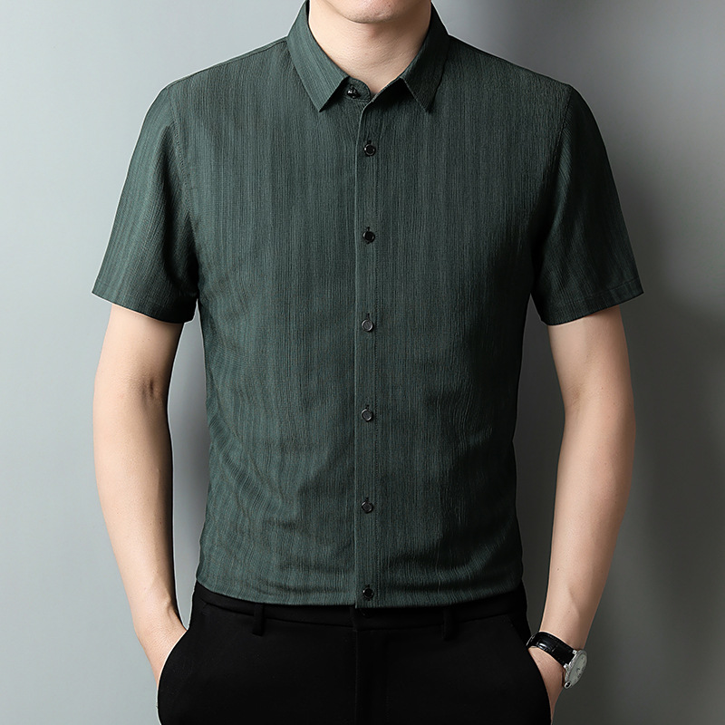 Áo sơ mi ngắn tay dành cho nam, kiểu dáng thoải mái phù hợp nhiều dịp sinh hoạt. Sản phẩm có cổ bẻ, thiết kế đơn màu dễ phối đồ. Chất vải nhẹ mát giúp mặc dễ chịu trong mùa hè. Bạn có thể mặc đi làm hoặc dùng trong các sinh hoạt thường ngày. Chỉ cần giặt như các loại áo thông thường khác là được. | Tên sản phẩm: Áo Sơ Mi Nam Ngắn Tay Kín Cổ Hàng Mùa Hè Phong Cách Trẻ Trung - Thời Trang Nam | Mã sản phẩm: B6437 - Giá: 780.000đ | Mã nhà sản xuất: JIDG-G02Hình ảnh sản phẩm