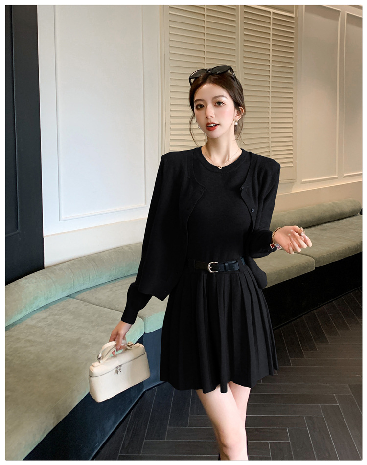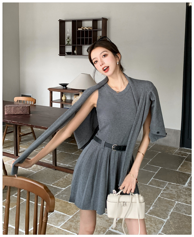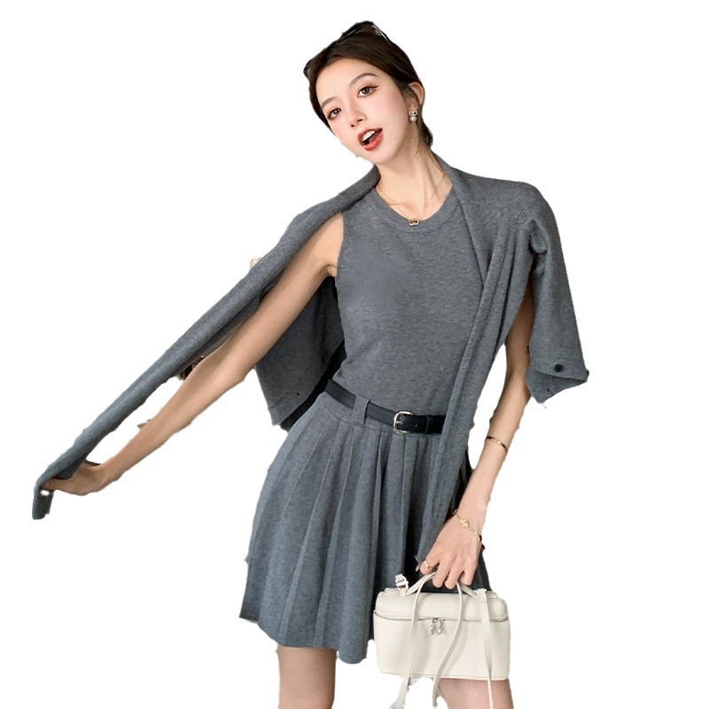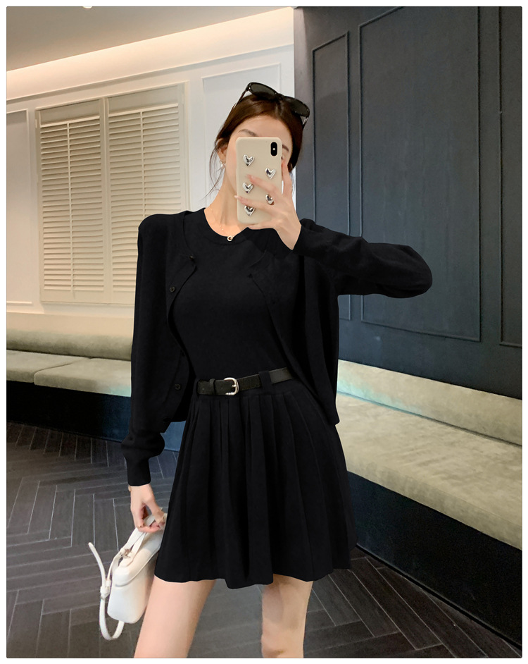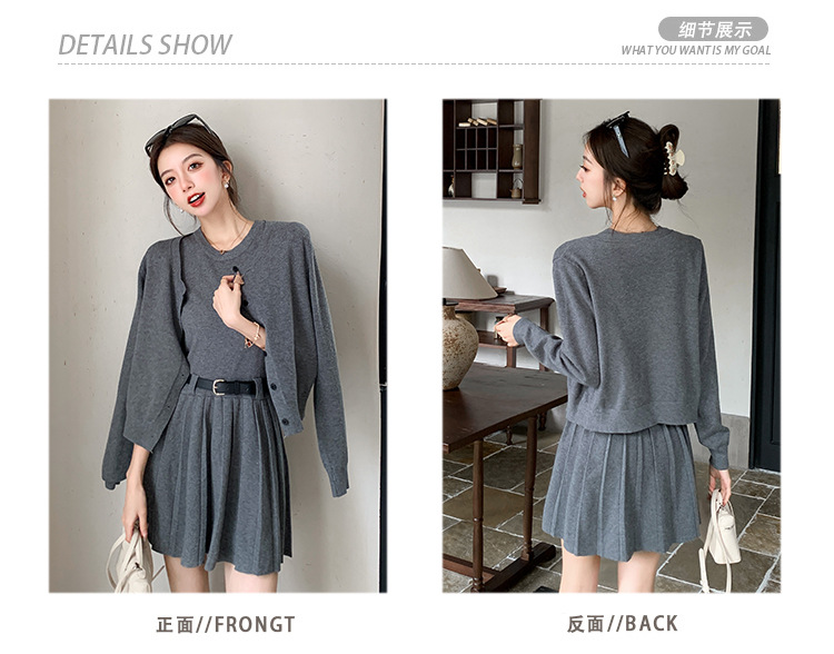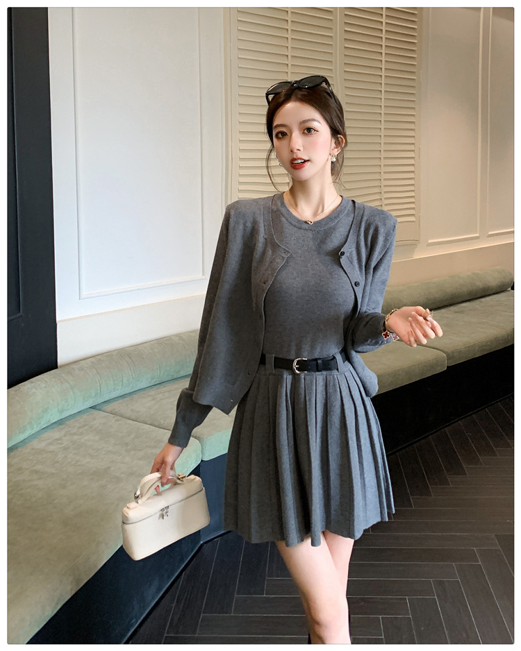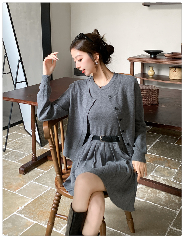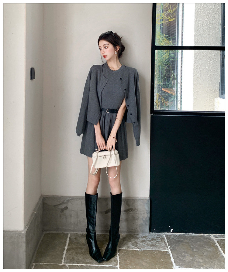 Bộ trang phục hai mảnh này gồm đầm và áo khoác mỏng. Chiếc đầm kết hợp dáng áo ba lỗ và phần chân váy xếp ly, tạo vẻ ngoại điệu đà. Áo khoác dạng cardigan đan mềm mại, dễ mặc. Bộ này thích hợp cho tiết trời mát mẻ. Bạn có thể mặc riêng chiếc đầm hoặc kết hợp cả hai mảnh để tạo nên bộ trang phục hoàn chỉnh, phù hợp cho nhiều dịp sinh hoạt thường ngày. | Tên sản phẩm: Áo Sơ Mi Nữ Áo Len Dáng Dộng Cả Bộ 2 Món Hàng Mùa Xuân Thu Đông - Thời Trang Nữ | Mã sản phẩm: B3211 - Giá: 900.000đ | Mã nhà sản xuất: ZHOUT-G03Hình ảnh sản phẩm