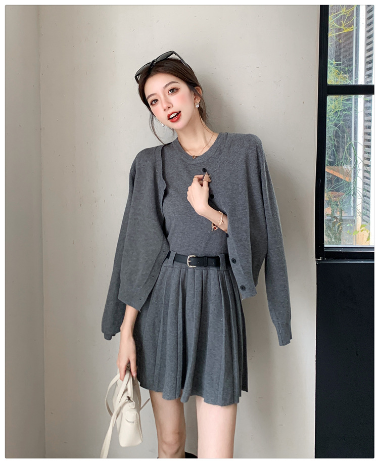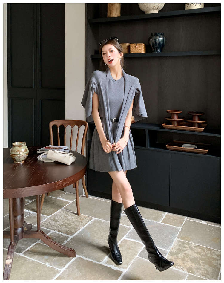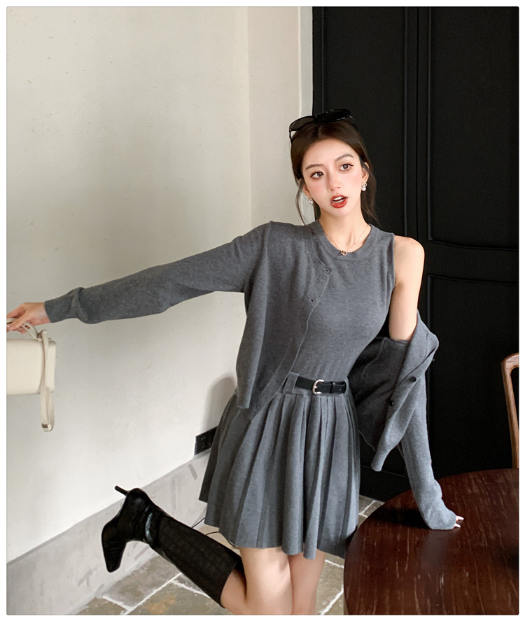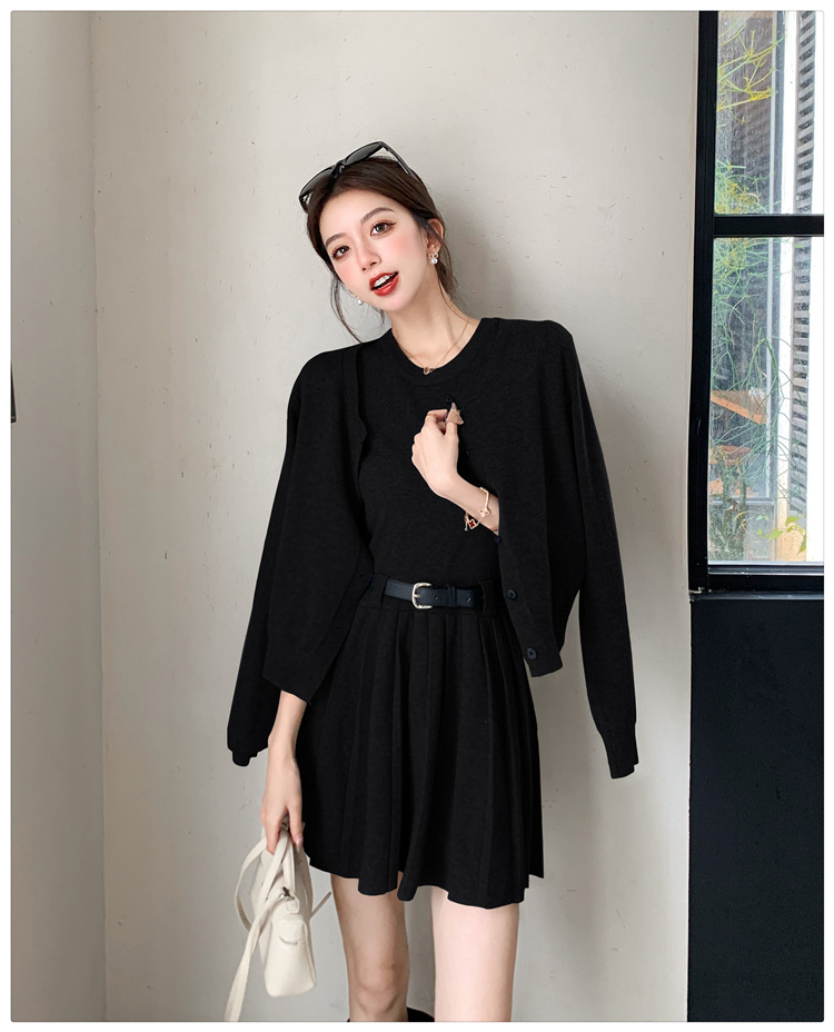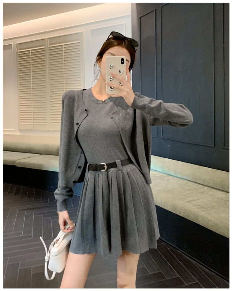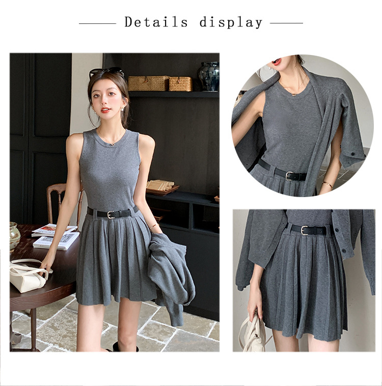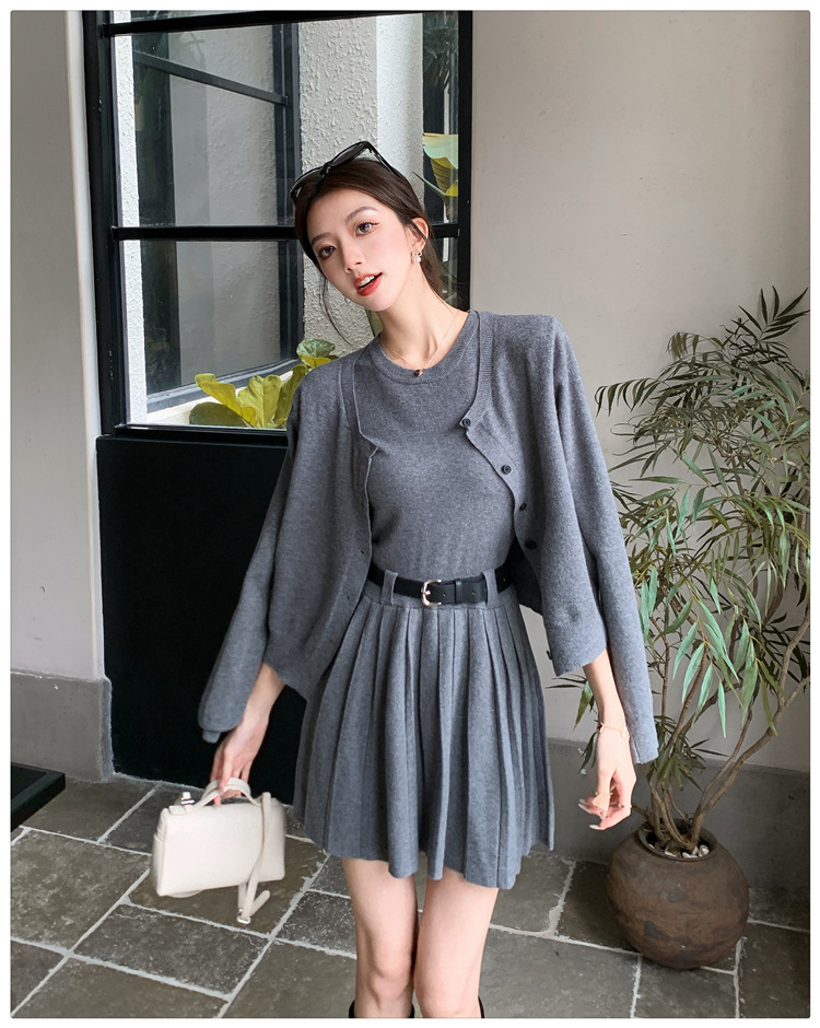 Bộ trang phục hai mảnh này gồm đầm và áo khoác mỏng. Chiếc đầm kết hợp dáng áo ba lỗ và phần chân váy xếp ly, tạo vẻ ngoại điệu đà. Áo khoác dạng cardigan đan mềm mại, dễ mặc. Bộ này thích hợp cho tiết trời mát mẻ. Bạn có thể mặc riêng chiếc đầm hoặc kết hợp cả hai mảnh để tạo nên bộ trang phục hoàn chỉnh, phù hợp cho nhiều dịp sinh hoạt thường ngày. | Tên sản phẩm: Áo Sơ Mi Nữ Áo Len Dáng Dộng Cả Bộ 2 Món Hàng Mùa Xuân Thu Đông - Thời Trang Nữ | Mã sản phẩm: B3211 - Giá: 900.000đ | Mã nhà sản xuất: ZHOUT-G03Hình ảnh sản phẩm