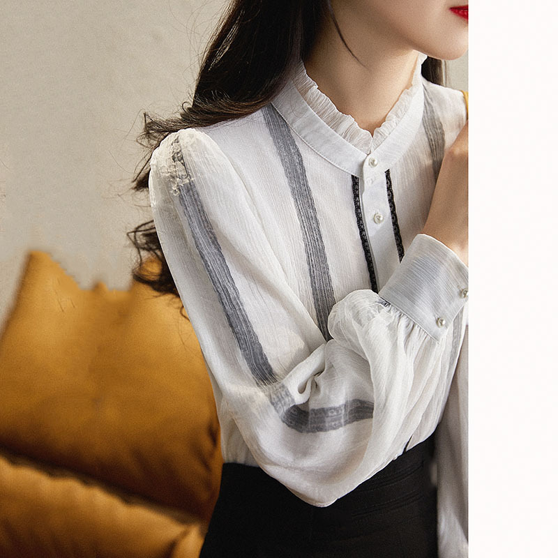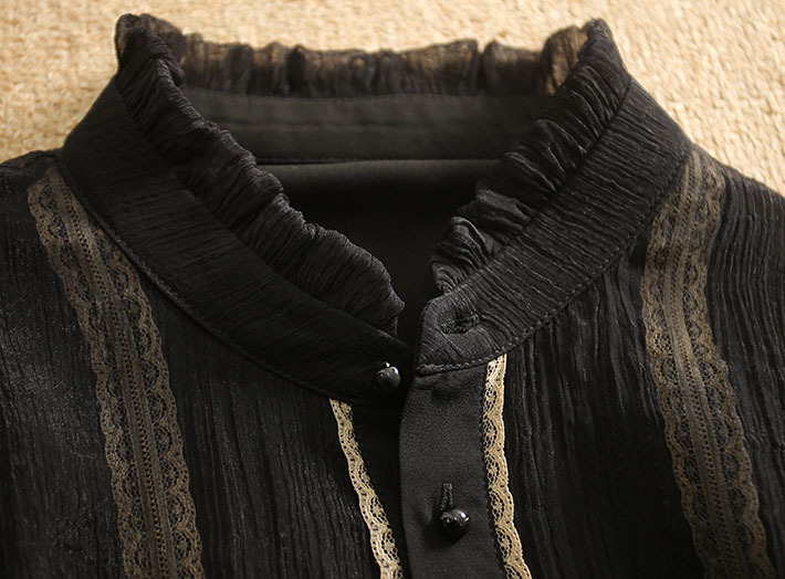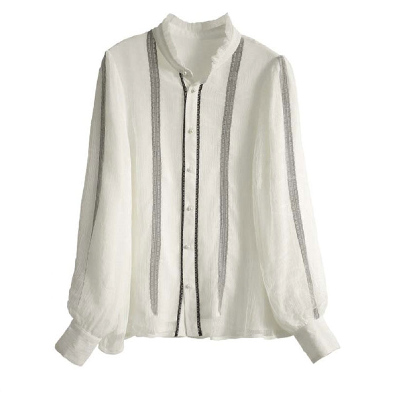 Áo sơ mi nữ dáng dài tay, kiểu dáng Pháp thanh lịch với điểm nhấn đặc biệt ở cổ. Phần cổ đứng cách điệu kết hợp viền ren tinh tế, tạo nên nét duyên dáng. Thiết kế hai lớp mỏng ở phần thân mang lại vẻ đẹp có chiều sâu. Áo cài cúc dọc thân, dễ dàng mặc và phối đồ. Sản phẩm phù hợp để mặc đi làm hoặc dạo phố trong tiết trời thu. | Tên sản phẩm: Áo Sơ Mi Nữ Chất Liệu Ren Dài Tay Hàng Mùa Xuân Thu Đông - Thời Trang Nữ | Mã sản phẩm: K2076 - Giá: 500.000đ | Mã nhà sản xuất: SHREIA-G01Hình ảnh sản phẩm