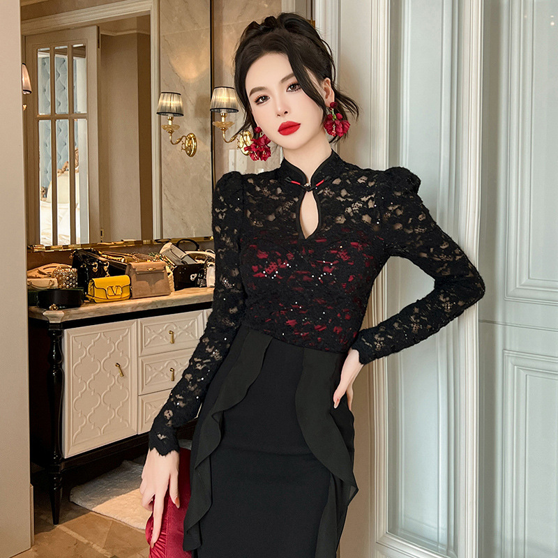 Áo kiểu dáng ôm sát cách tân, lấy cảm hứng từ nét đẹp truyền thống dành cho mùa thu. Chất vải có phần ren thoáng nhẹ tạo những họa tiết xuyên thấu tinh tế. Sản phẩm phù hợp mặc đi làm, dạo phố hay trong những dịp gặp mặt. Dễ dàng phối cùng quần tây, chân váy để có vẻ ngoài chỉn chu và nữ tính. | Tên sản phẩm: Áo Sơ Mi Nữ Chất Liệu Ren Dáng Ôm Hàng Mùa Xuân Thu Đông - Thời Trang Nữ | Mã sản phẩm: B0785 - Giá: 980.000đ | Mã nhà sản xuất: CHDG-G03Hình ảnh sản phẩm