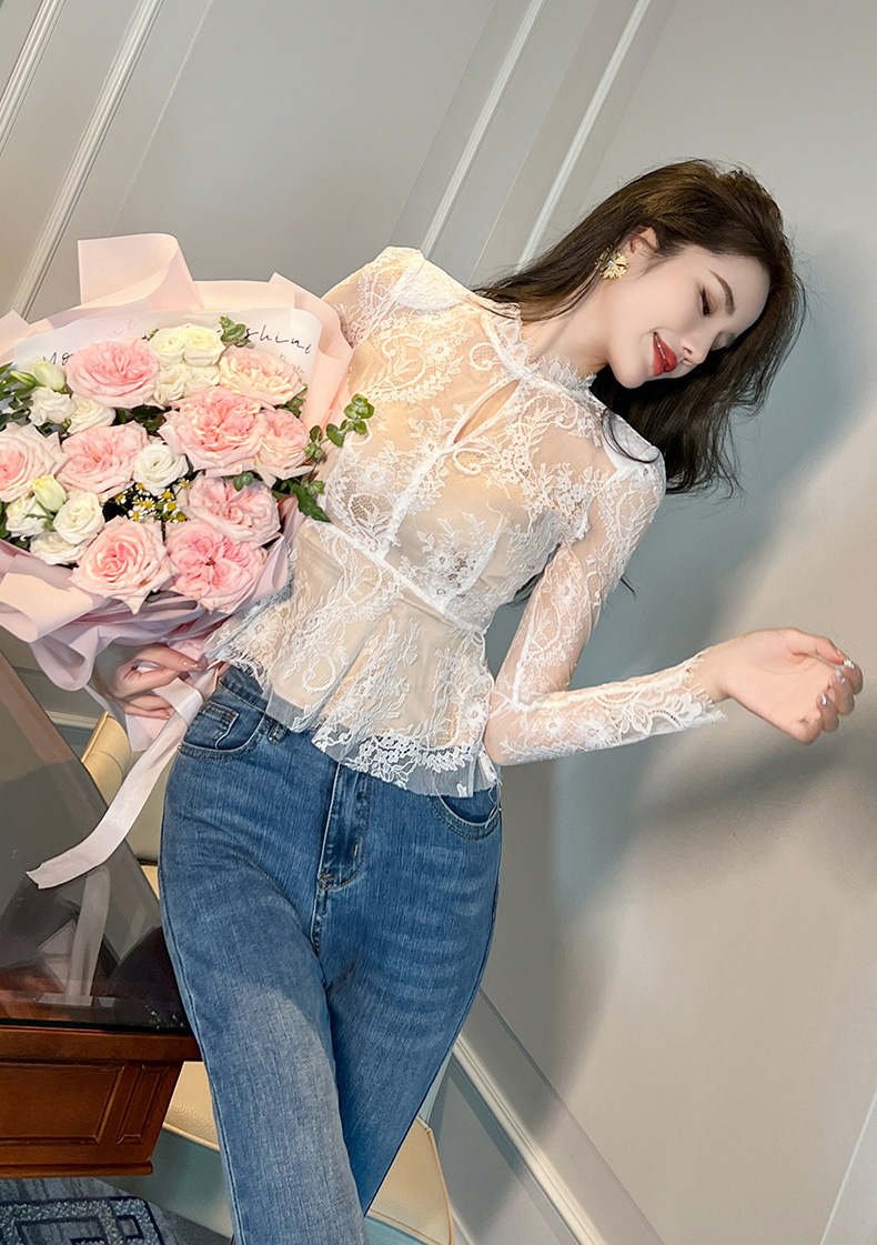 Áo kiểu mới với chất liệu ren mỏng nhẹ tạo nên vẻ đẹp quyến rũ. Thiết kế có phần cổ và tay áo được điểm xuyến bằng đường cắt tỉa tinh tế, kết hợp đường viền dập dình như lá sen uốn lượn. Điểm nhấn là eo được bo nhẹ ôn sát giúp tôn dáng người mặc. Mặc kèm với quần âu hoặc chân váy dài để tạo nên sự hài hòa. Phù hợp cho các buổi gặp mặt thân mật hay dạo phố cuối ngày. | Tên sản phẩm: Áo Sơ Mi Nữ Chất Liệu Ren Hàng Mùa Xuân Thu Đông - Thời Trang Nữ | Mã sản phẩm: B0554 - Giá: 770.000đ | Mã nhà sản xuất: CHDG-G02Hình ảnh sản phẩm