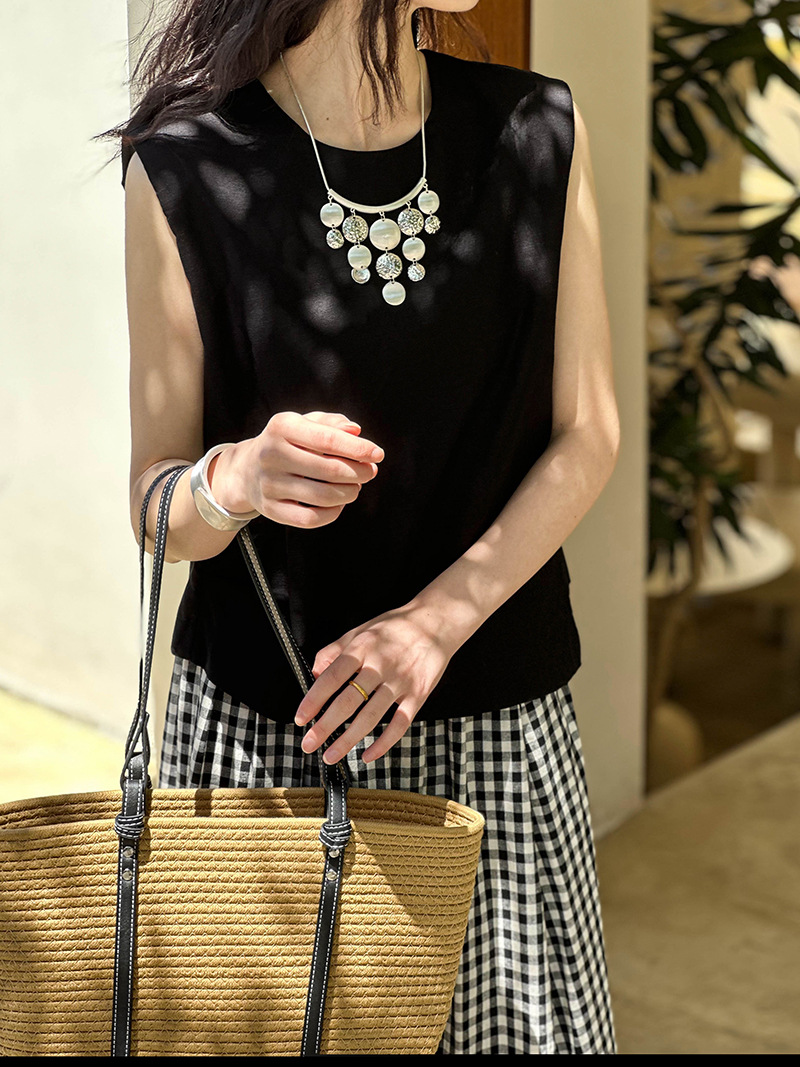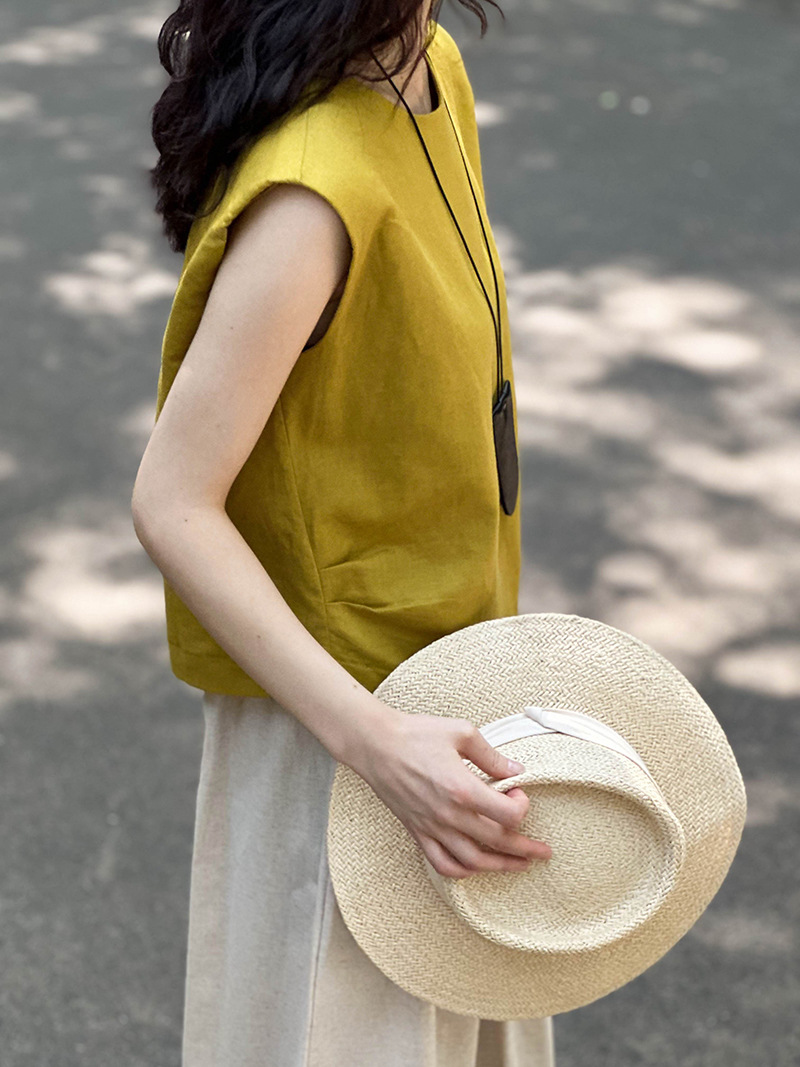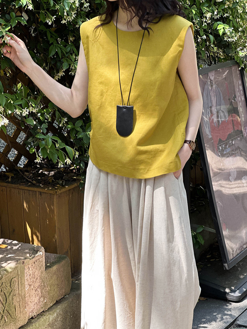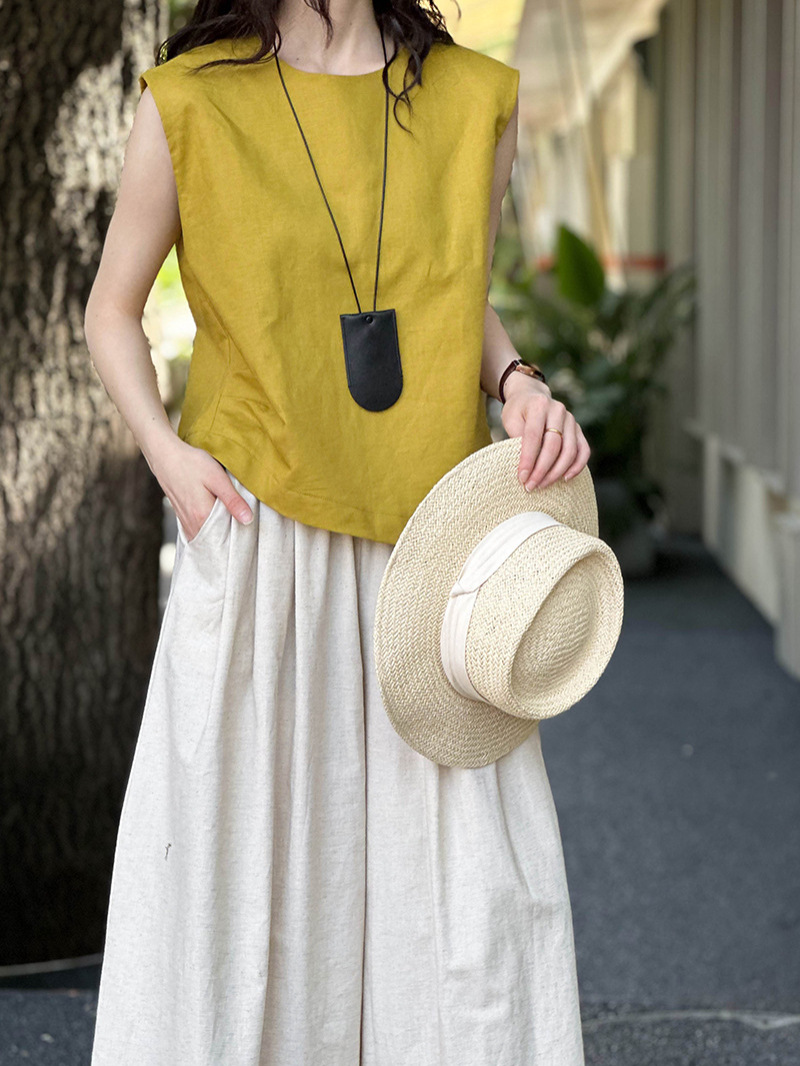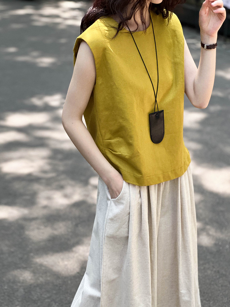 Áo khoác mùa hè với kiểu dáng cổ tròn và không tay, được làm từ chất liệu vải lanh mát mẻ. Điểm nhấn đặc biệt là đường xếp ly mềm mại hai bên hông, tạo nên vẻ đẹp giản dị nhưng tinh tế. Bạn chỉ cần mặc như những chiếc áo thông thường, phối hợp cùng quần dài hoặc chân váy đều phù hợp. Sản phẩm mang đến sự thoải mái và dễ chịu cho những ngày nắng nóng. | Tên sản phẩm: Áo Sơ Mi Nữ Hàng Mùa Hè - Thời Trang Nữ | Mã sản phẩm: L1585 - Giá: 720.000đ | Mã nhà sản xuất: HADUN-G02Hình ảnh sản phẩm