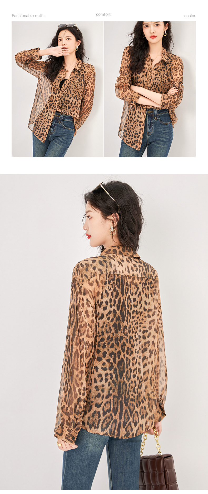 Áo kiểu nữ họa tiết da báo, mẫu mã cổ điển và thời thượng. Chất vải mềm mại, thoáng mát, tạo cảm giác dễ chịu khi mặc. Kiểu dáng ôn nhẹ giúp tôn dáng, phù hợp diện trong mùa thu đông. Bạn có thể phối cùng quần tây, chân váy để đi làm, hoặc kết hợp với quần jean cho dịp dạo phố. Dễ dàng giặt sạch và bảo quản như các loại áo thông thường. | Tên sản phẩm: Áo Sơ Mi Nữ Hàng Mùa Xuân Thu Đông - Thời Trang Nữ | Mã sản phẩm: L1615 - Giá: 1.220.000đ | Mã nhà sản xuất: SHDY-G04Hình ảnh sản phẩm