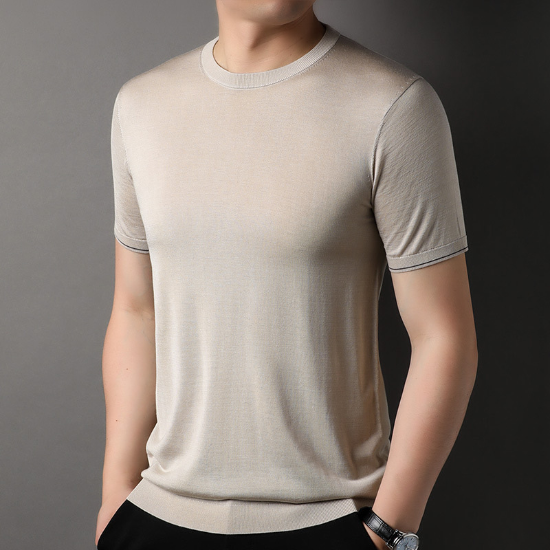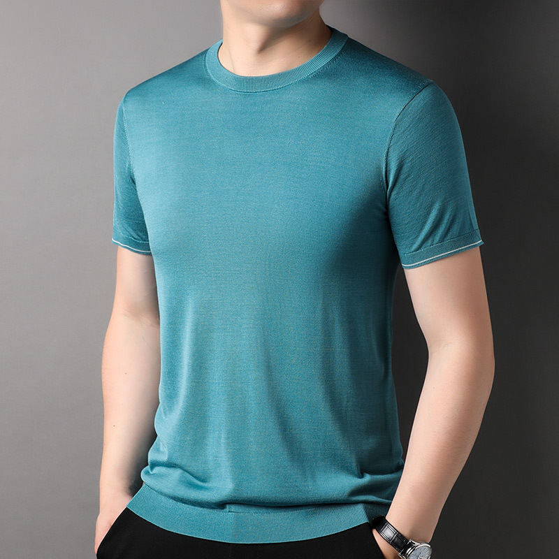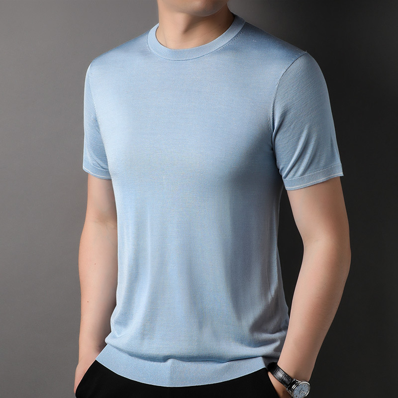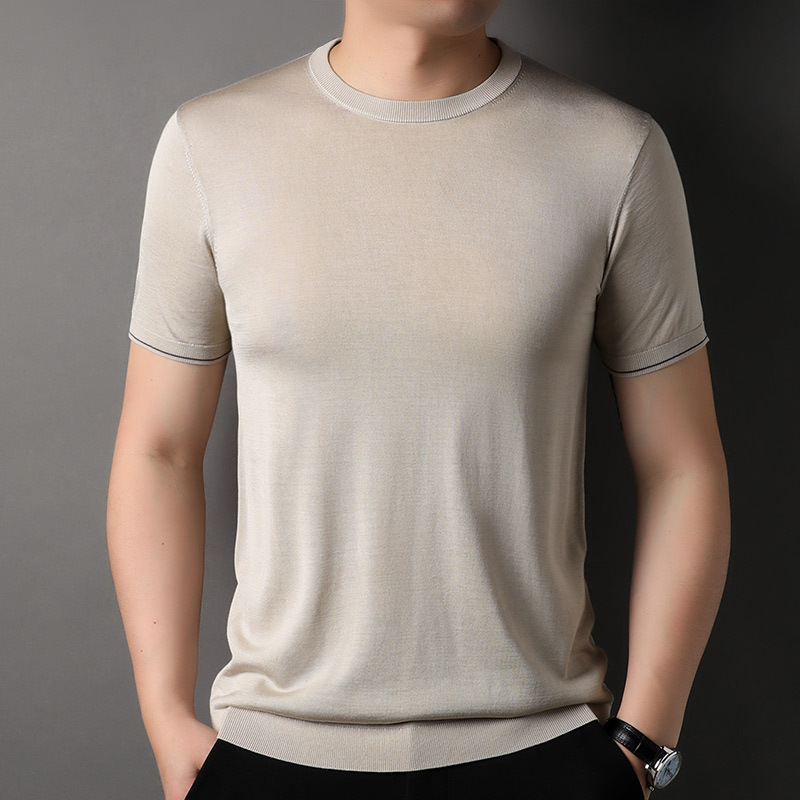 Áo thun ngắn tay dành cho nam, được dệt hoàn toàn từ tơ tằm tự nhiên, mang đến cảm giác mát mẻ và nhẹ nhàng khi mặc. Kiểu dáng đơn giản, phù hợp cho những dịp thư giãn hằng ngày. Sản phẩm có thiết kế phổ biến, dễ dàng phối hợp với nhiều loại quần khác nhau. Bạn chỉ cần giặt nhẹ bằng tay với nước thường và phơi ở nơi râm mát để giữ form áo và chất vải được bền lâu. | Tên sản phẩm: Áo Thun Nam Chất Liệu Lụa Tơ Tằm Áo Len Ngắn Tay Hàng Mùa Hè Phong Cách Trẻ Trung - Thời Trang Nam | Mã sản phẩm: B9818 - Giá: 3.100.000đ | Mã nhà sản xuất: JIDEN-G06Hình ảnh sản phẩm