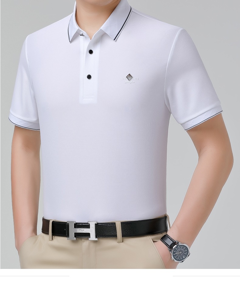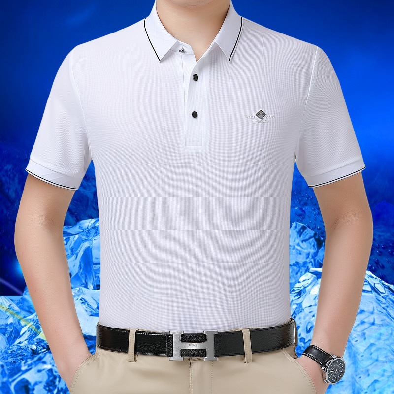 Áo thun cổ bẻ dành cho nam, kiểu dáng thời trang và lịch sự phù hợp cho các bậc cha mẹ trung niên. Sản phẩm được dệt từ sợi tơ tằm thiên nhiên, mang lại cảm giác mát mẻ, nhẹ nhàng và thoáng khí khi mặc. Đặc biệt, áo có khả năng hạn chế nhăn tốt, ít khi phải ủi và đường may tinh tế tạo vẻ ngoài gọn gàng. Dễ dàng phối hợp với nhiều loại quần khác nhau cho các dịp sinh hoạt hằng ngày. | Tên sản phẩm: Áo Thun Nam Chất Liệu Lụa Tơ Tằm Ngắn Tay Hàng Mùa Hè Trung Niên - Thời Trang Nam | Mã sản phẩm: B9523 - Giá: 1.900.000đ | Mã nhà sản xuất: SHRYCT-G05Hình ảnh sản phẩm