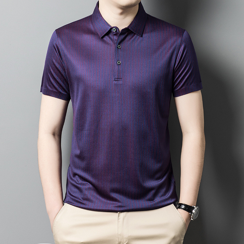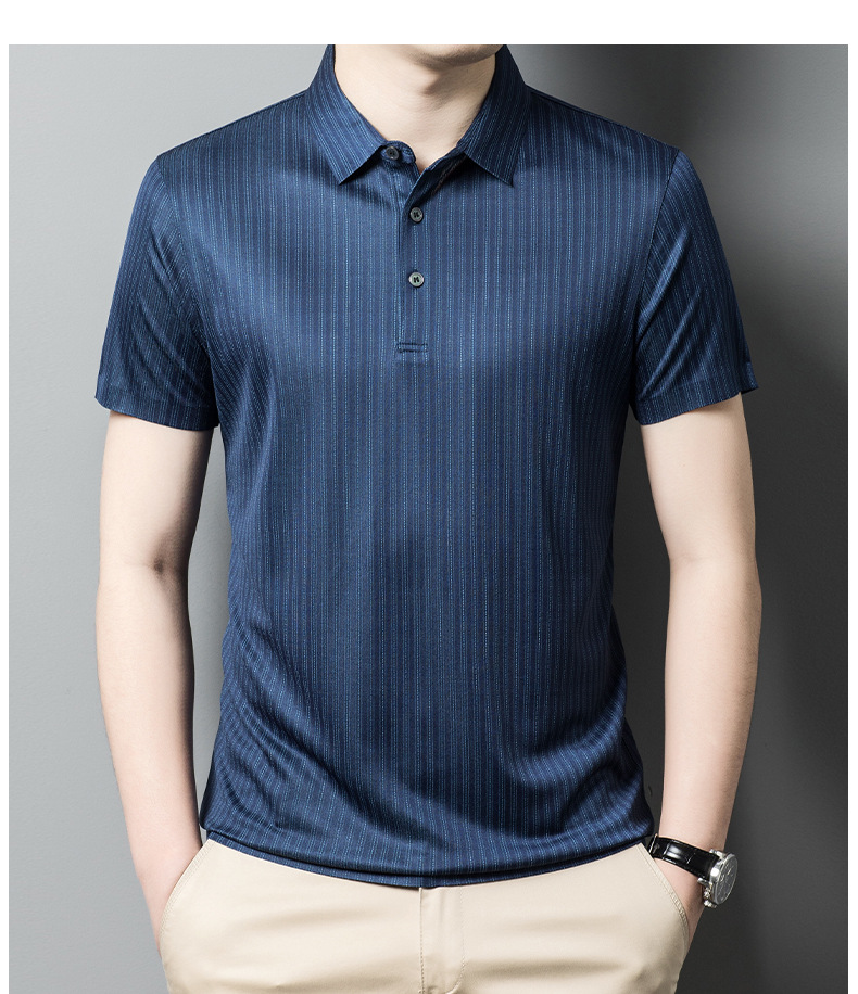 Áo thun ngắn tay dành cho nam, kiểu dáng cổ bẻ trang nhã phù hợp cho công sở. Sản phẩm được dệt từ sợi tơ tằm thiên nhiên, mang lại cảm giác mát mẻ, nhẹ nhàng và thoáng khí khi mặc, đặc biệt thích hợp dùng trong mùa hè. Chất vải mềm mại, tạo sự dễ chịu cho người mặc cả ngày dài. Có thể giặt máy và phơi khô một cách dễ dàng. | Tên sản phẩm: Áo Thun Nam Chất Liệu Lụa Tơ Tằm Ngắn Tay Kín Cổ Hàng Mùa Hè - Thời Trang Nam | Mã sản phẩm: B9788 - Giá: 1.900.000đ | Mã nhà sản xuất: JIDEN-G05Hình ảnh sản phẩm