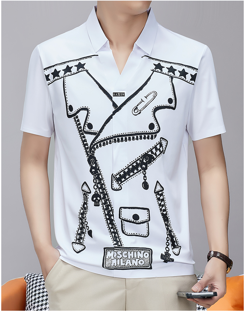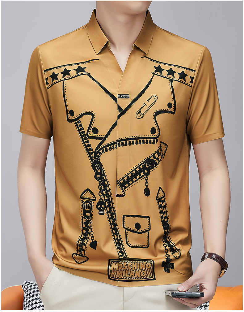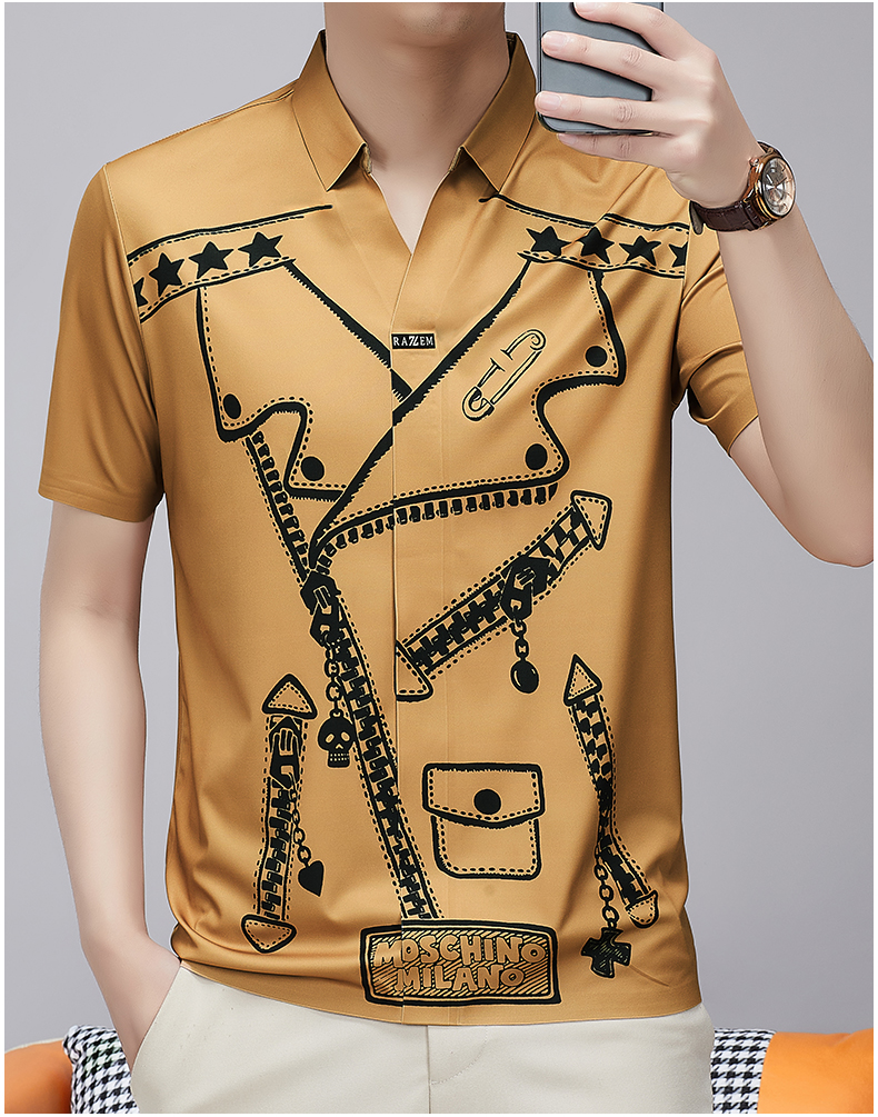 Áo thun cổ bẻ tay ngắn dành cho nam, kiểu dáng thời trang với phom dáng châu Âu. Chất vải mát lạnh, co giãn nhẹ tạo cảm giác dễ chịu khi mặc. Trên áo có các hình in liền mạch, không đường may thô, giúp bề mặt áo mượt mà. Sản phẩm phù hợp cho những ngày hè oi bức, có thể kết hợp cùng quần shorts hoặc quần jeans để tạo vẻ ngoài năng động. | Tên sản phẩm: Áo Thun Nam Ngắn Tay Họa Tiết Hoa Hàng Mùa Hè - Thời Trang Nam | Mã sản phẩm: C0746 - Giá: 1.060.000đ | Mã nhà sản xuất: MERELA-G03Hình ảnh sản phẩm