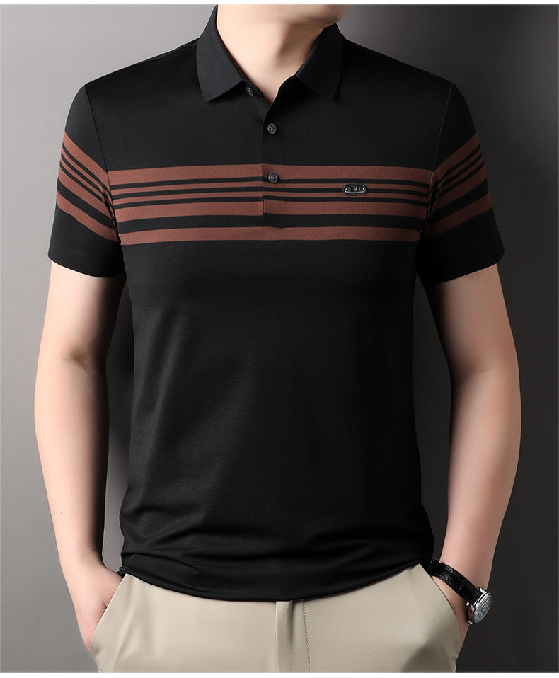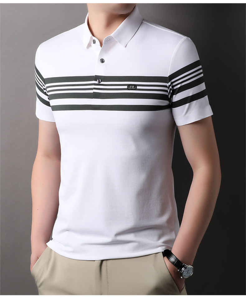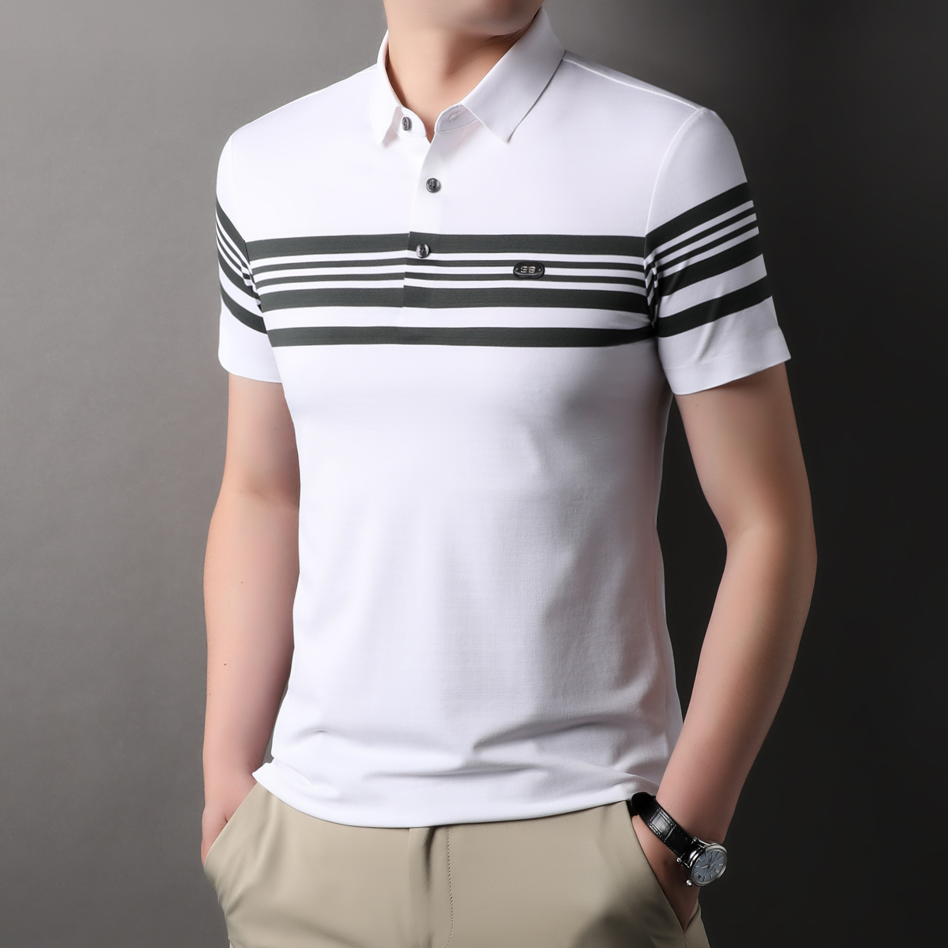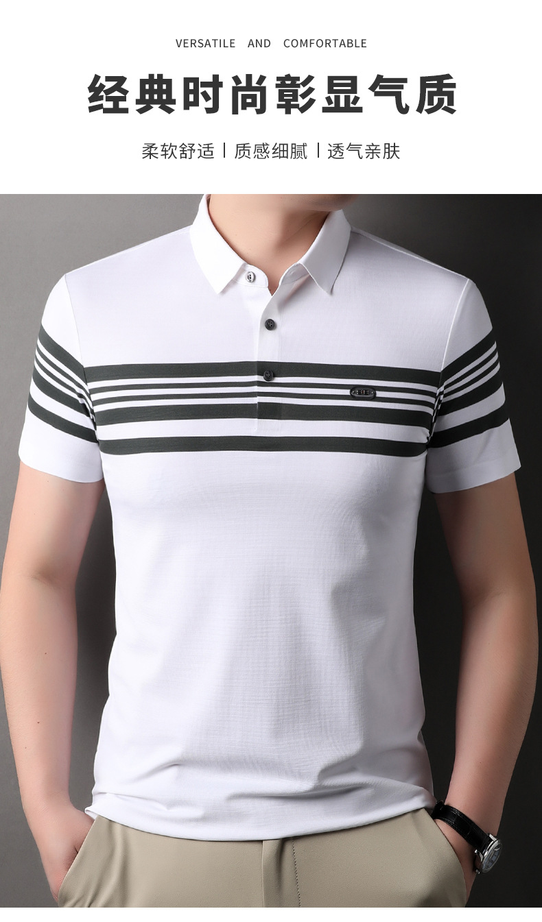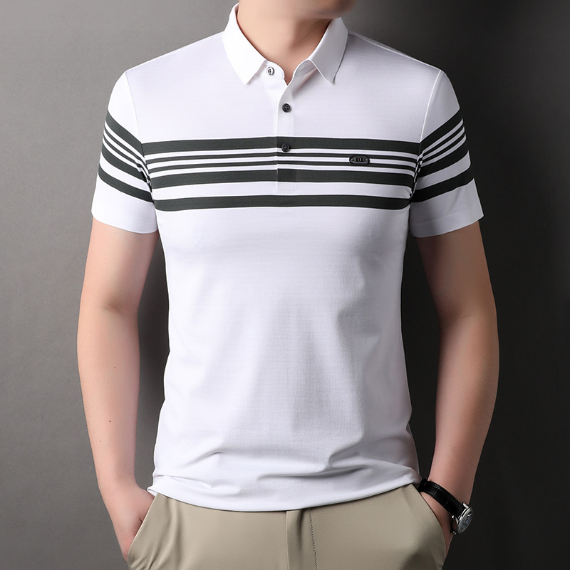 Áo thun cổ bẻ tay ngắn dành cho nam, kiểu dáng năng động với các đường sọc trang nhã. Chất vải mềm mại, thoáng mát, mang lại cảm giác dễ chịu khi mặc vào mùa hè. Sản phẩm phù hợp cho nhiều dịp sinh hoạt thường ngày, từ đi làm nhẹ nhàng đến gặp gỡ bạn bè. Phối hợp dễ dàng với quần shorts hoặc quần dài. Giặt máy nhẹ nhàng và phơi ở nơi râm mát để giữ form áo lâu bền. | Tên sản phẩm: Áo Thun Nam Ngắn Tay Kín Cổ Hàng Mùa Hè Phong Cách Trẻ Trung - Thời Trang Nam | Mã sản phẩm: B6257 - Giá: 890.000đ | Mã nhà sản xuất: JIDG-G03Hình ảnh sản phẩm