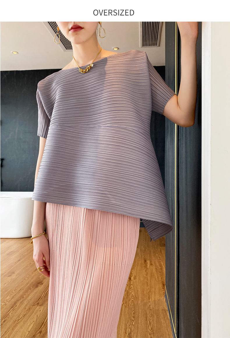 Áo thun ngắn tay kiểu dáng rộng rãi, phù hợp cho nhiều dáng người. Thiết kế cổ xéo và đường cắt không đều tạo nên điểm nhấn riêng biệt. Chất vải được tạo nếp xếp tự nhiên, giúp áo có độ phồng nhẹ và dễ dàng phối đồ. Sản phẩm mang phong cách thanh lịch, nhẹ nhàng. Bạn có thể mặc đi làm, đi chơi hoặc dự các buổi gặp mặt thông thường. Giặt nhẹ nhàng để giữ form vải và các nếp gấp được bền đẹp. | Tên sản phẩm: Áo Thun Nữ Big Size Ngoại Cỡ Ngắn Tay Hàng Mùa Hè - Thời Trang Nữ | Mã sản phẩm: G3429 - Giá: 1.000.000đ | Mã nhà sản xuất: DODLE-G03Hình ảnh sản phẩm