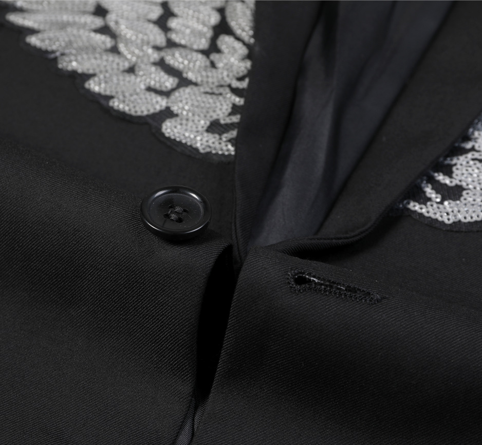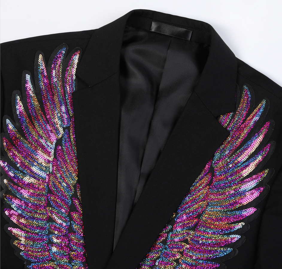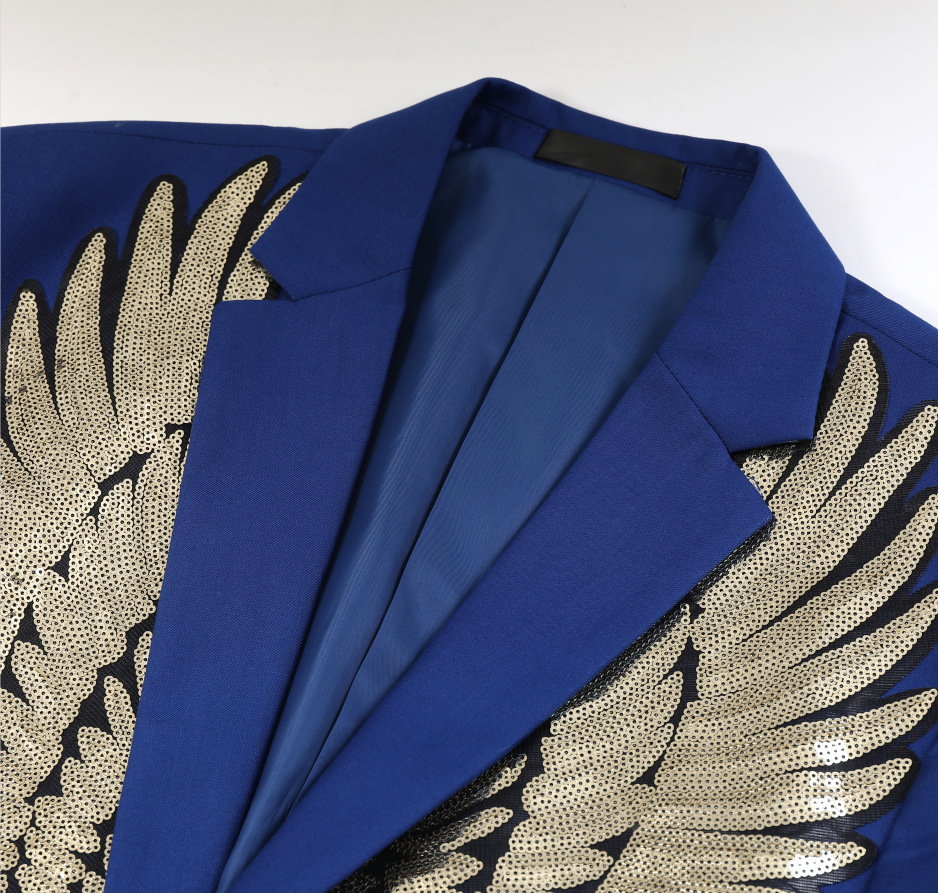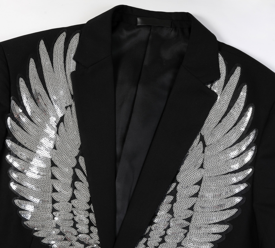 Bộ trang phục biểu diễn này mang đến vẻ nổi bật cho các tiết mục trên sân khấu. Áo khoác thiết kế dáng vét với đôi cánh lấp lánh gắn liền, được điểm xuyết bởi vô số hạt kim tuyến đầy màu sắc. Chất liệu vải có độ bóng nhẹ, tôn lên thần thái của người mặc. Sản phẩm phù hợp cho các buổi biểu diễn ca nhạc, tiệc hóa trang hoặc sự kiện cần đến phong cách sáng tạo. Khi sử dụng, chỉ cần mặc như áo khoác thông thường và điều chỉnh dây đeo cánh cho vừa vặn. | Tên sản phẩm: Áo Vest Nam Vest - Thời Trang Nam | Mã sản phẩm: D7389 - Giá: 1.240.000đ | Mã nhà sản xuất: YIDAD-G04Hình ảnh sản phẩm