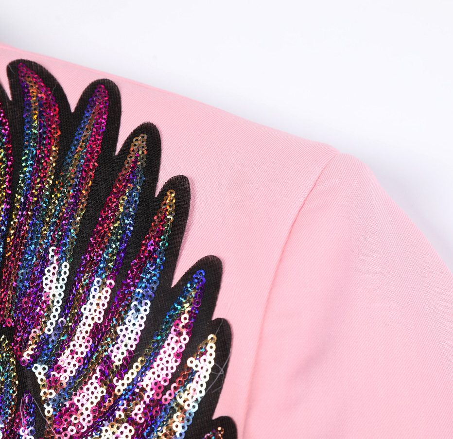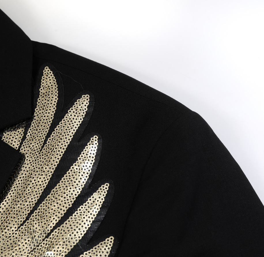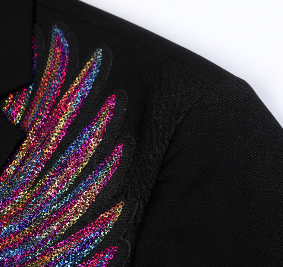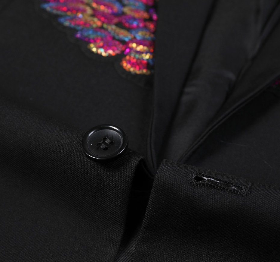 Bộ trang phục biểu diễn này mang đến vẻ nổi bật cho các tiết mục trên sân khấu. Áo khoác thiết kế dáng vét với đôi cánh lấp lánh gắn liền, được điểm xuyết bởi vô số hạt kim tuyến đầy màu sắc. Chất liệu vải có độ bóng nhẹ, tôn lên thần thái của người mặc. Sản phẩm phù hợp cho các buổi biểu diễn ca nhạc, tiệc hóa trang hoặc sự kiện cần đến phong cách sáng tạo. Khi sử dụng, chỉ cần mặc như áo khoác thông thường và điều chỉnh dây đeo cánh cho vừa vặn. | Tên sản phẩm: Áo Vest Nam Vest - Thời Trang Nam | Mã sản phẩm: D7389 - Giá: 1.240.000đ | Mã nhà sản xuất: YIDAD-G04Hình ảnh sản phẩm