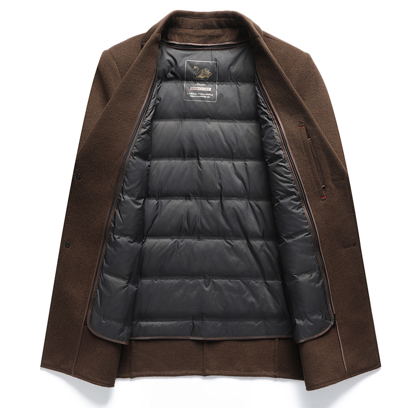 Áo khoác nam thiết kế cổ vest, dạng hai mặt vải dệt chéo ấm áp, phù hợp tiết trời thu đông. Điểm nổi bật là lớp lót bên trong có thể tháo rời, được lấp đầy bởi 90% lông vịt trắng mềm mại, giữ nhiệt tốt. Kiểu dáng lịch sự, dễ phối cùng nhiều trang phục. Khi dùng, chỉ cần mặc trực tiếp hoặc tháo lớp lót trong để phù hợp với thời tiết khác nhau. | Tên sản phẩm: Áo Vest Nam Vest Hàng Mùa Xuân Thu Đông - Thời Trang Nam | Mã sản phẩm: A8304 - Giá: 2.780.000đ | Mã nhà sản xuất: SUDIN-G06Hình ảnh sản phẩm