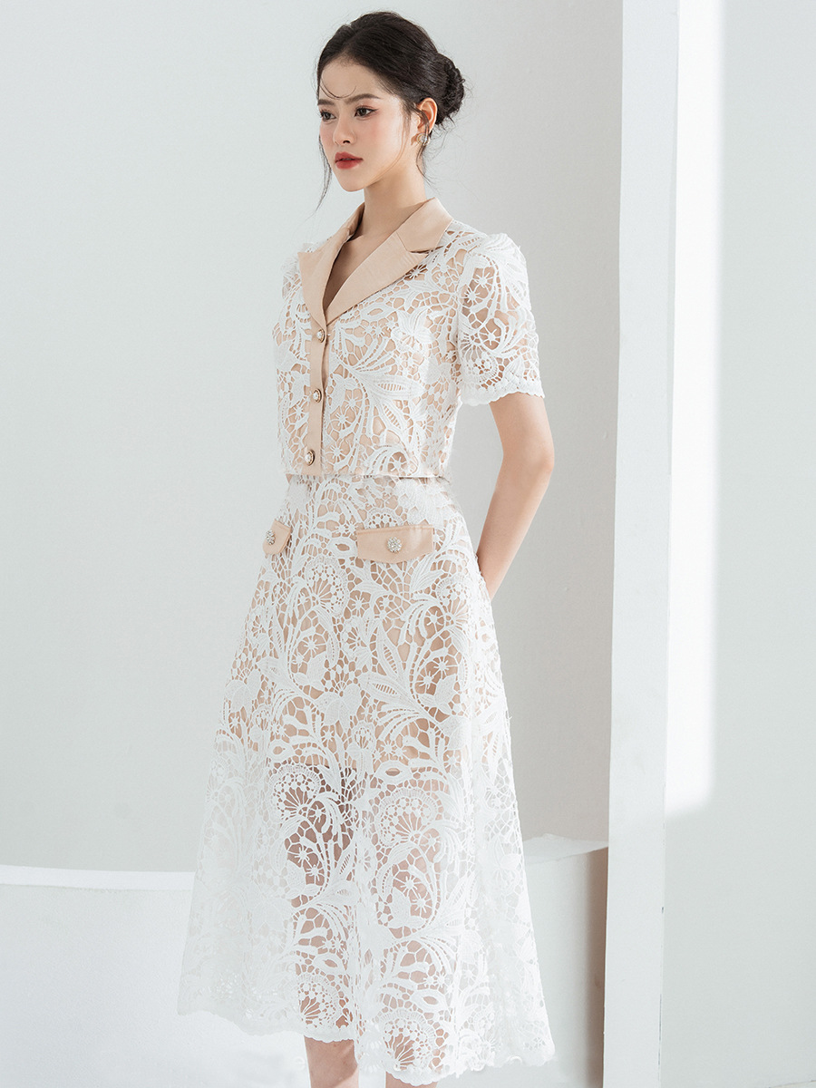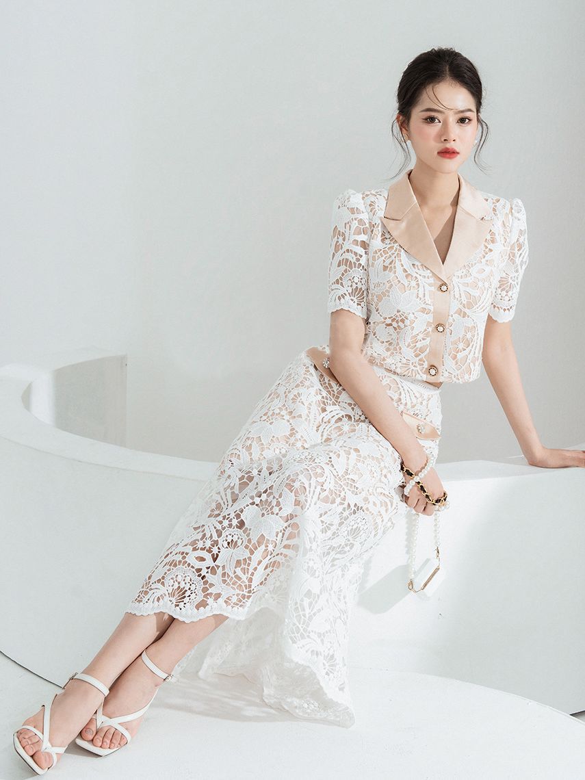 Bộ trang phục mới cho mùa thu, gồm áo kiểu cổ vest và chân váy. Áo có phần cổ thiết kế tinh tế, kết hợp cùng chân váy điểm xuyến họa tiết ren thủ công tinh xảo. Chất liệu mềm mại, thoáng mát mang đến sự dễ chịu khi mặc. Kiểu dáng thanh lịch, phù hợp cho nhiều dịp khác nhau. Có thể mặc nguyên bộ hoặc phối cùng các món đồ khác để tạo nên những vẻ ngoài ấn tượng. | Tên sản phẩm: Áo Vest Nữ Chất Liệu Ren Vest Họa Tiết Hoa Hàng Mùa Xuân Thu Đông - Thời Trang Nữ | Mã sản phẩm: T4493 - Giá: 1.280.000đ | Mã nhà sản xuất: GUDG-G04Hình ảnh sản phẩm