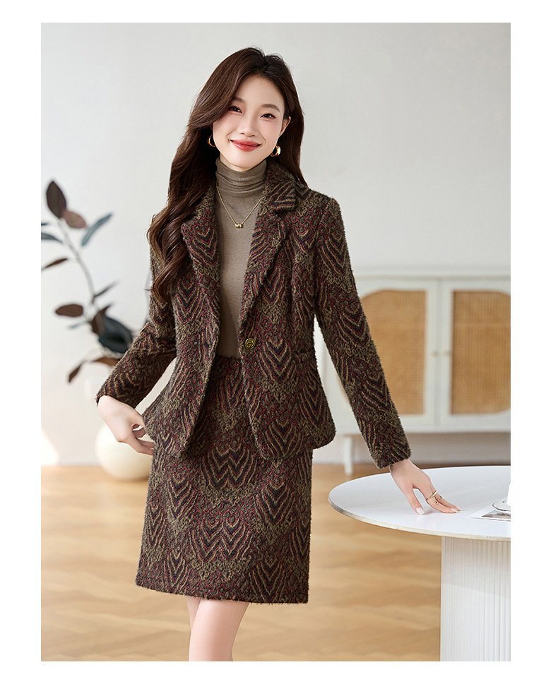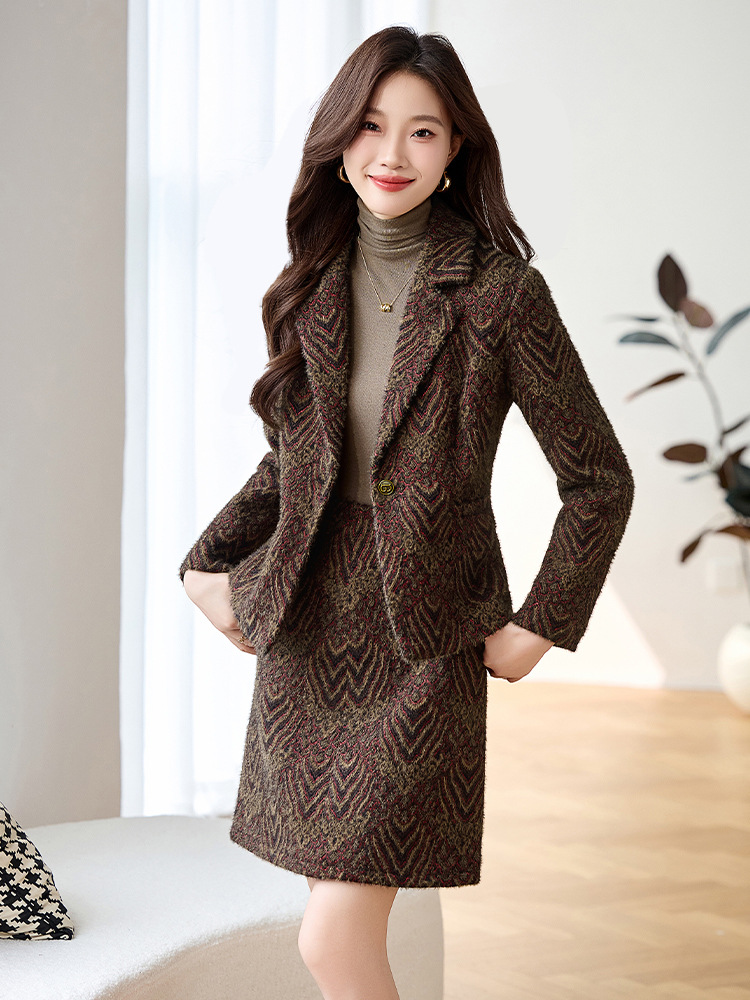 Bộ trang phục mùa thu đông này gồm áo khoác và chân váy, tạo vẻ ngoài chỉn chu, lịch sự. Áo được may với cổ ve áo, điểm nhấn là một khuy cài duy nhất, bên trong có lớp lót mềm giữ ấm tốt. Chân váy xòe nhẹ nhàng, dễ dàng phối cùng nhiều kiểu áo khác nhau. Bạn có thể mặc nguyên bộ để đi làm, đi học hoặc tách riêng từng món để kết hợp đa dạng hơn. Chất vải dày dặn, phù hợp mang khi tiết trời chuyển lạnh. | Tên sản phẩm: Áo Vest Nữ Chất Liệu Vải Bông Vest Cả Bộ 2 Món Dày Ấm Hàng Mùa Xuân Thu Đông - Thời Trang Nữ | Mã sản phẩm: B7172 - Giá: 2.130.000đ | Mã nhà sản xuất: HADG-G05Hình ảnh sản phẩm